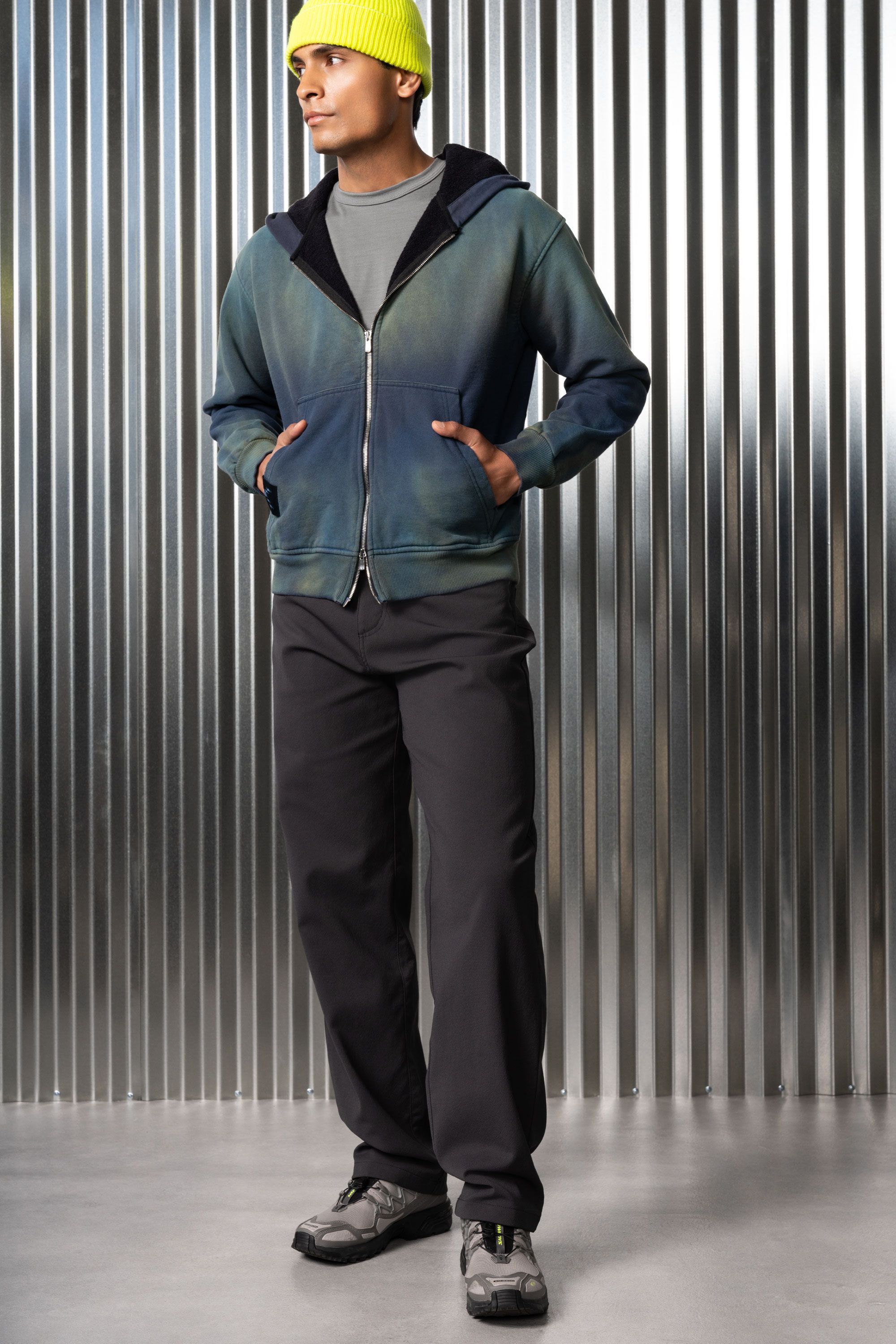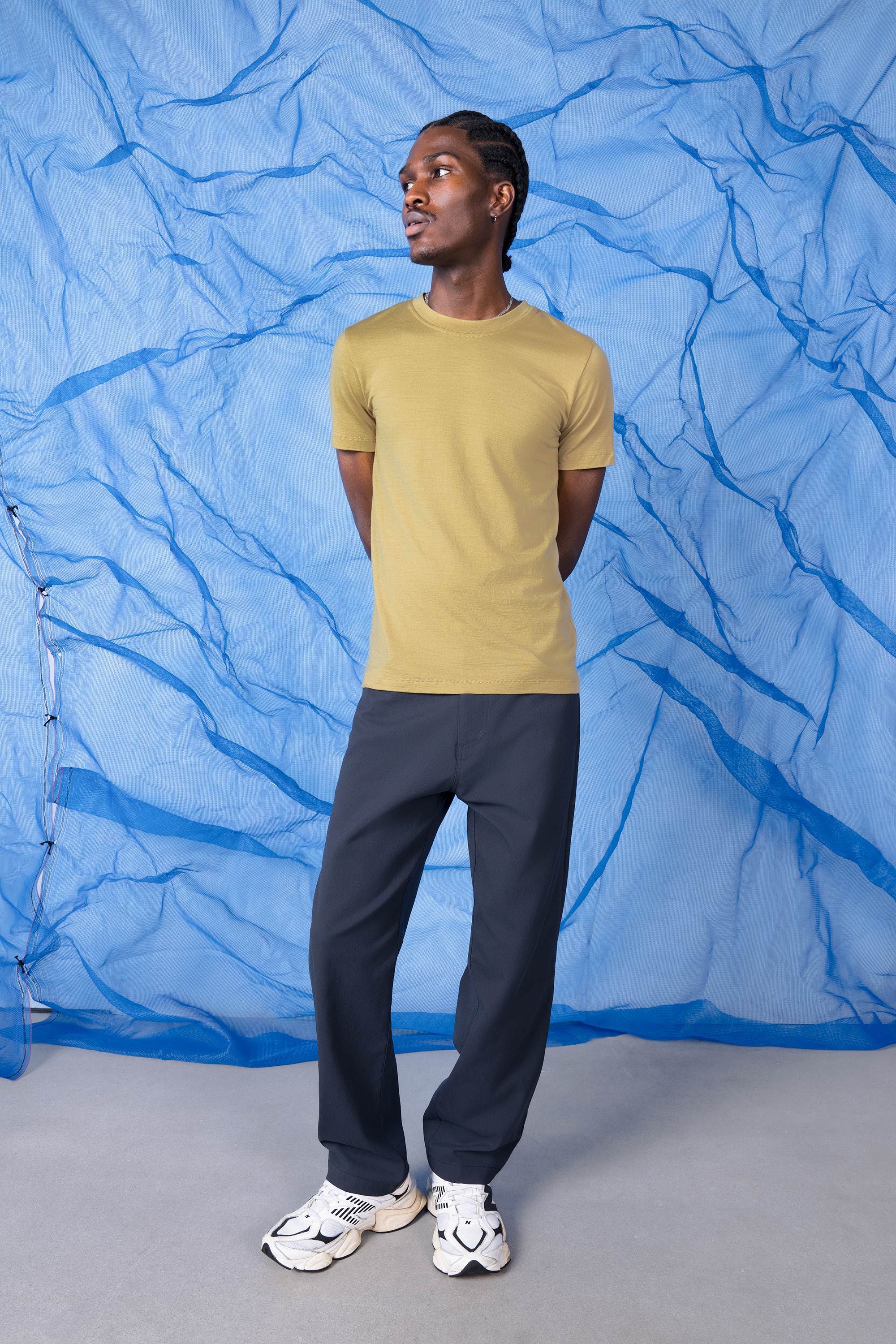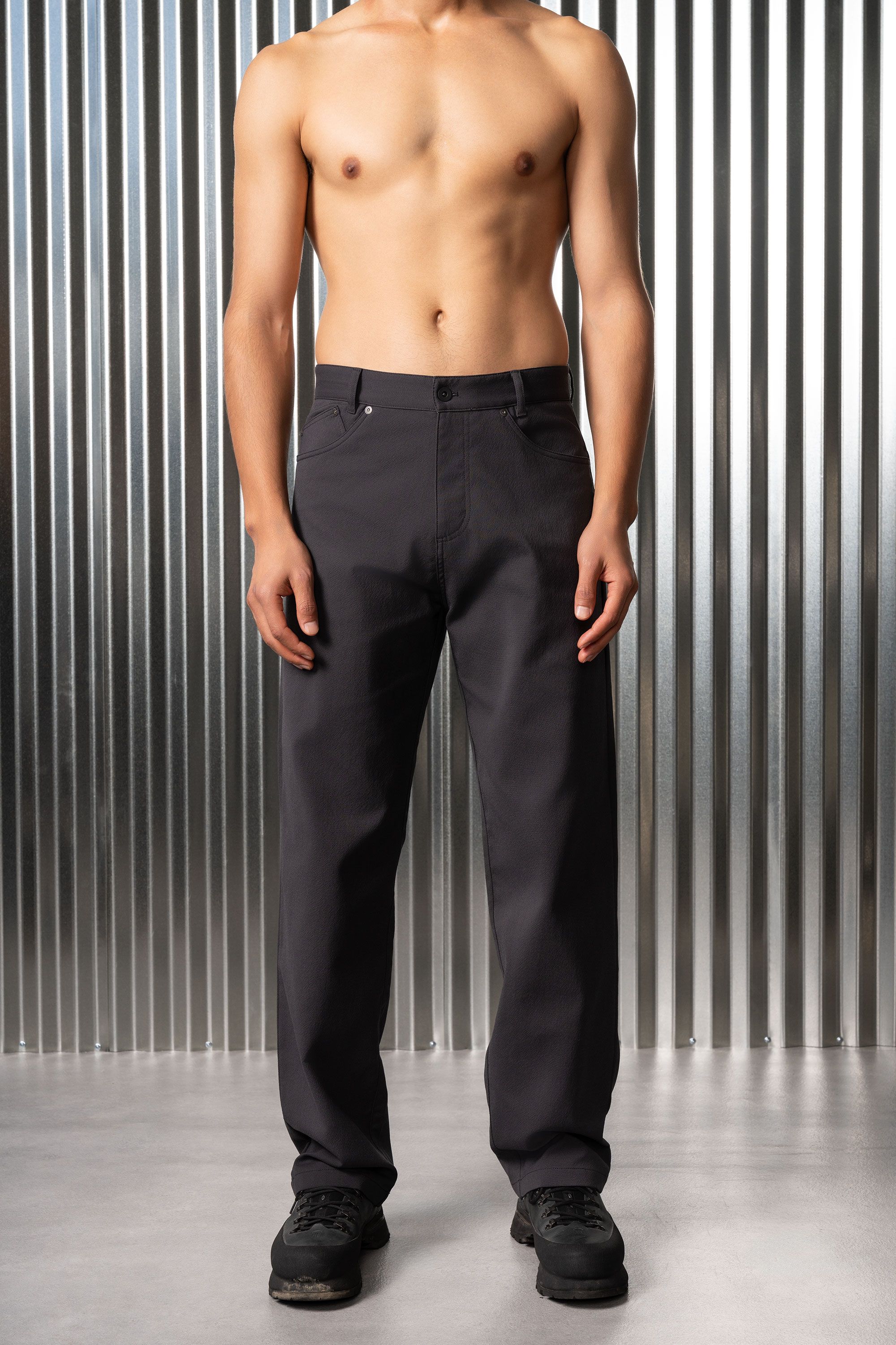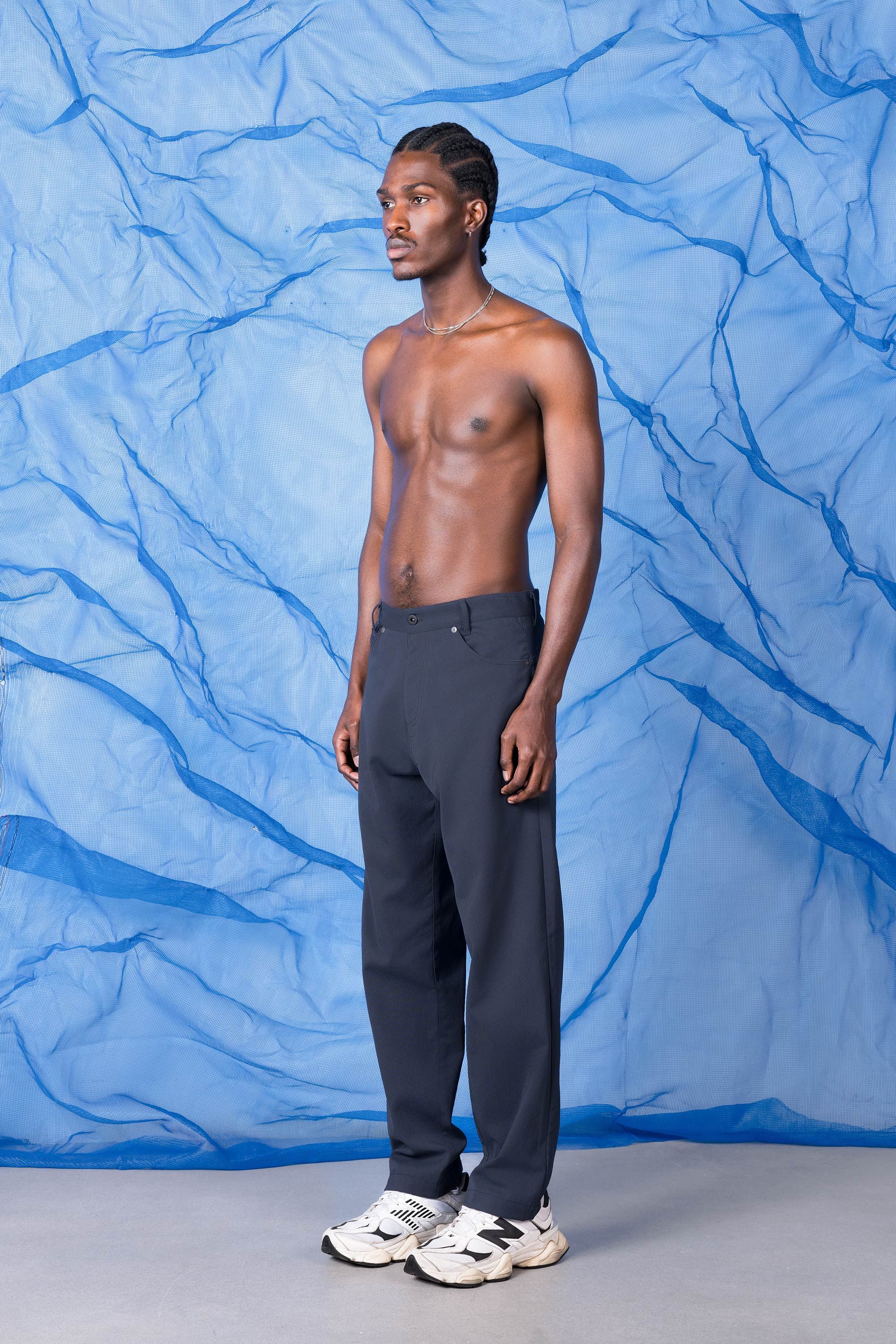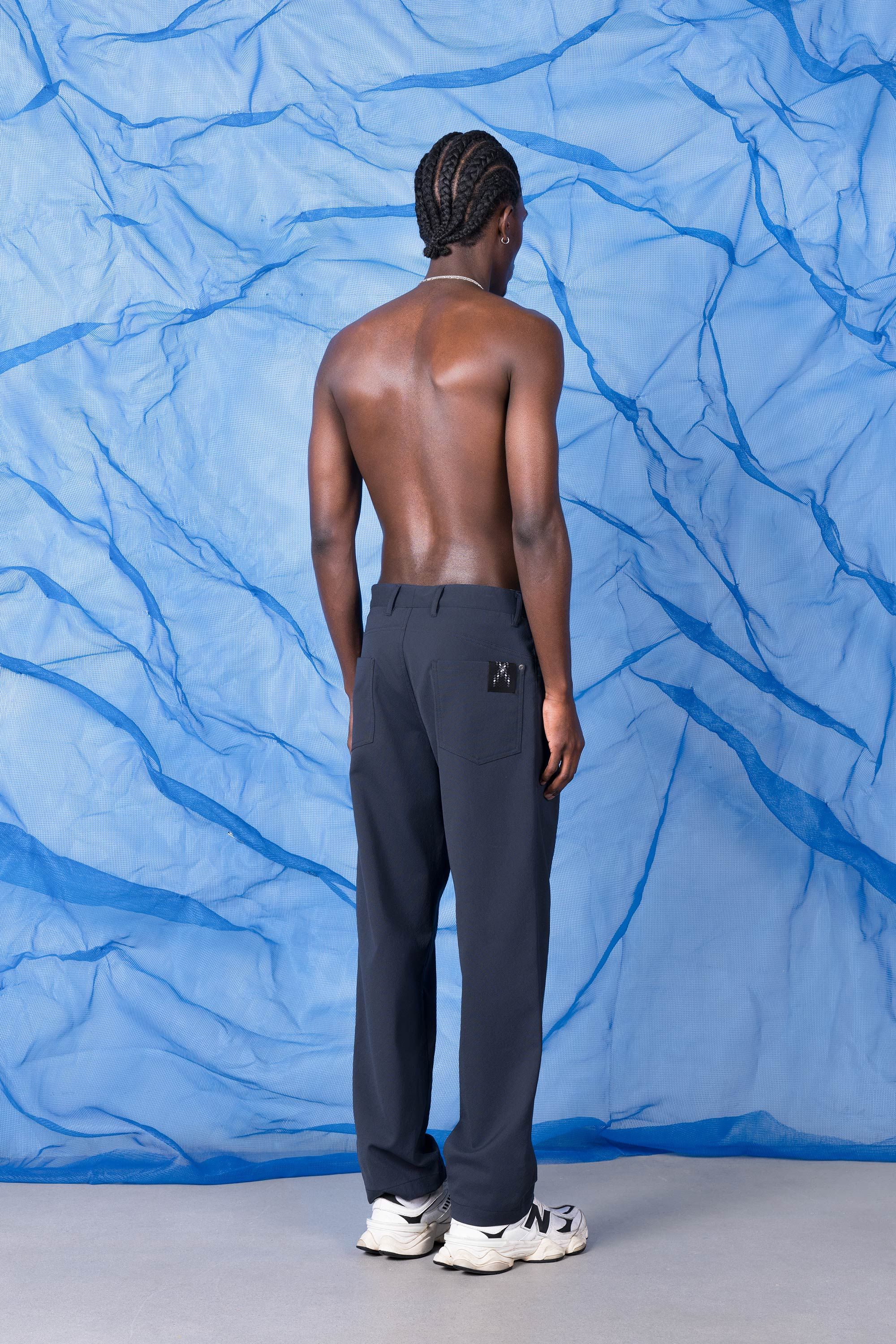 A not-so-slim dungaree, loose in the thighs and legs with an easy taper at the bottom. A technically superior five-pocket pant, made from an exclusive f…