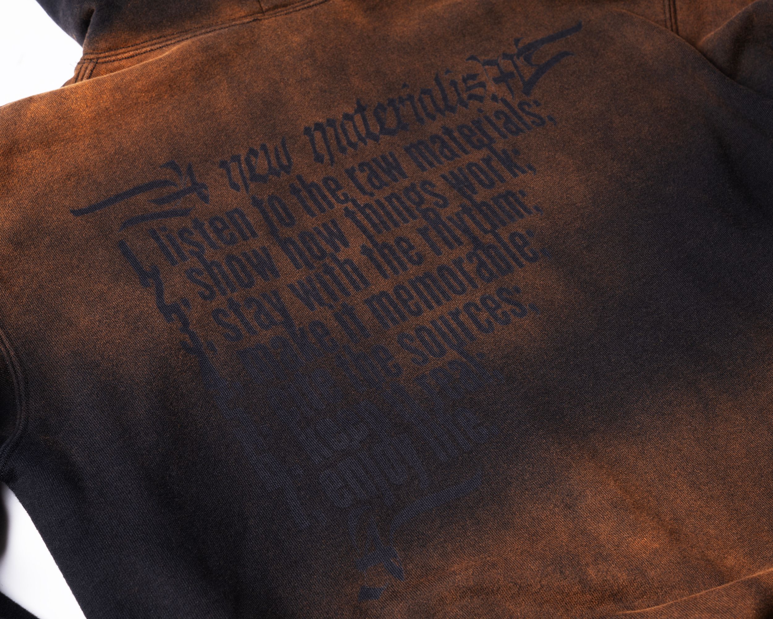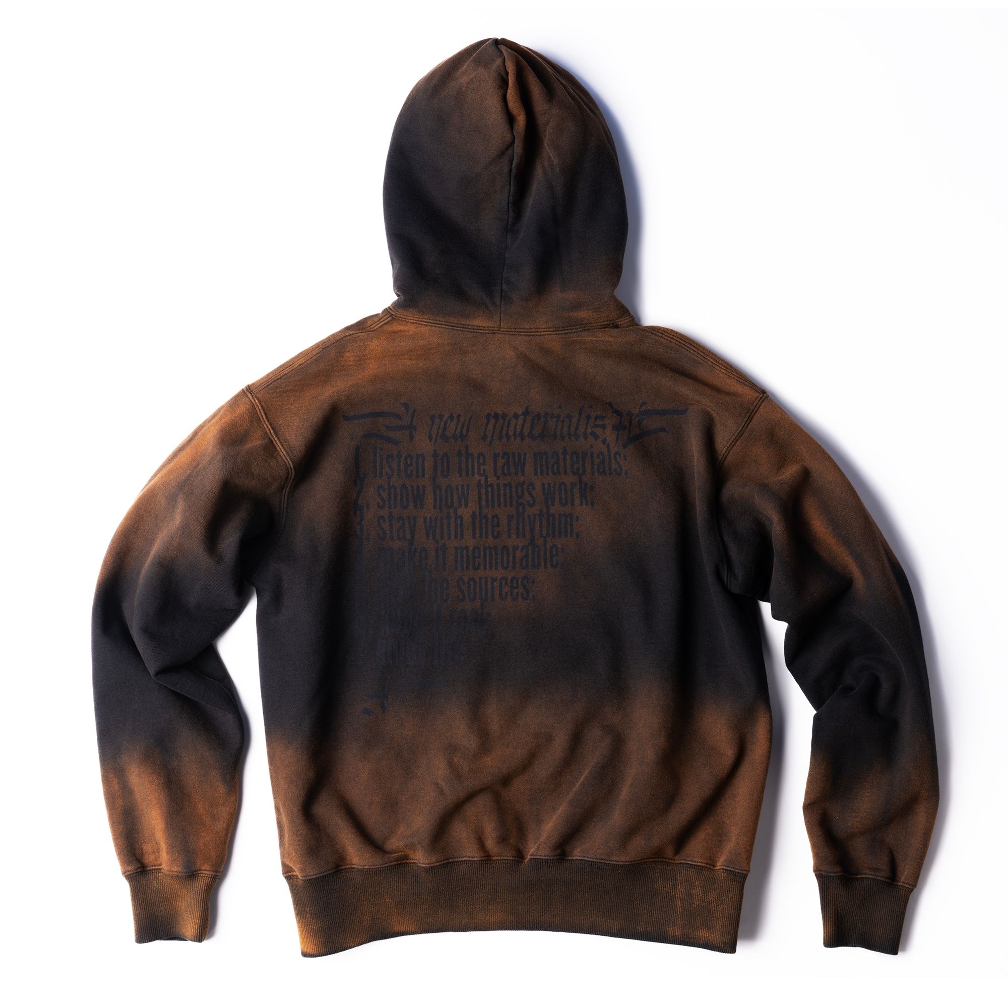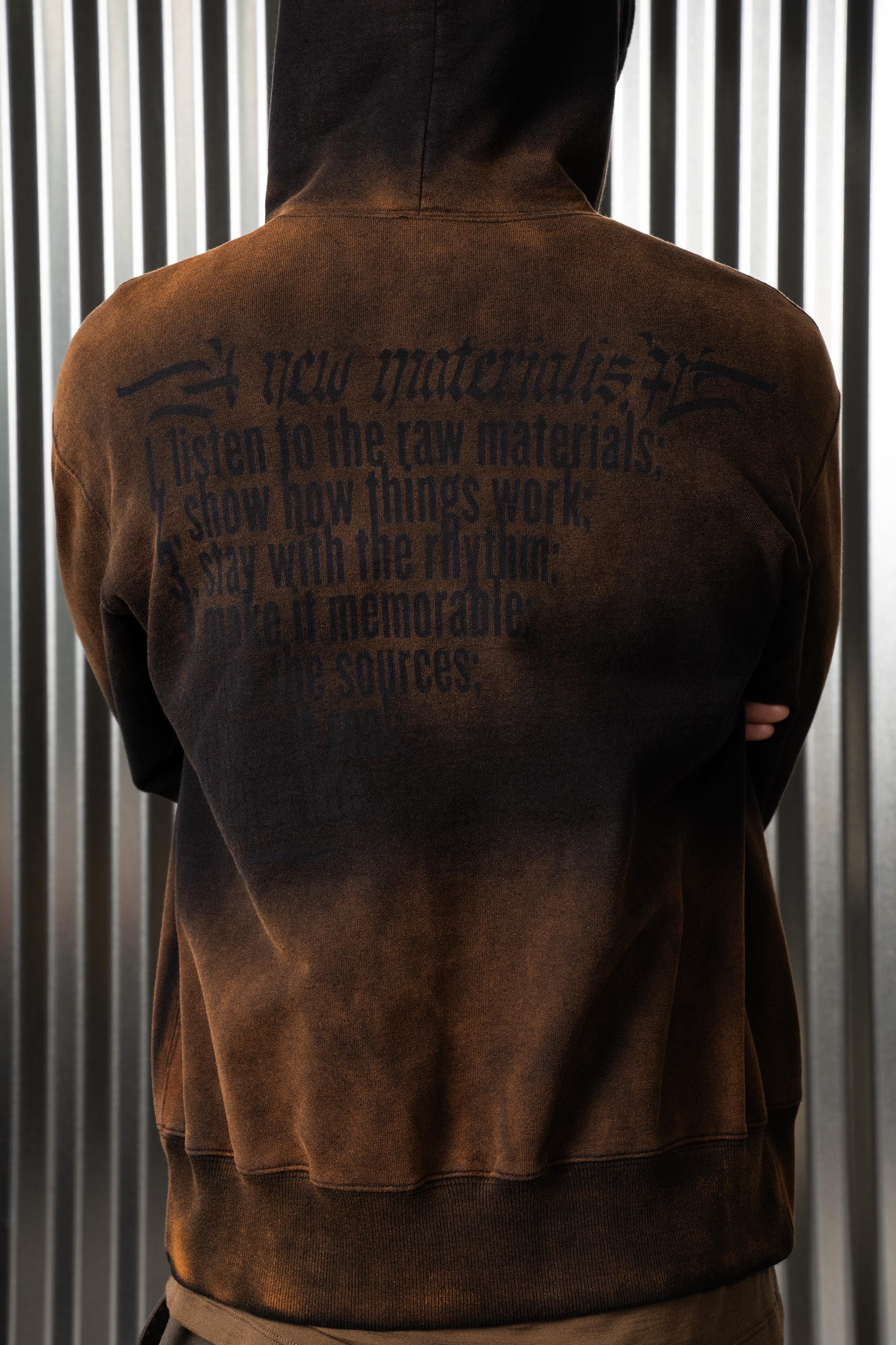 A Hard/co Merino C2Wide Hoodie experiment [#462] thatâs been oxidized and then laser etched with A New Materialism propaganda. High density cotton on th…