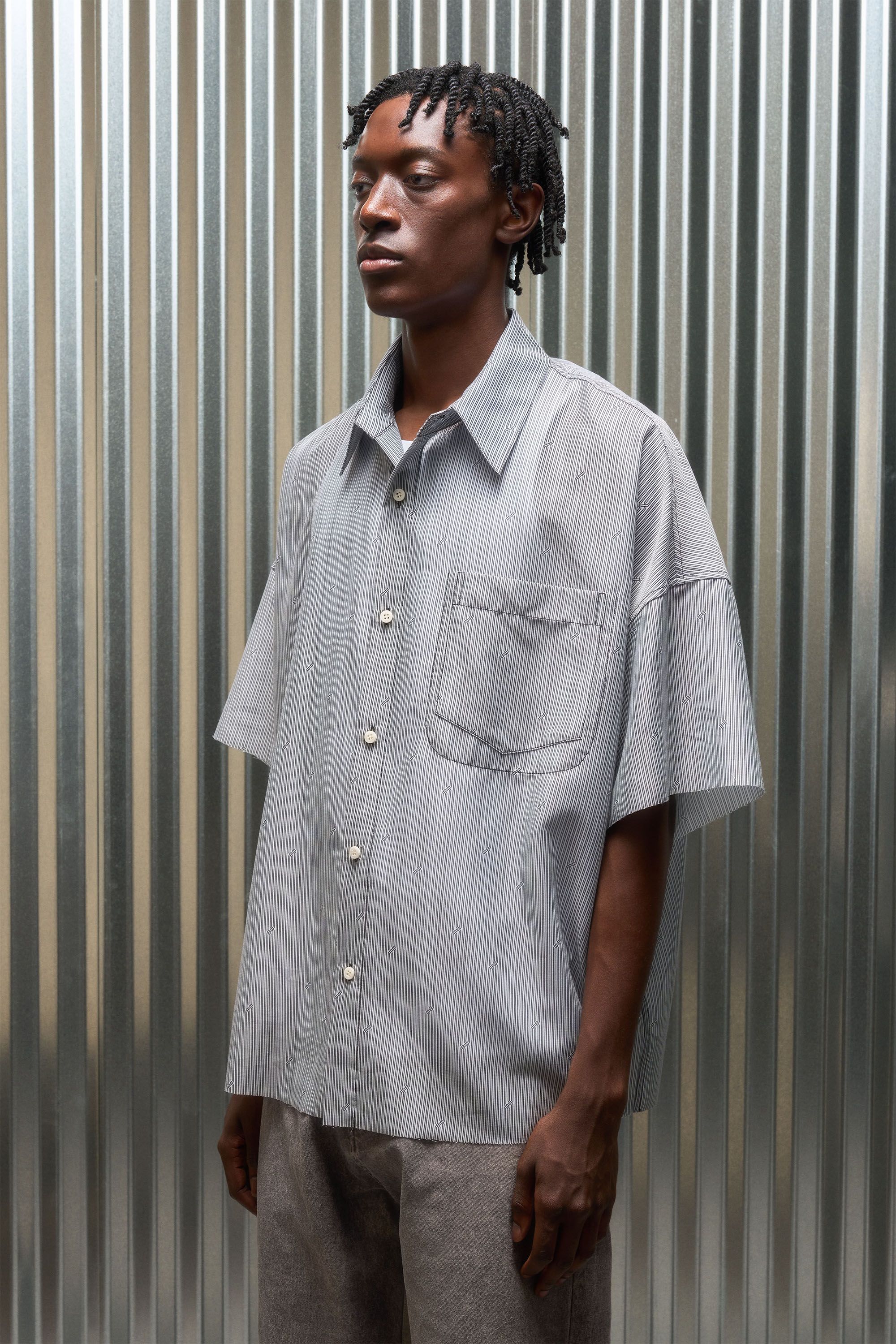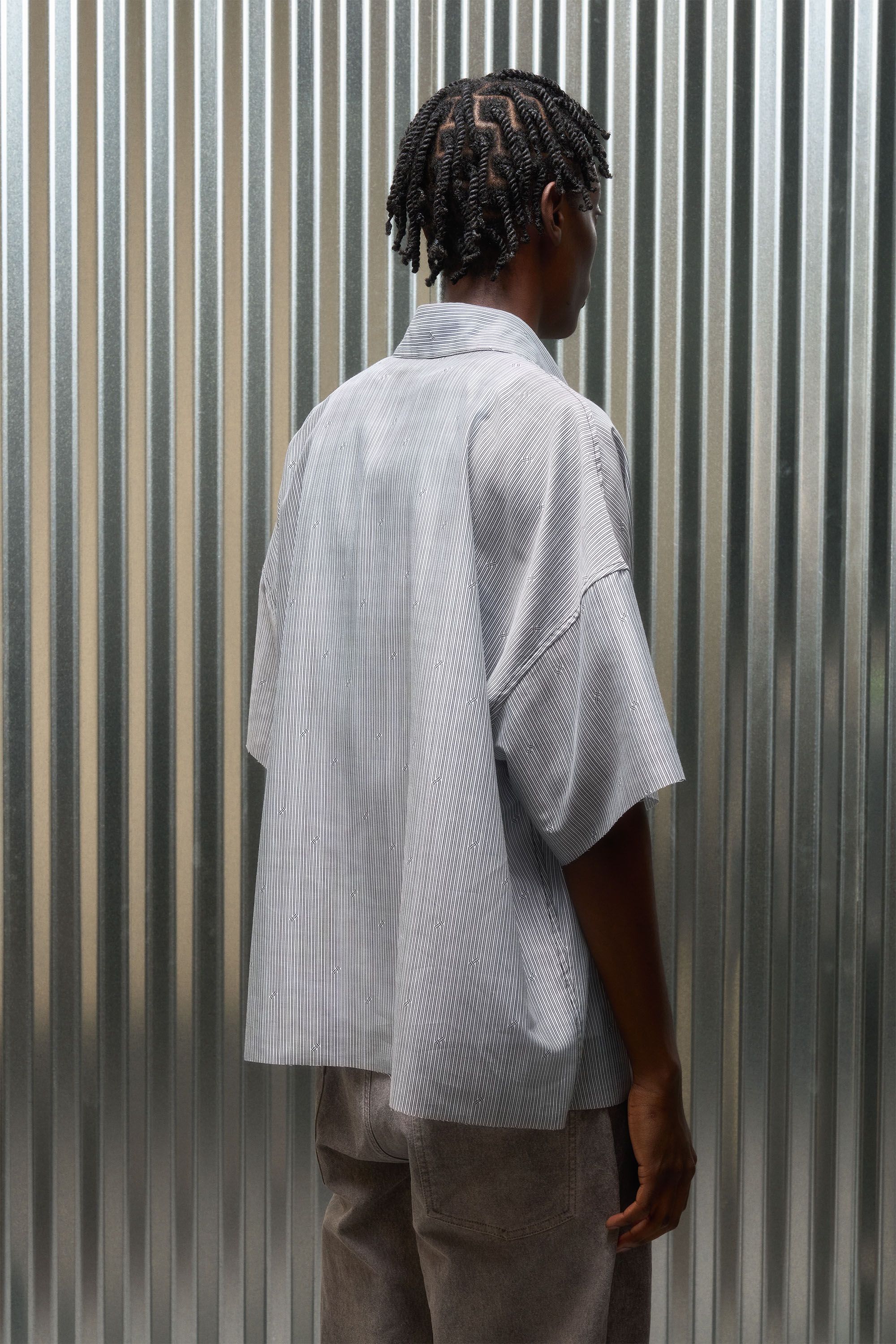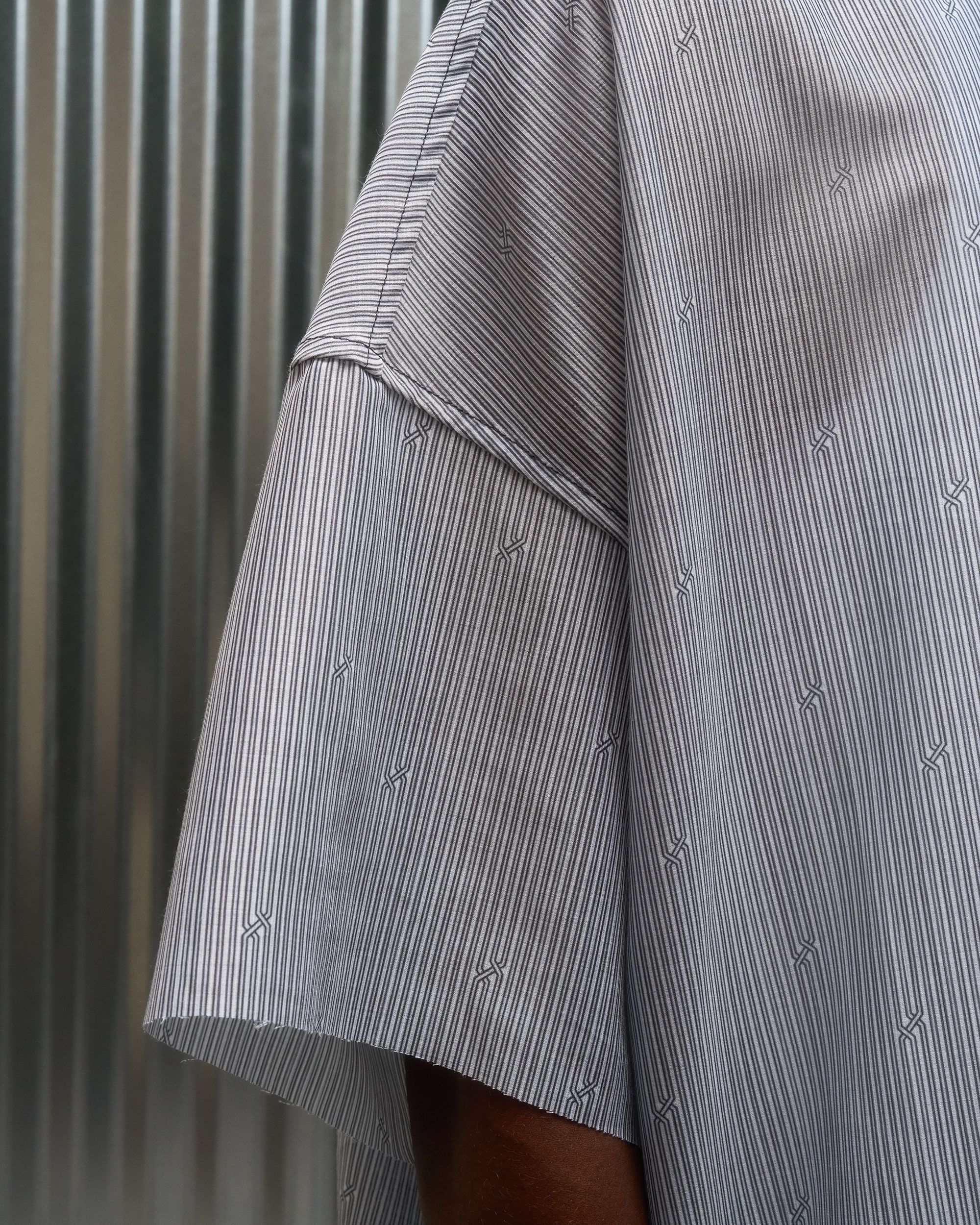 An oversized and raw cut short sleeve button up experiment [#545] utilizing the experimental superlight Air/jex fabric. Filament meets spun yarn in this…