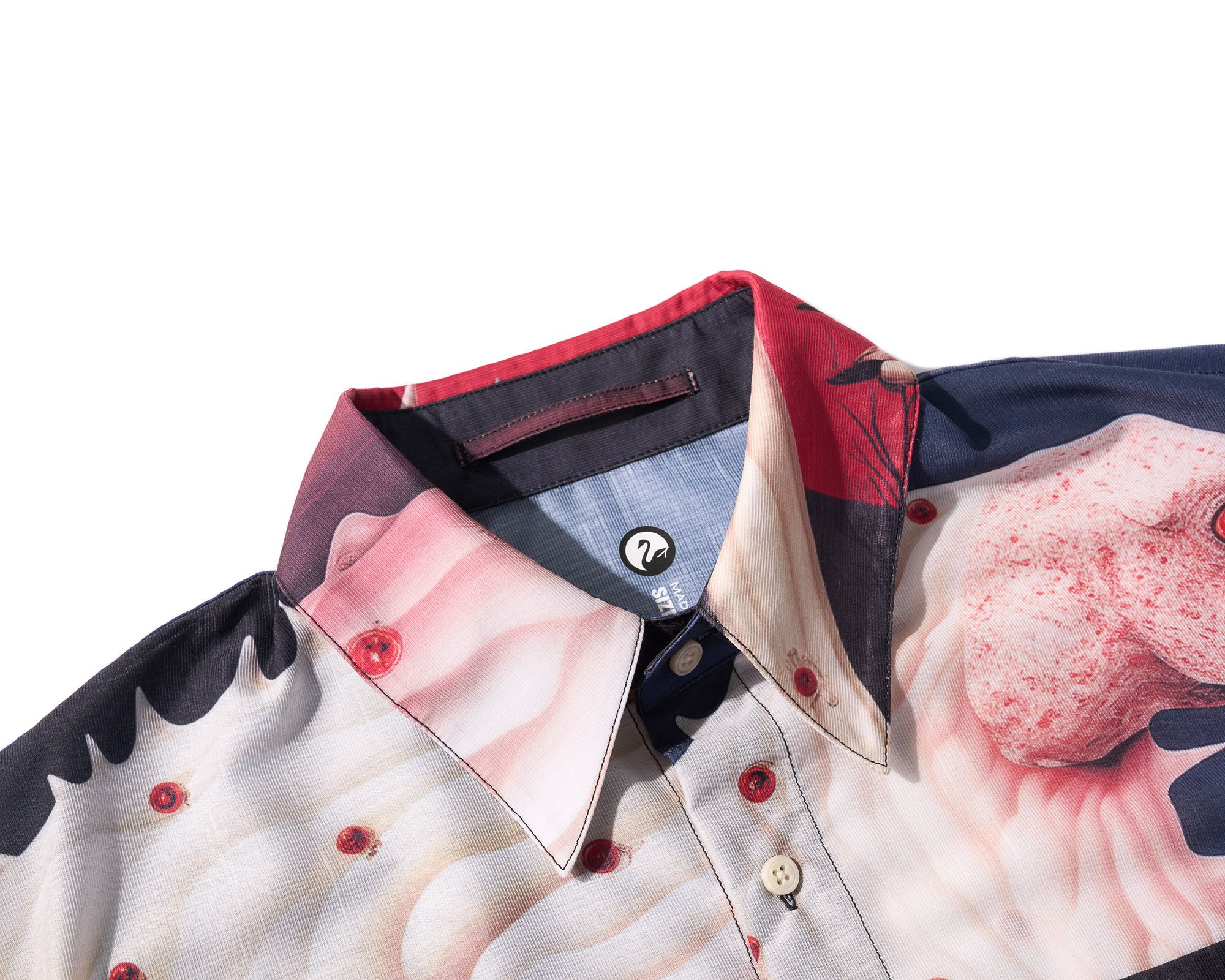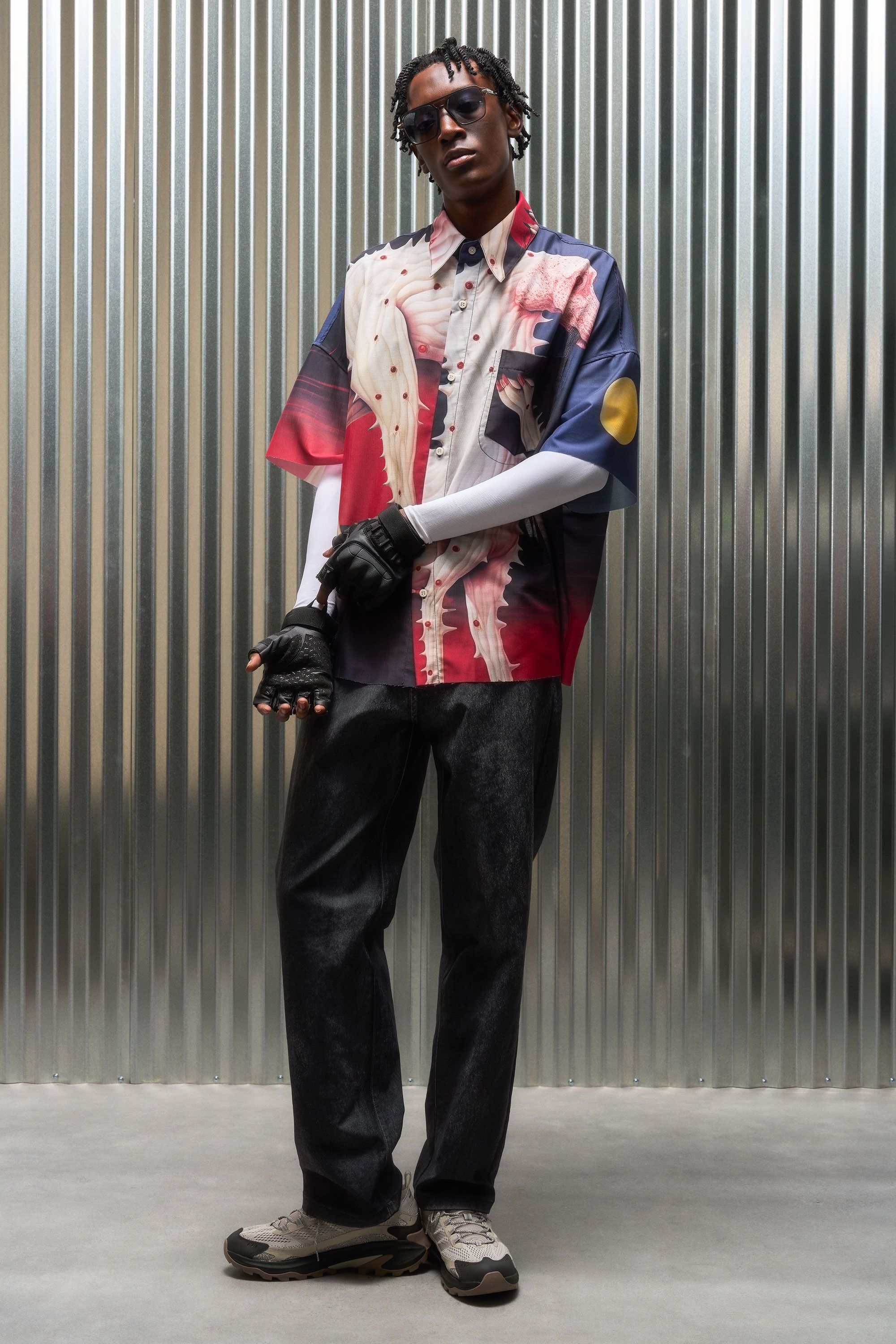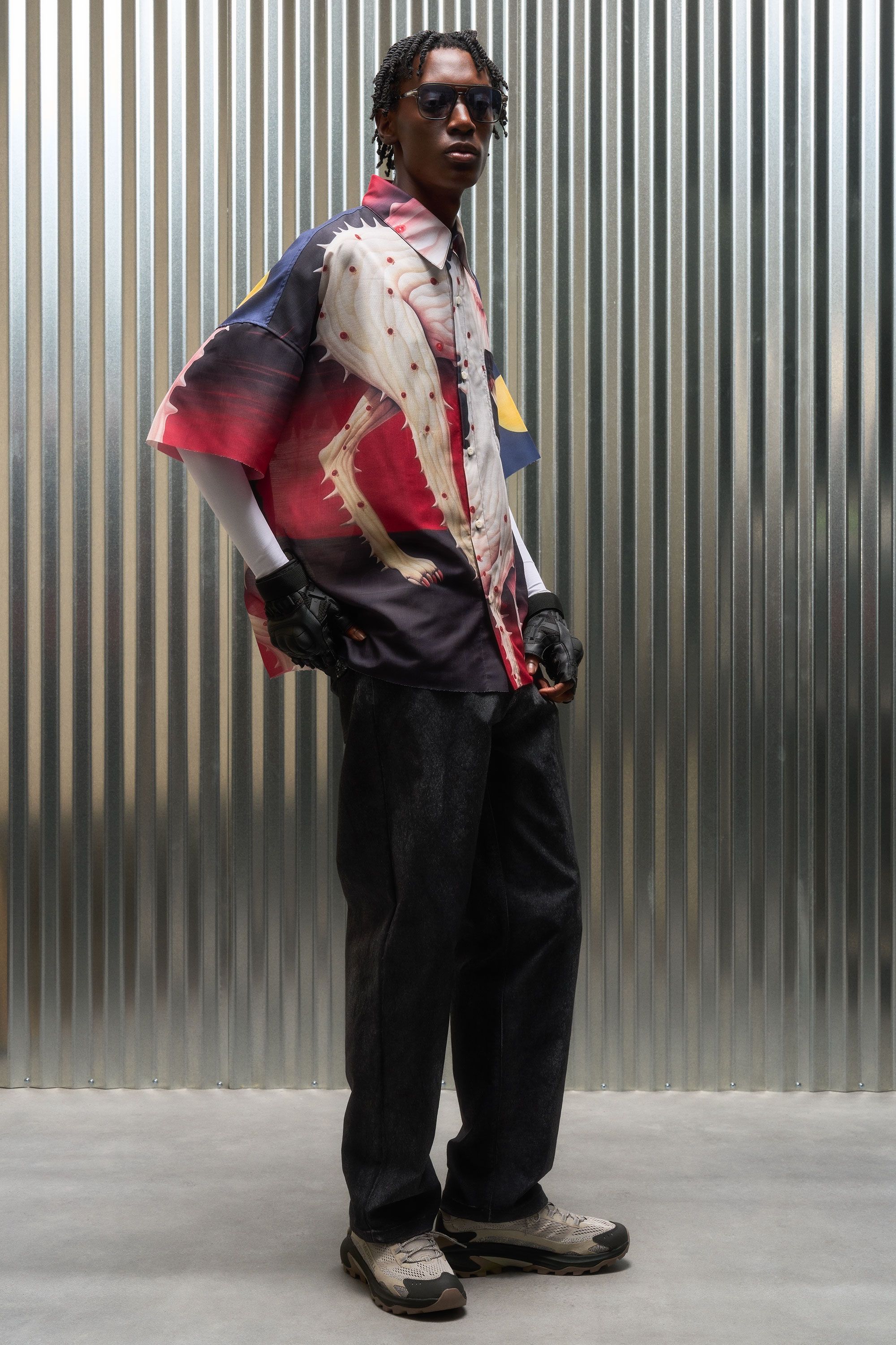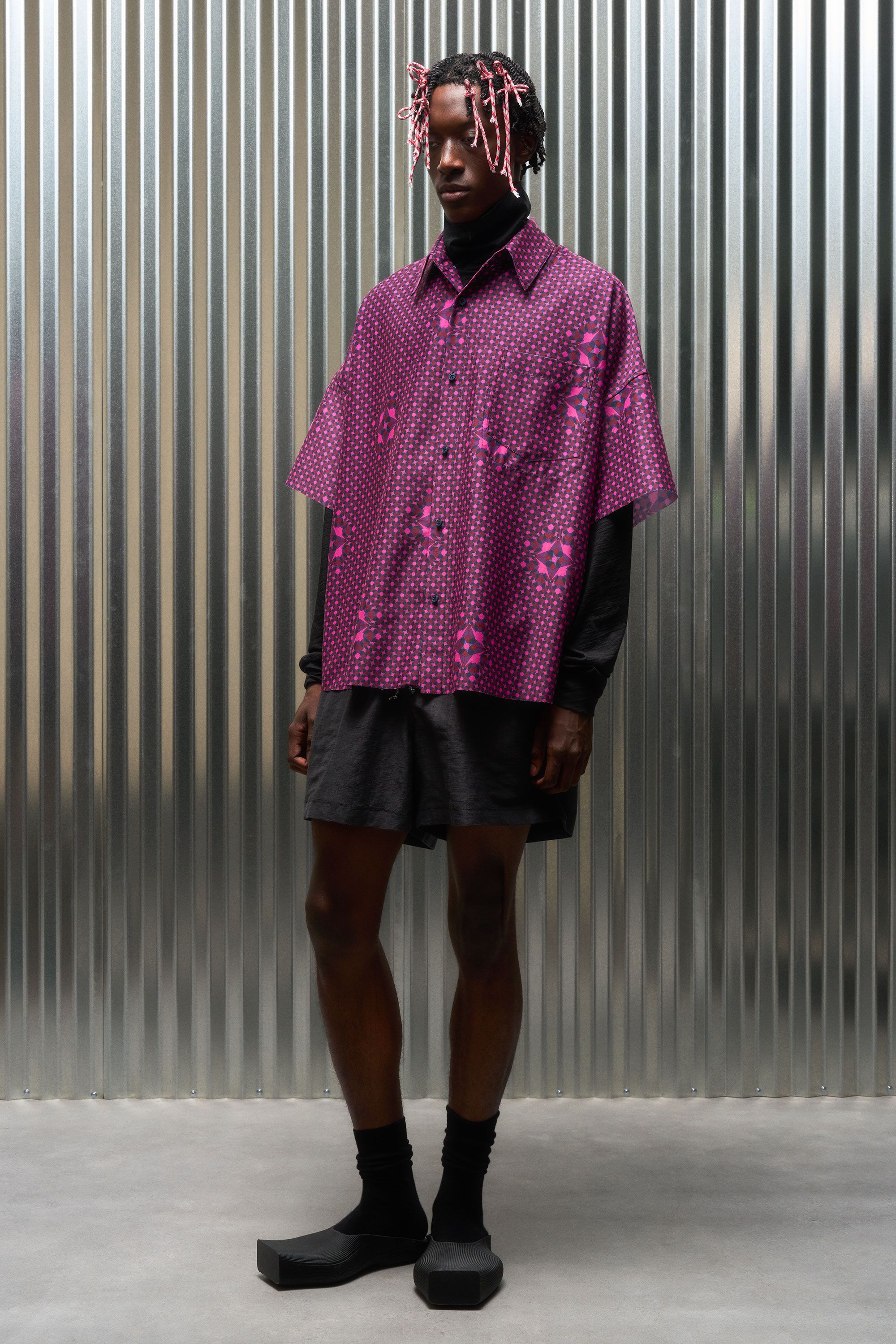 An oversized and raw cut short sleeve button up experiment [#545] utilizing the experimental superlight Air/jex fabric. Filament meets spun yarn in this…