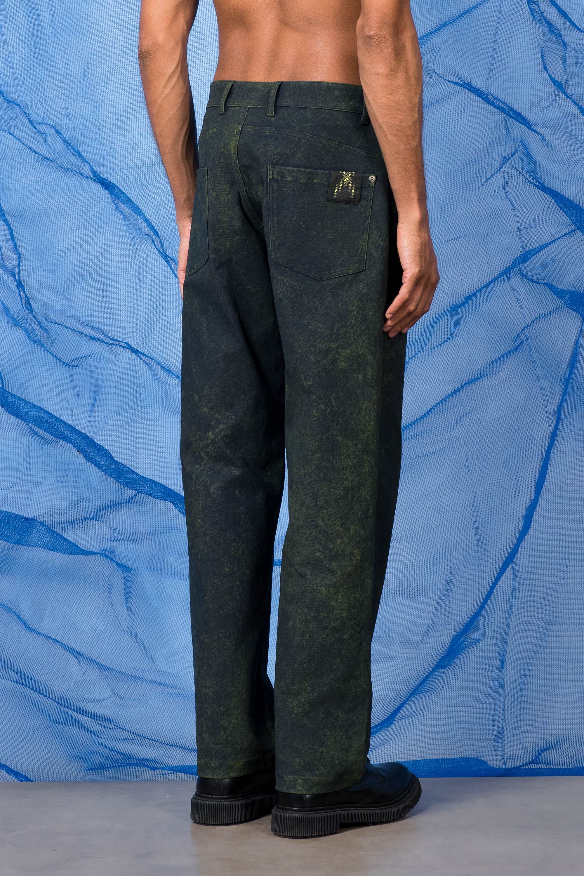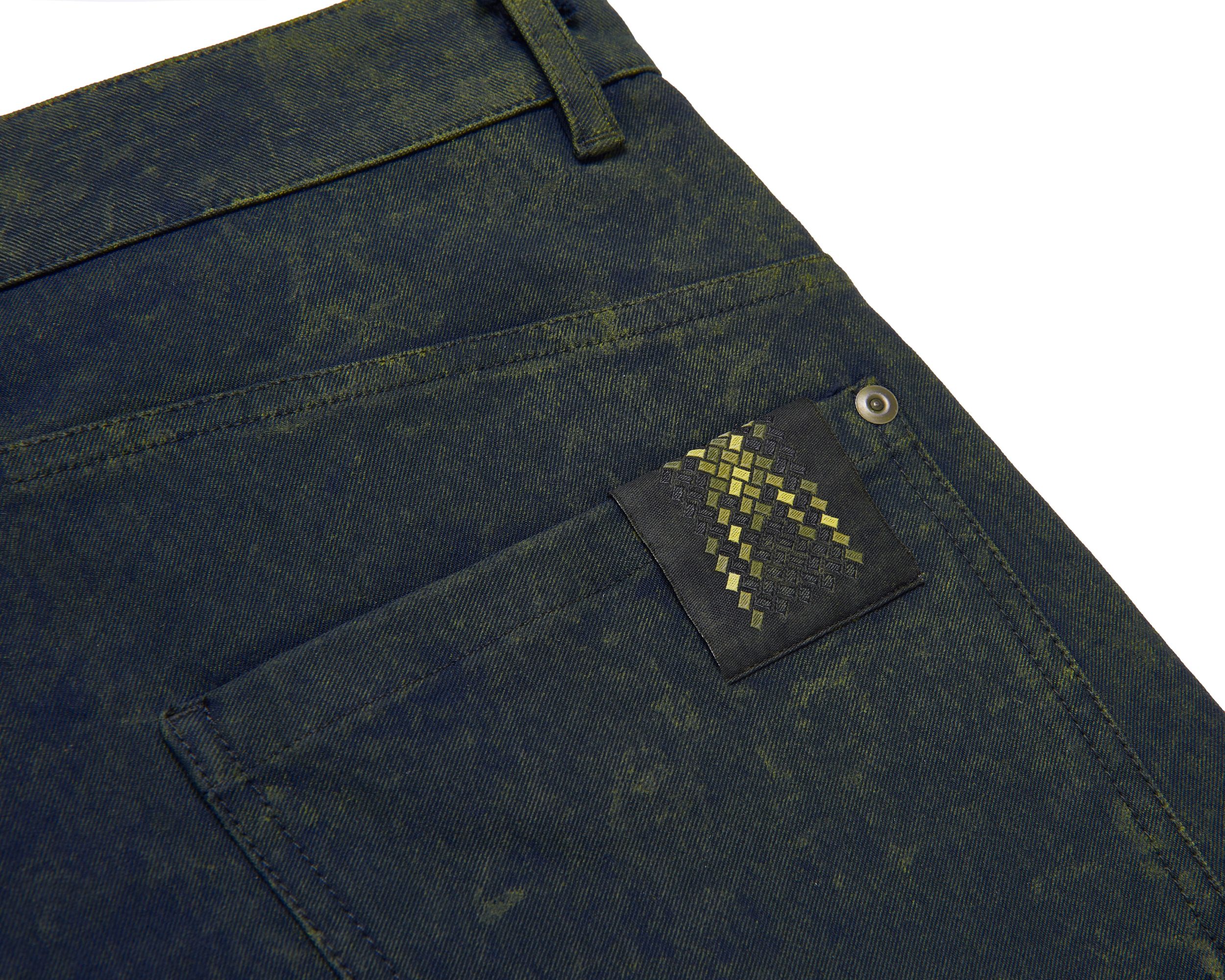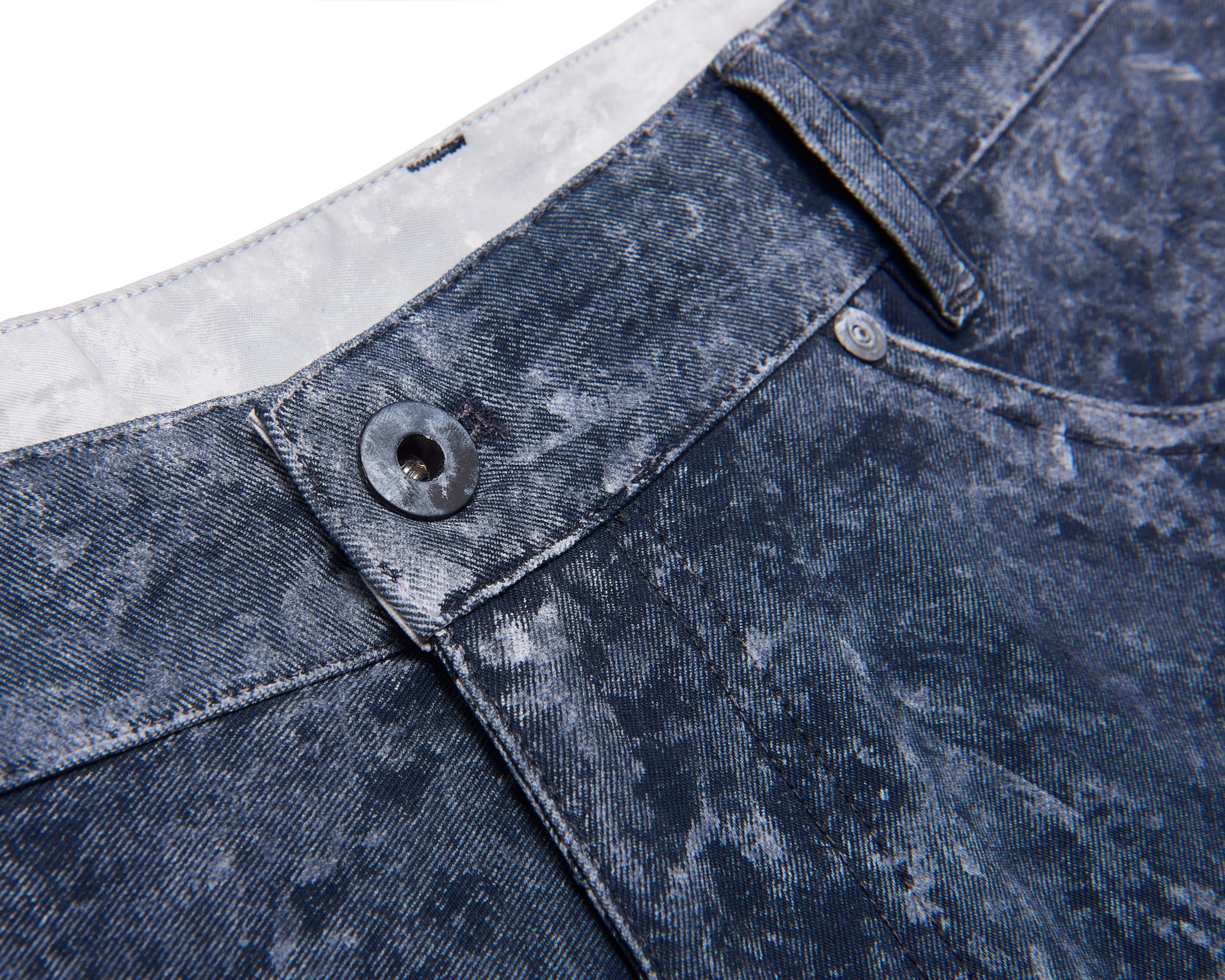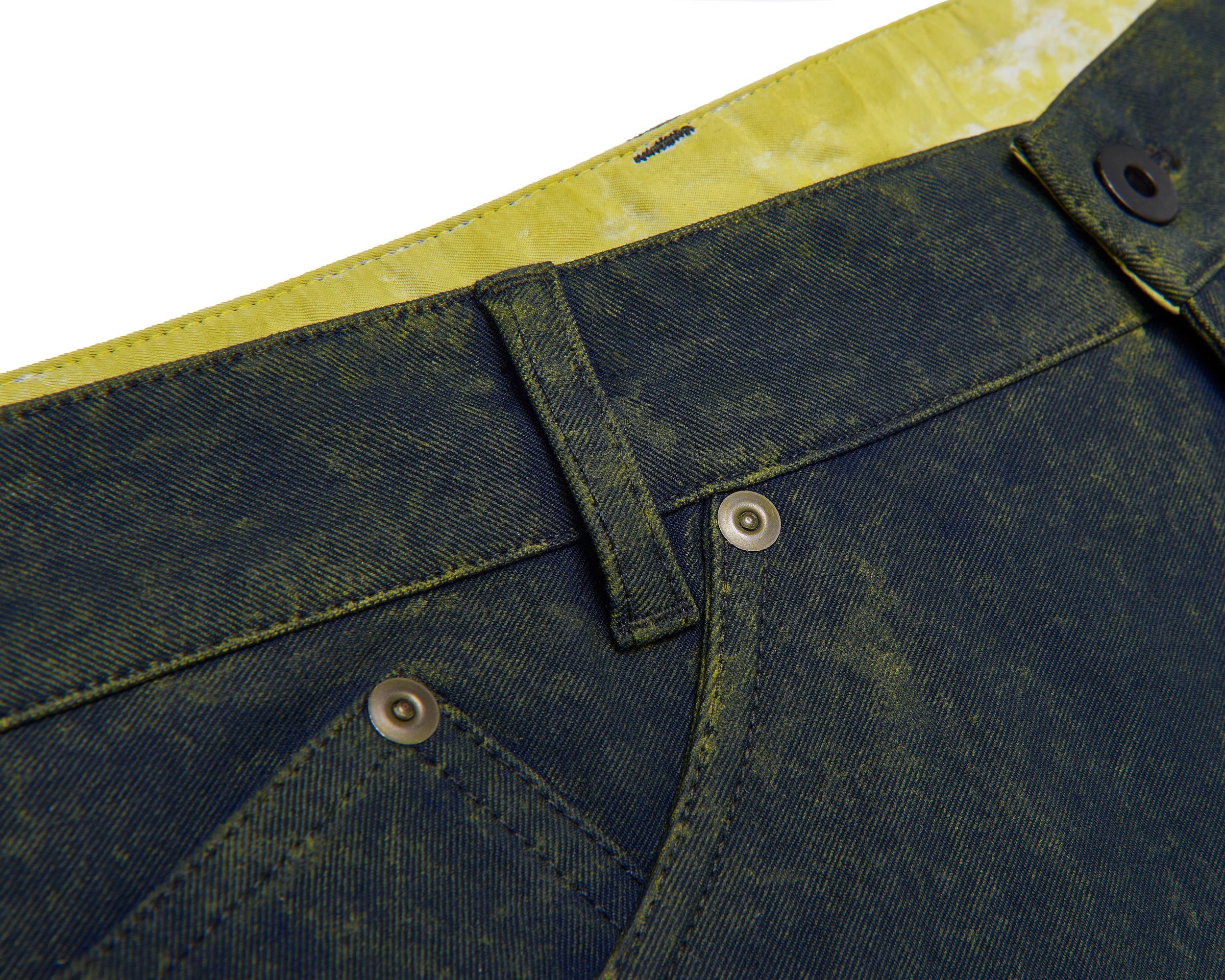 A pigment tumbling experiment [#421] on our Bombdeux Standard cut. A 21st century jean, cut loose with a 32â inseam and tumbled with pigment to create s…