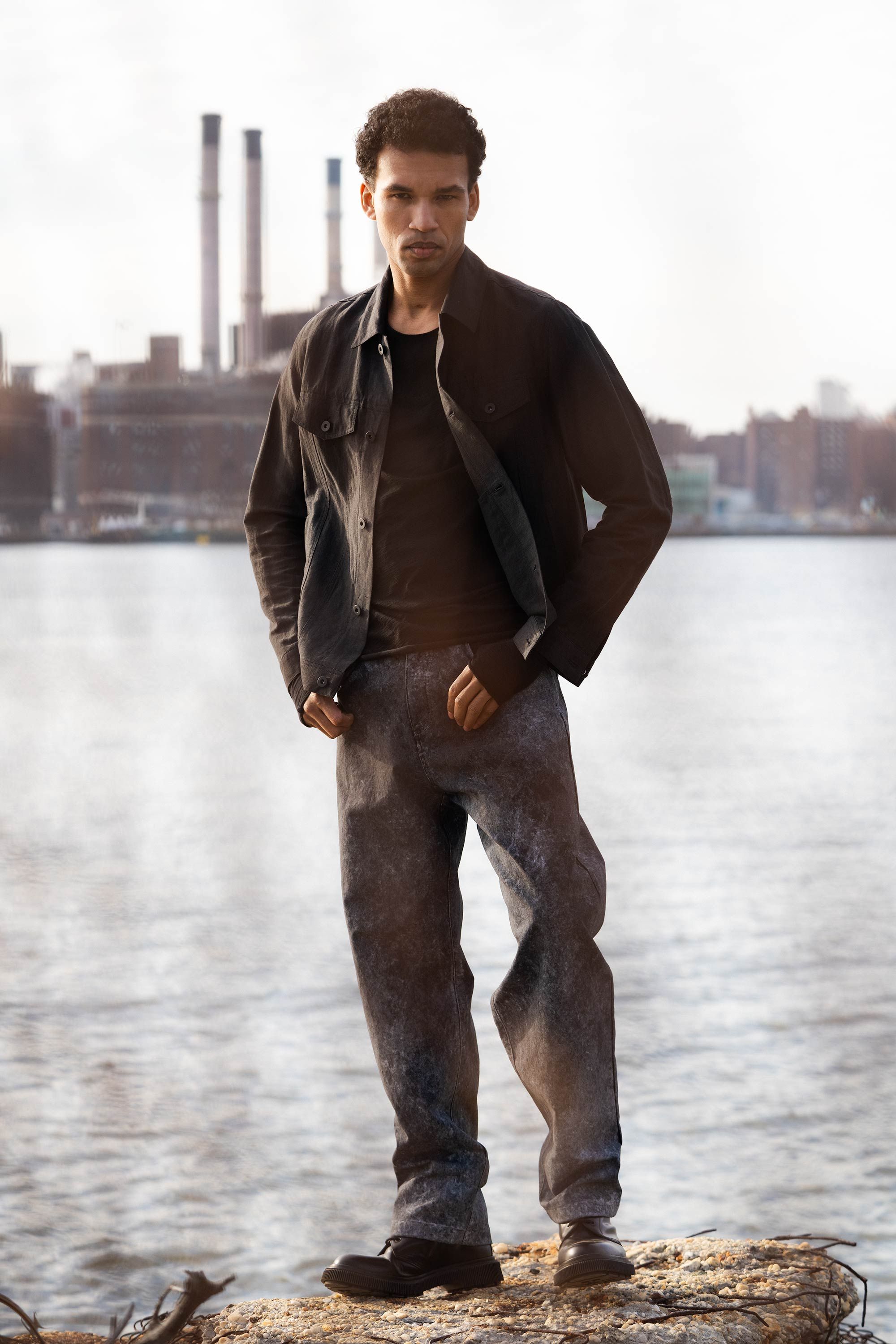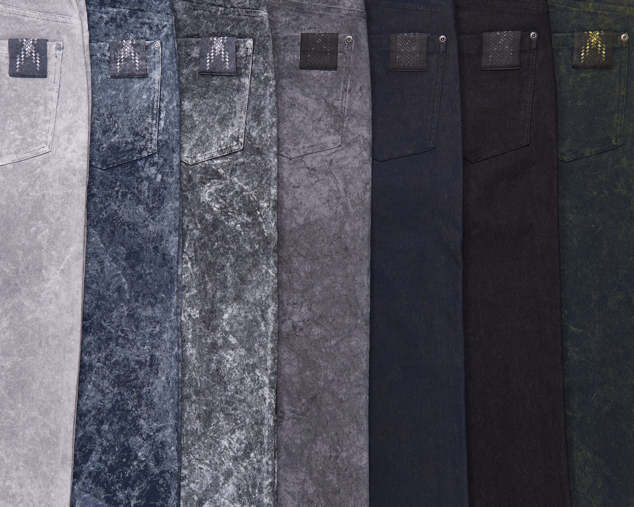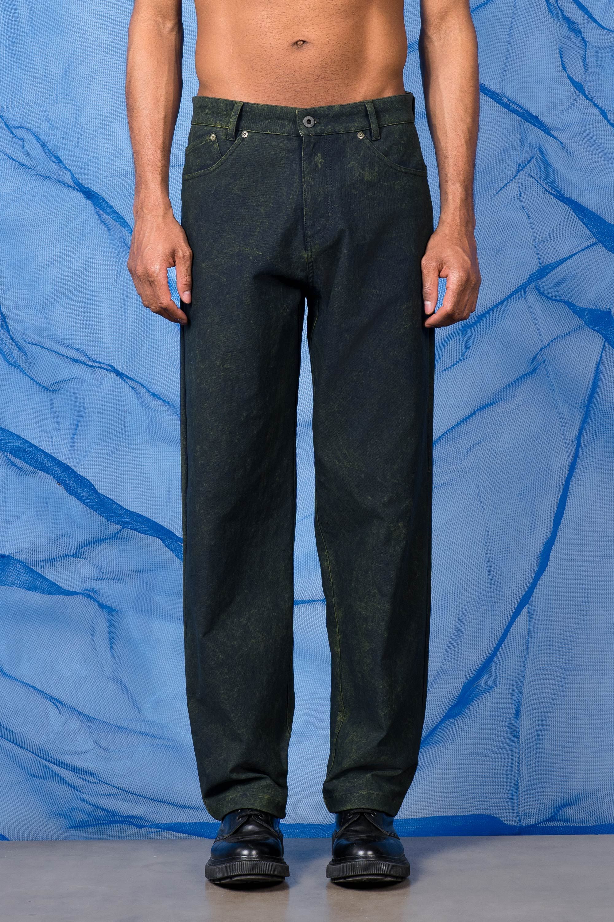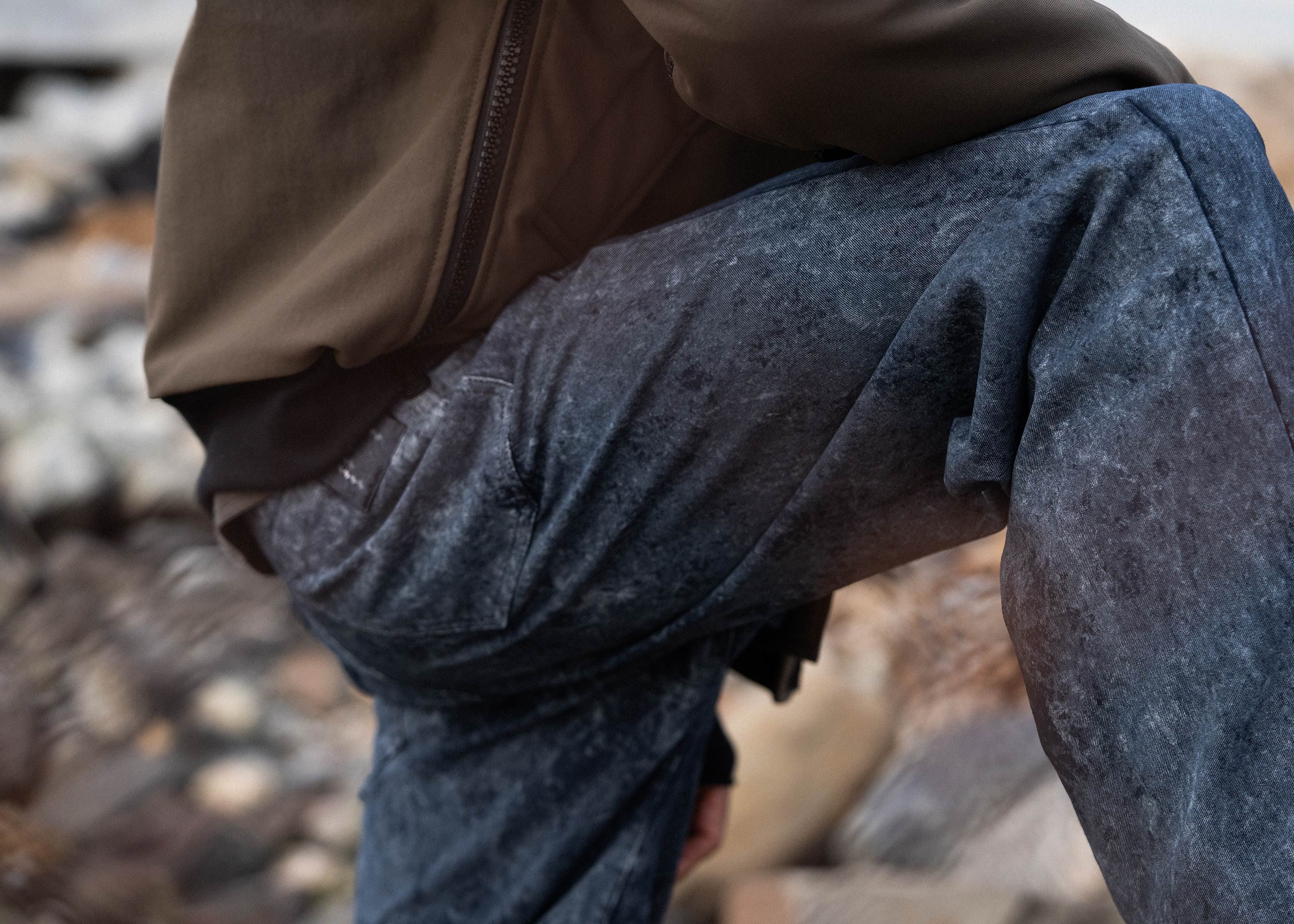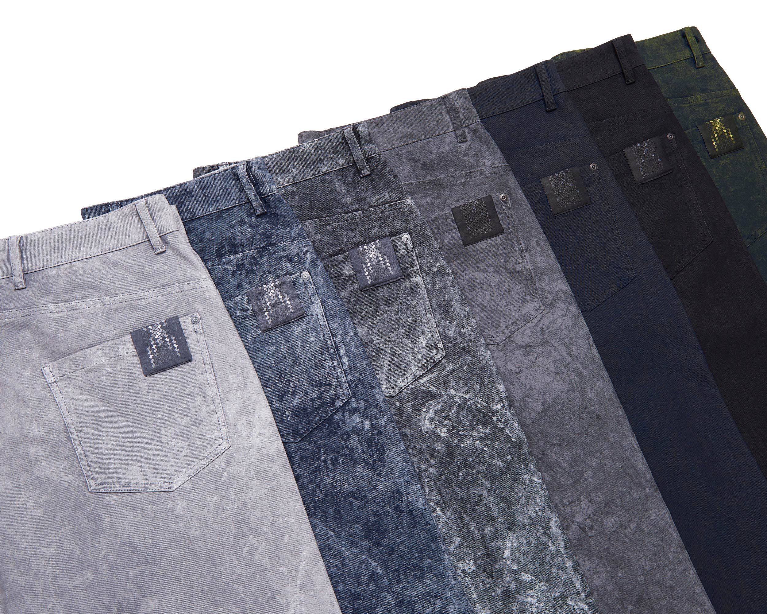 A pigment tumbling experiment [#421] on our Bombdeux Standard cut. A 21st century jean, cut loose with a 32â inseam and tumbled with pigment to create s…