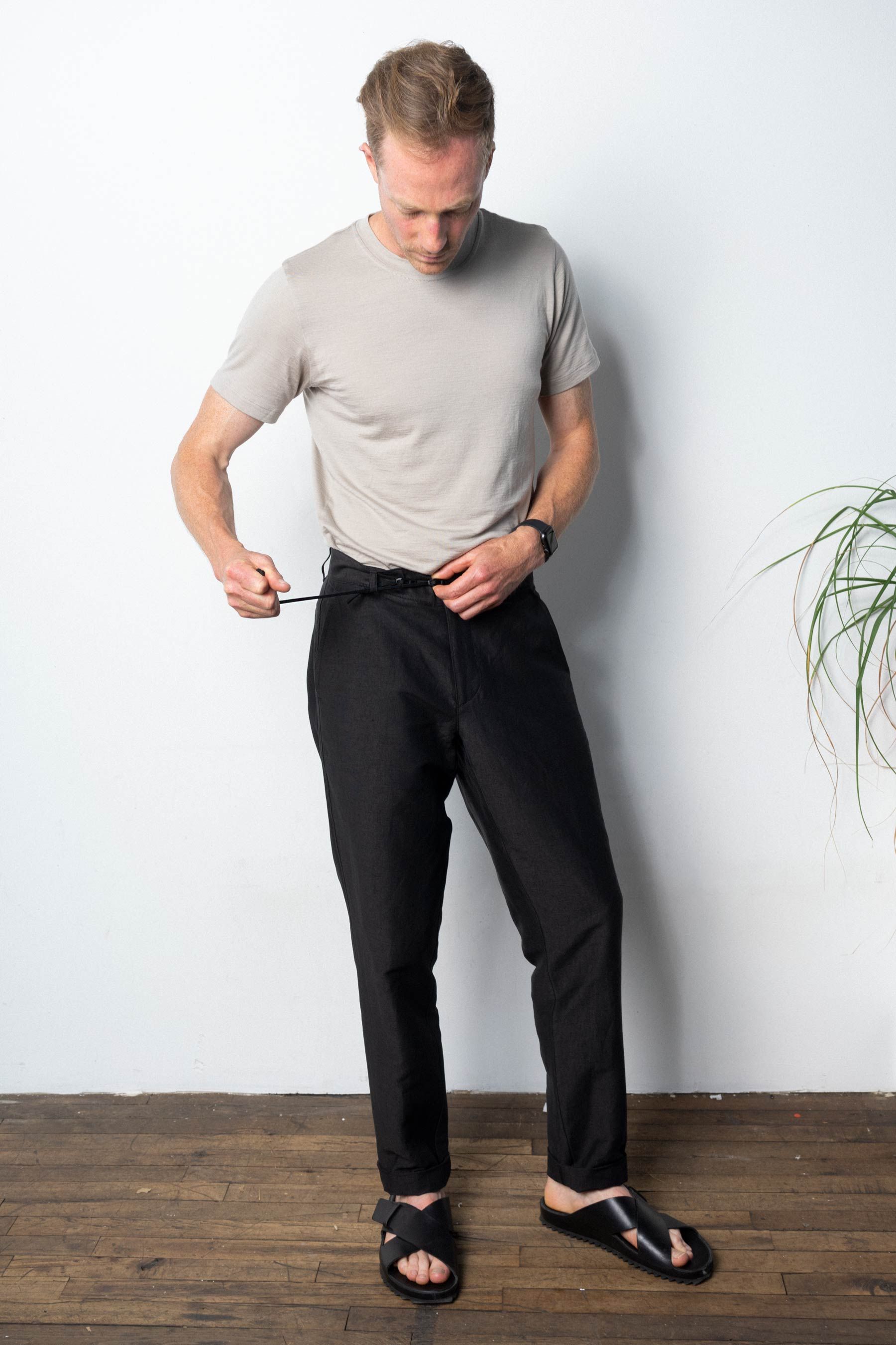 An experimental version of our extremely breathable Injected Linen Pants with a new 3Bar waistband adjust system. The dual 3Bar system allows independen…
