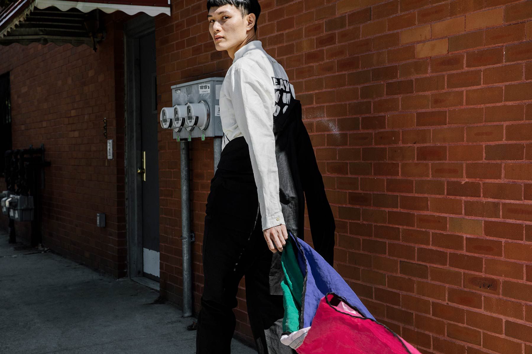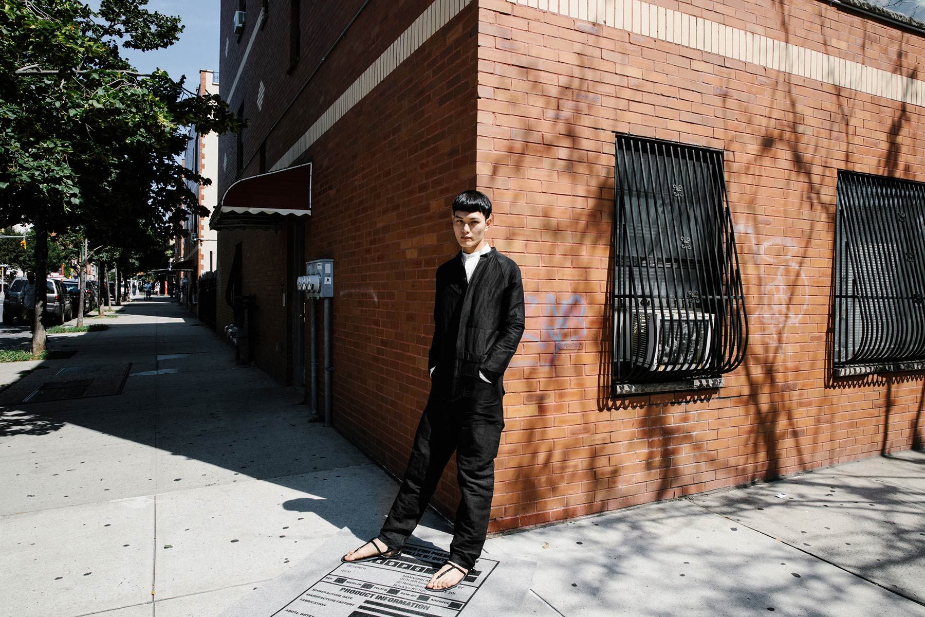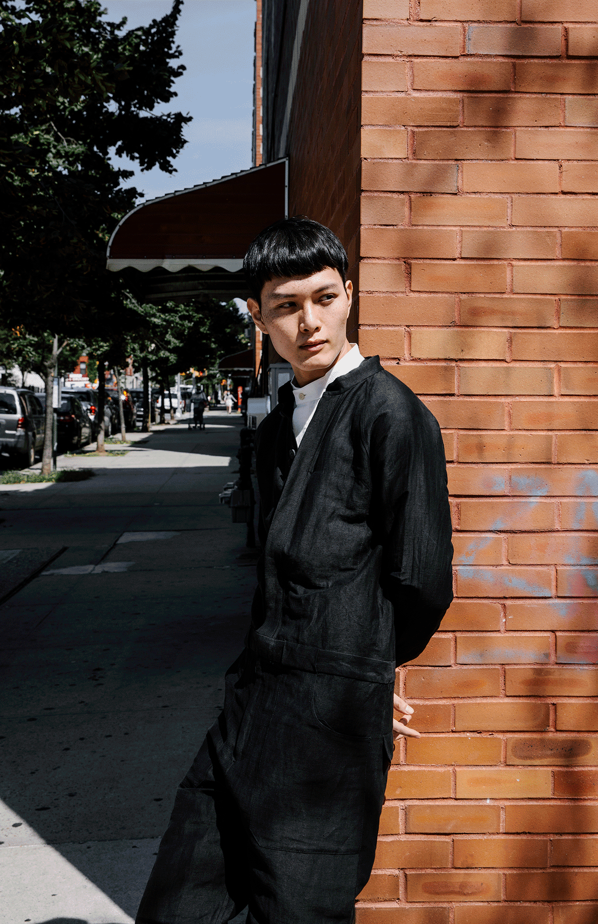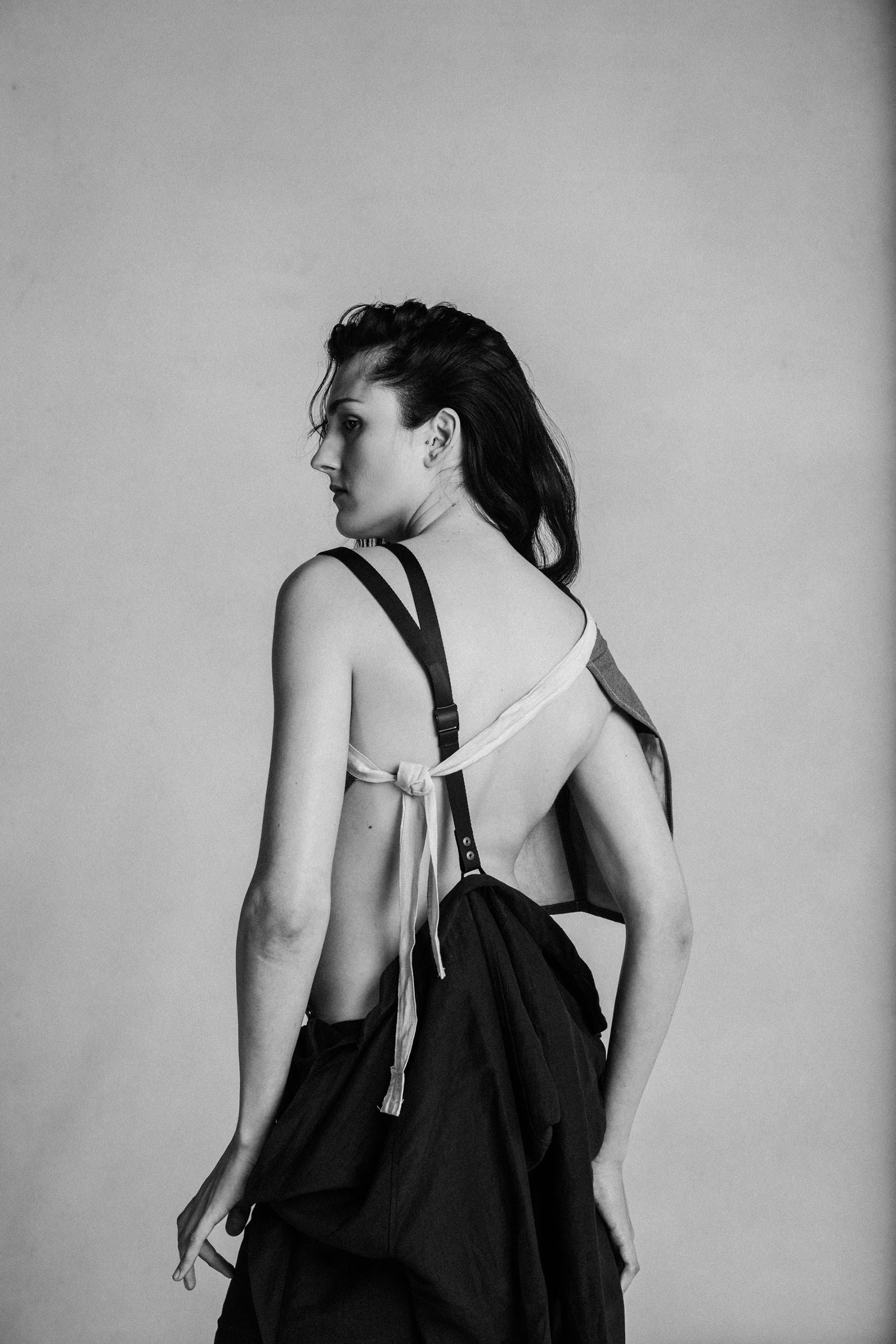 A self-styling jumpsuit experiment in the radically open yet opaque Injected Linen fabric.