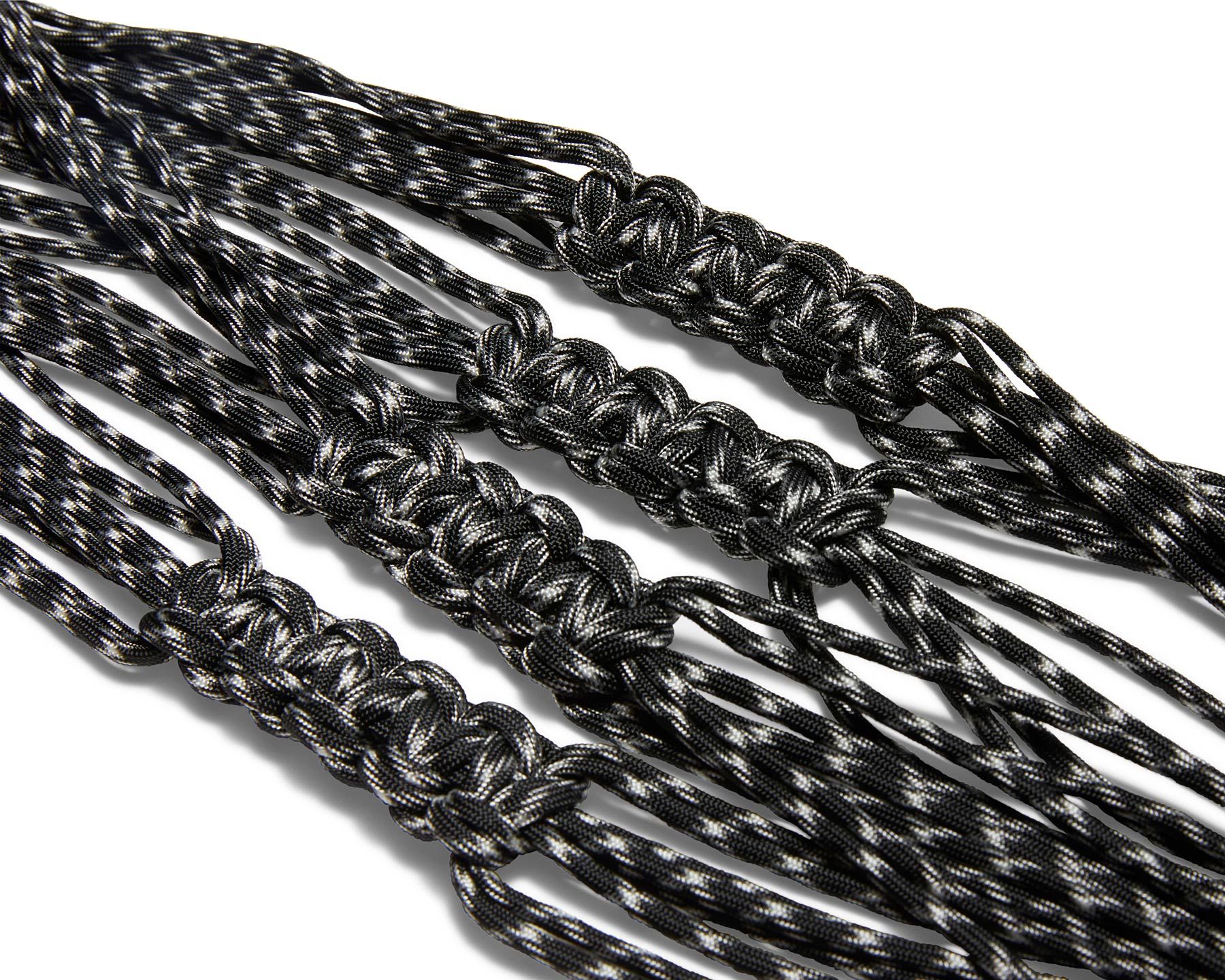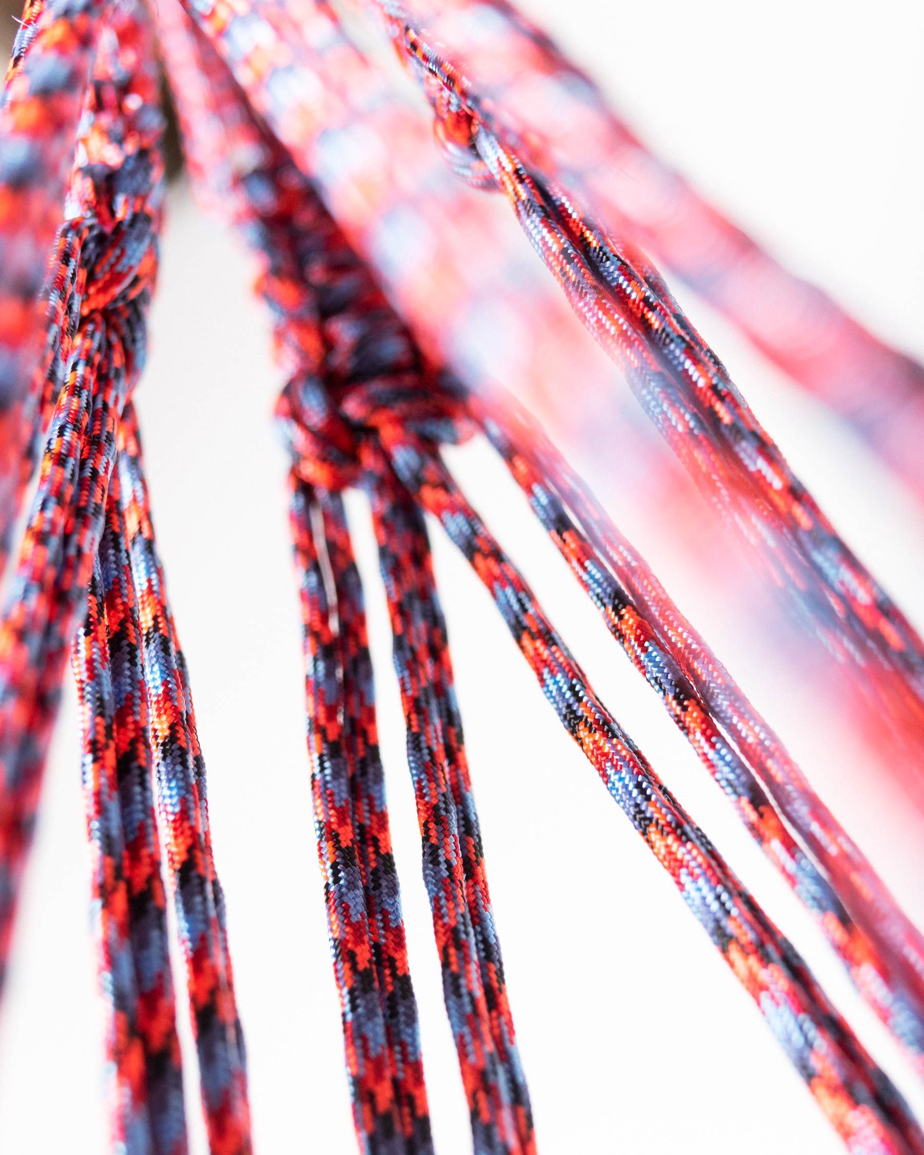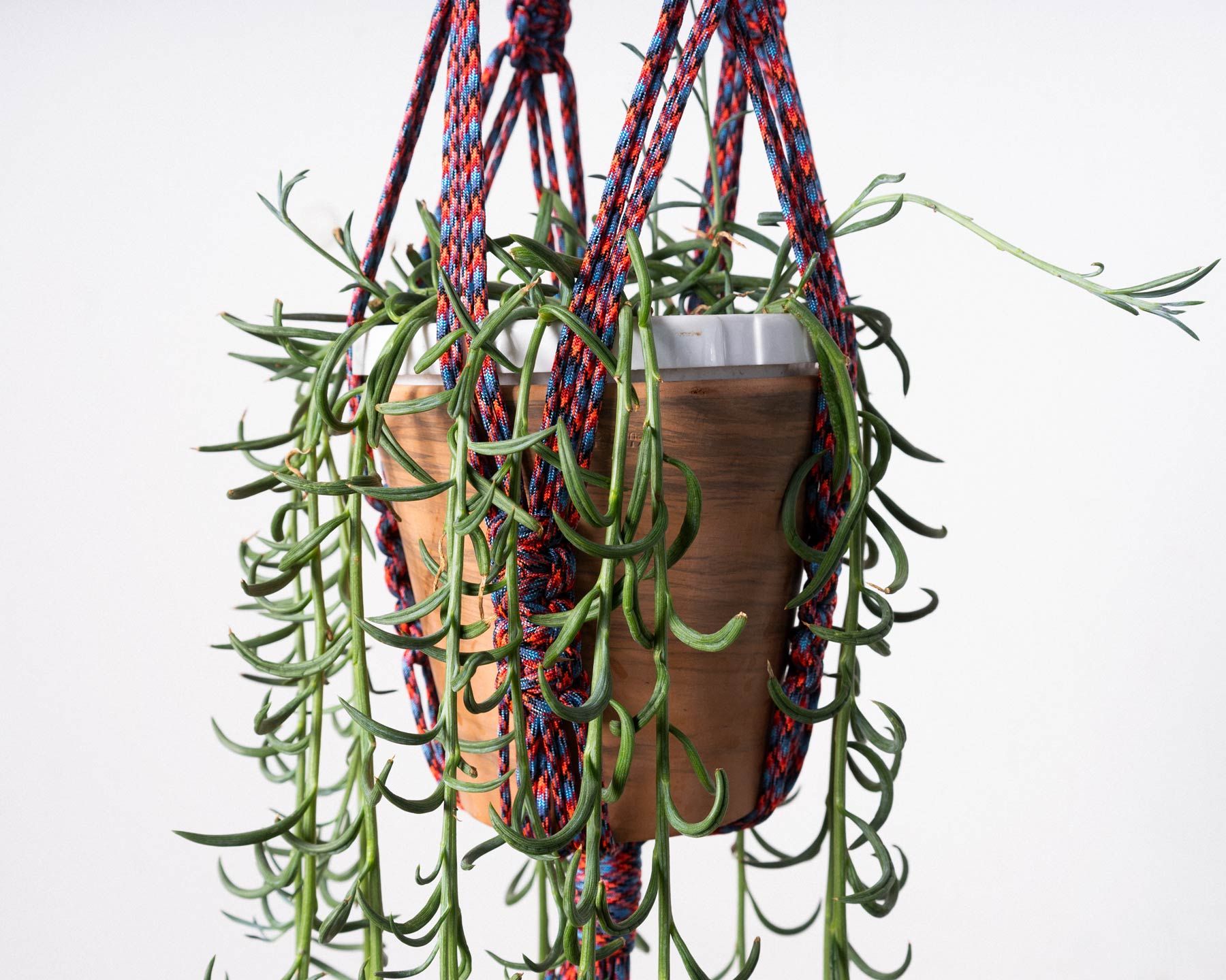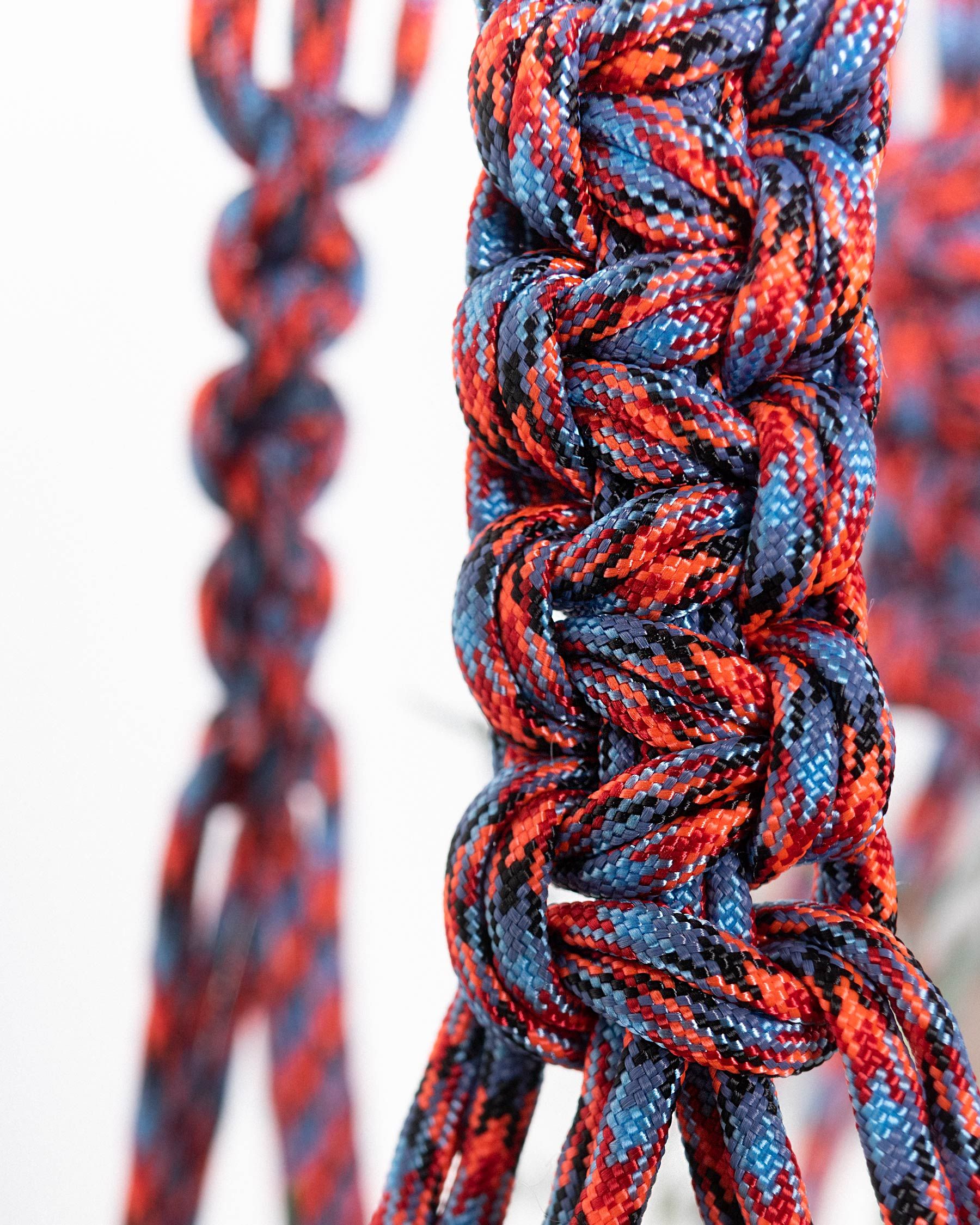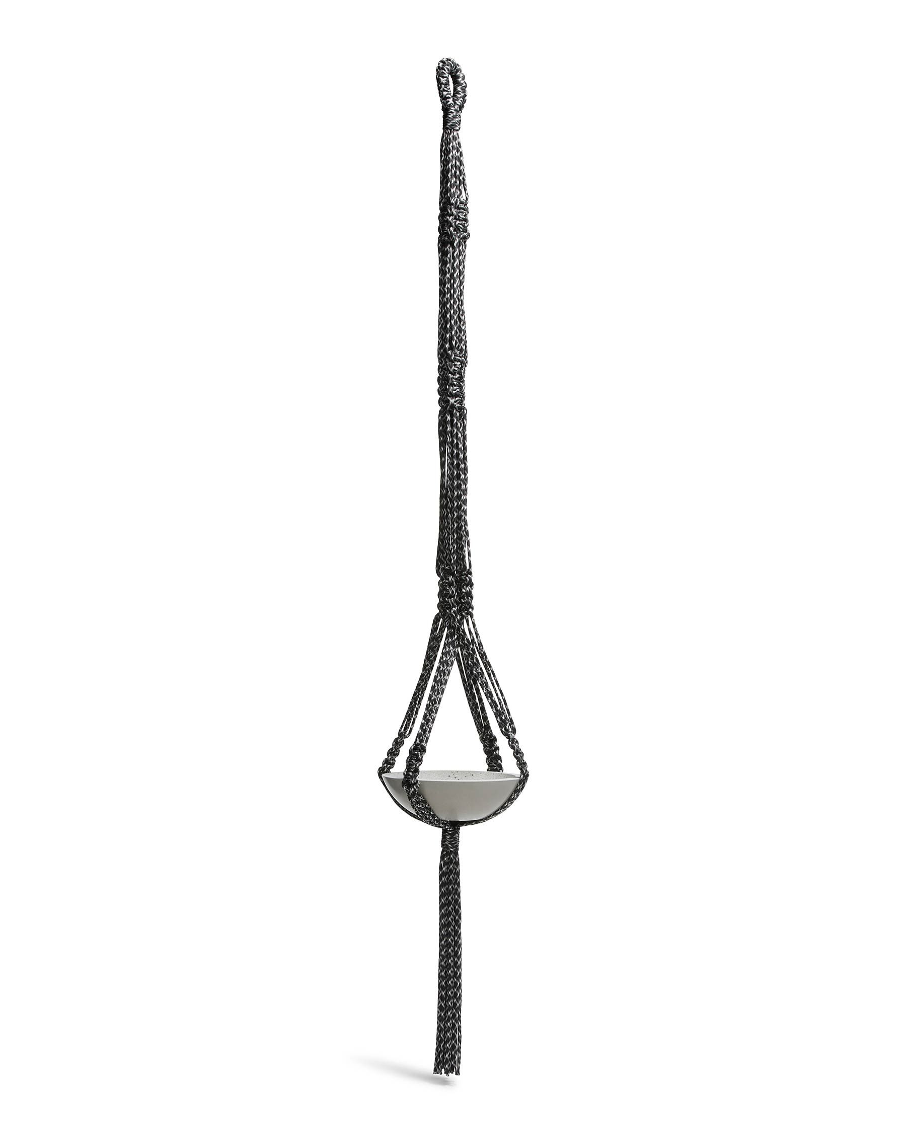 A macrame paracord plant hanger experiment. 250 feet of paracord cleanly knotted together to create a 57 inch long hanger good for pots around a foot in…