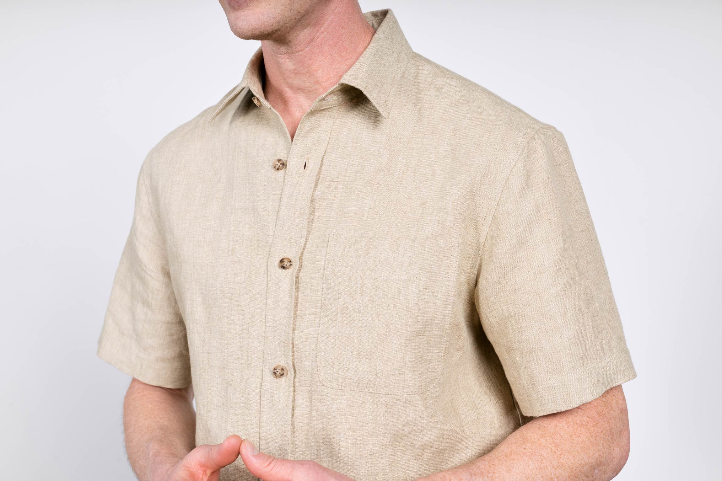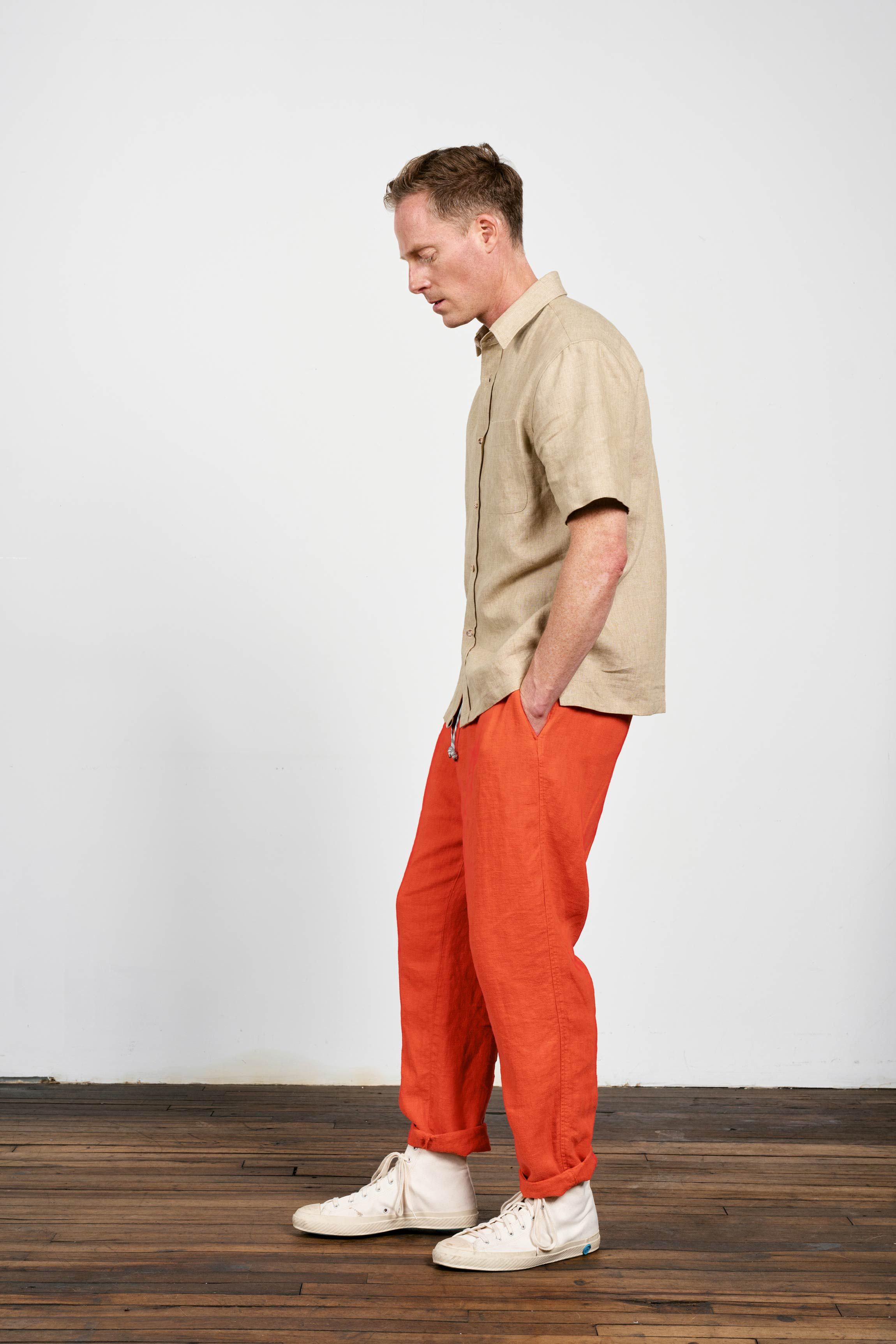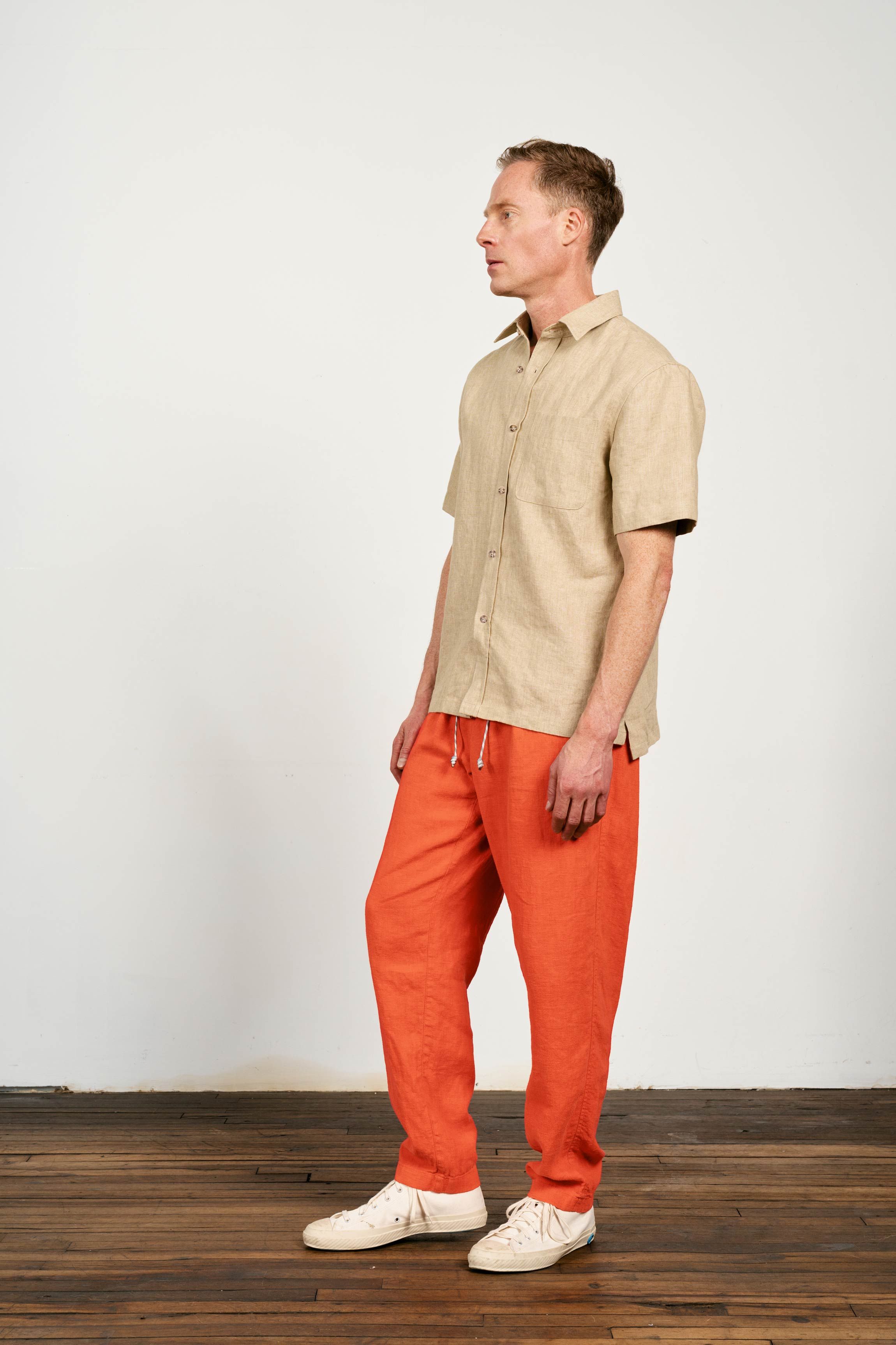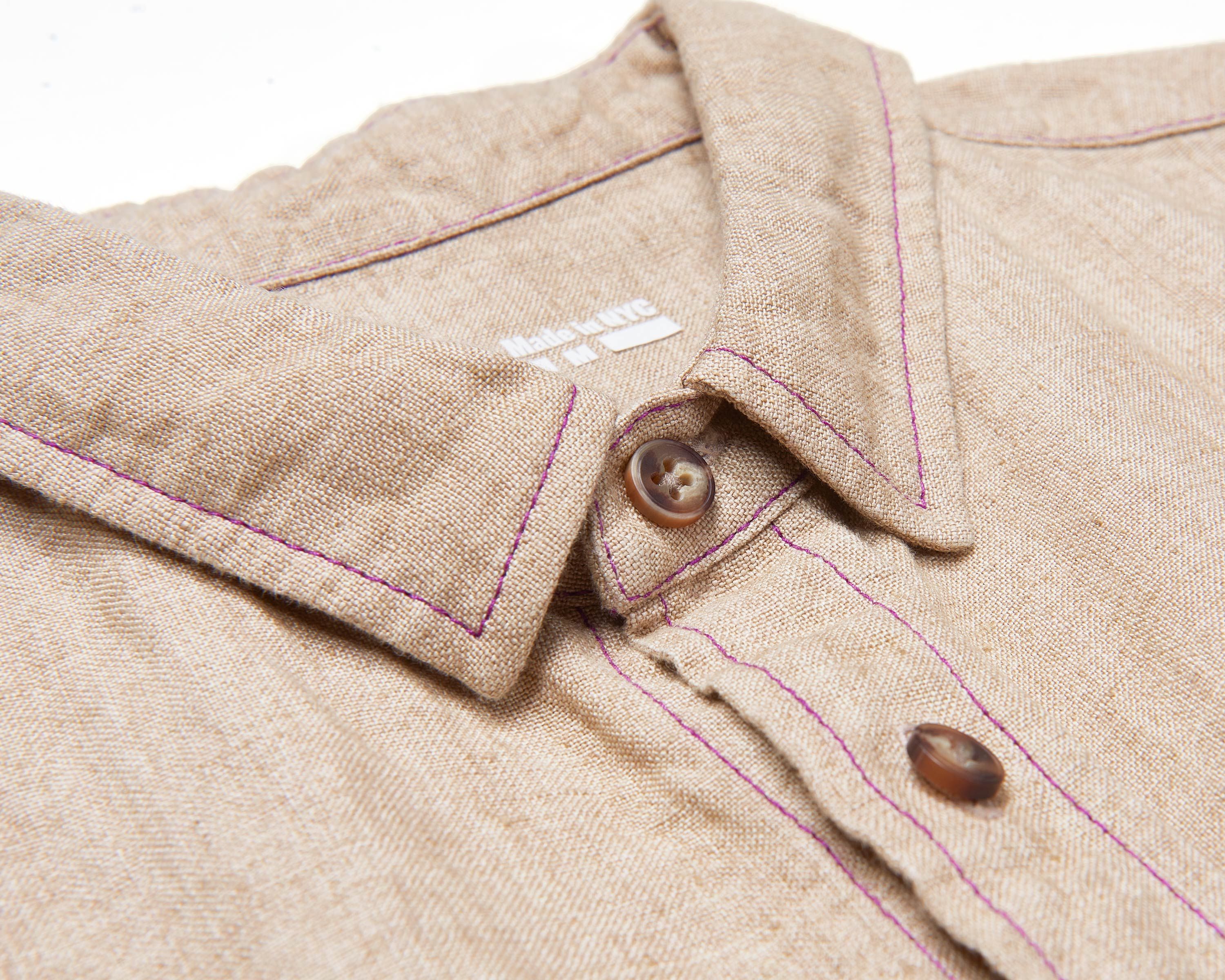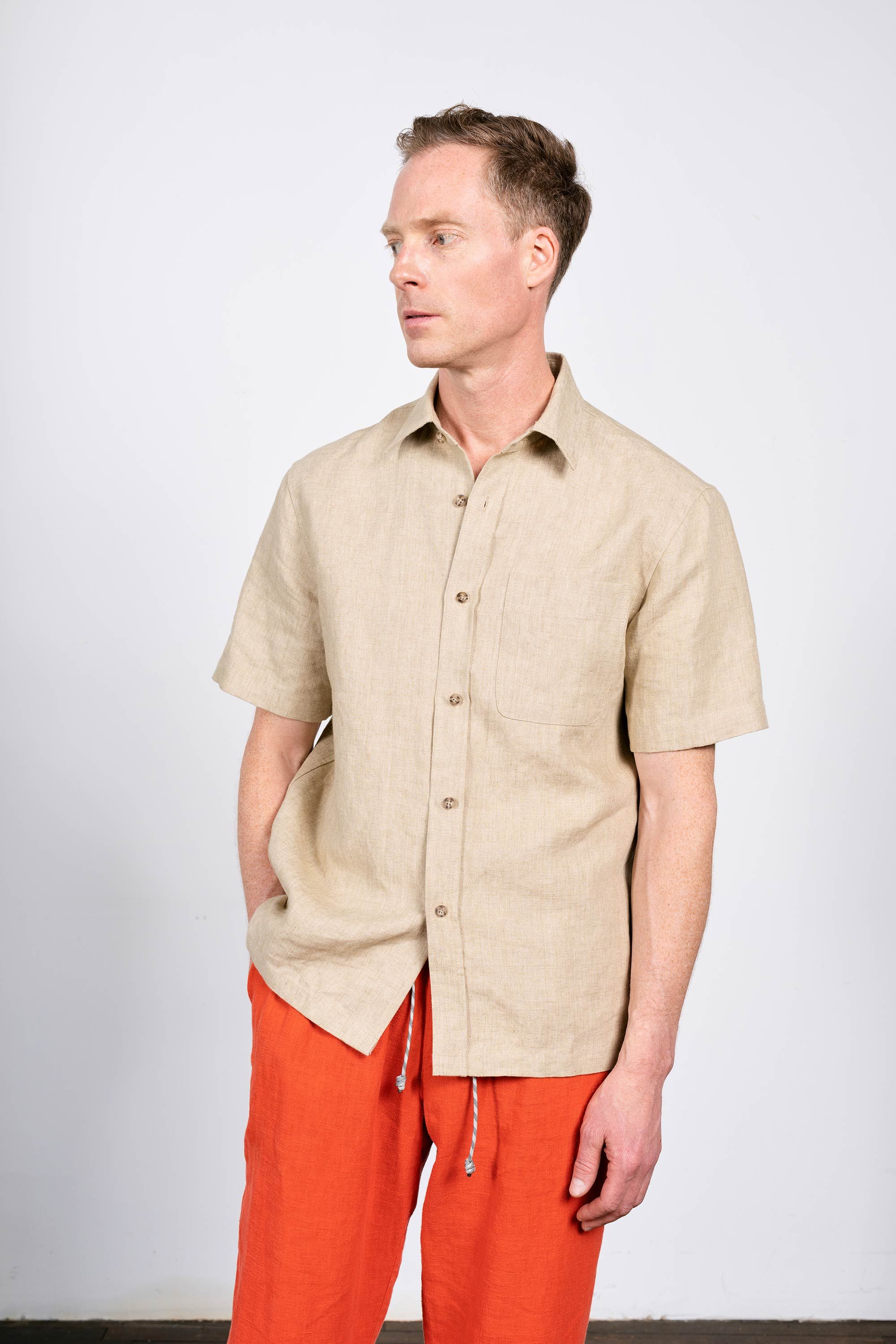 A heavyweight short sleeve shirt experiment. 240gsm of densely woven linen with a beautiful subtly variated texture.