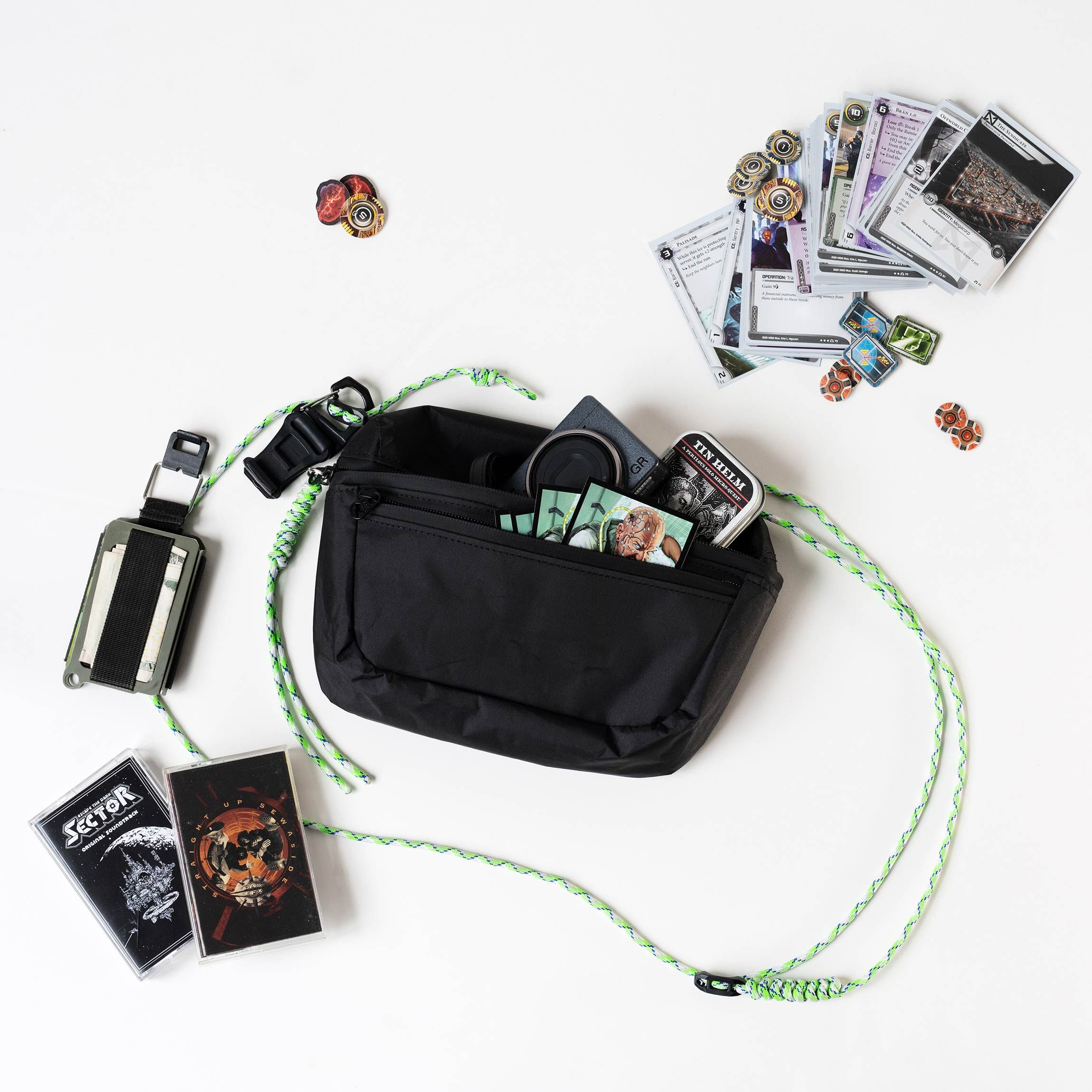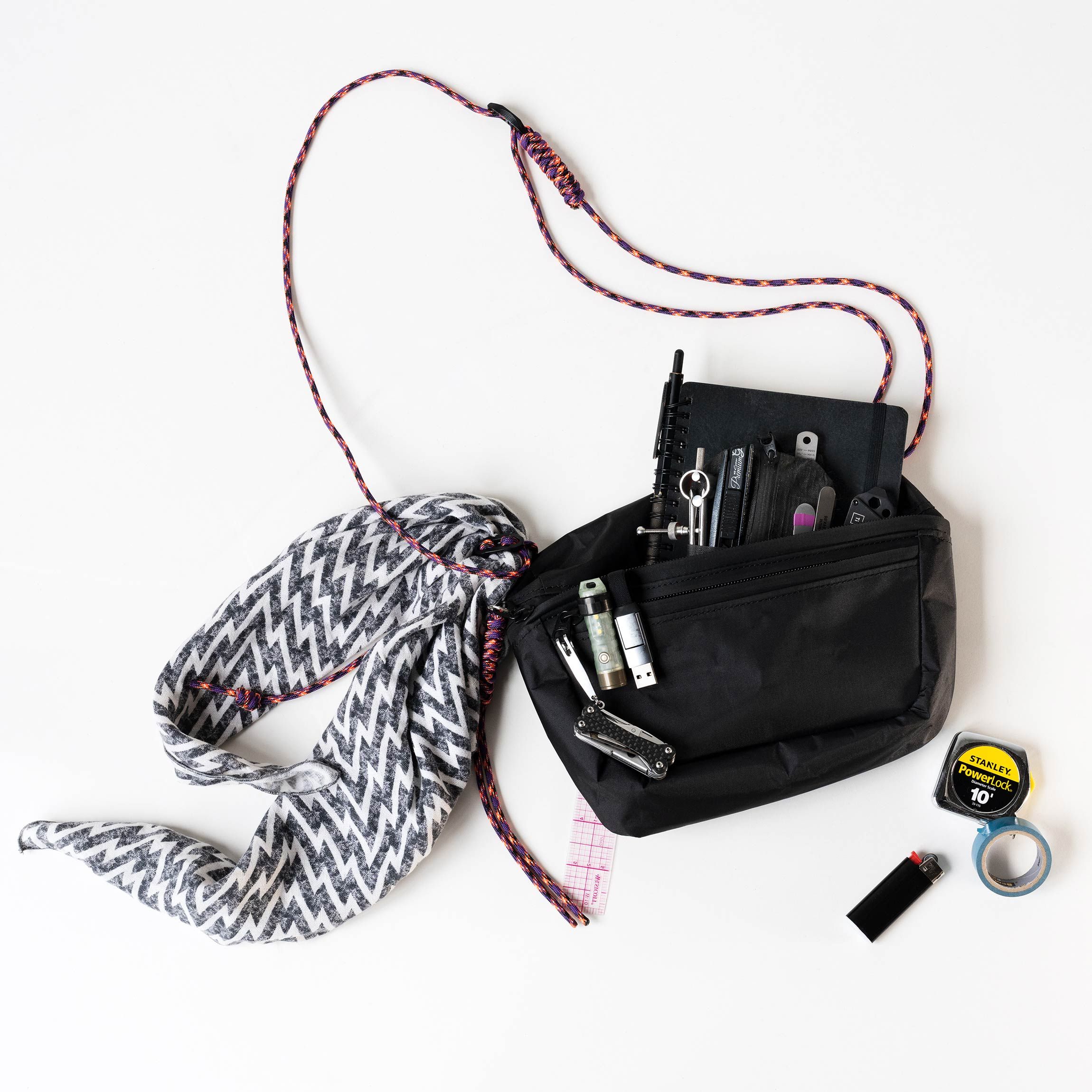 A small bag experiment that carries a surprising amount. Two zip pockets, one internal divider and one slip pocket for fast access. Adjustable paracord …