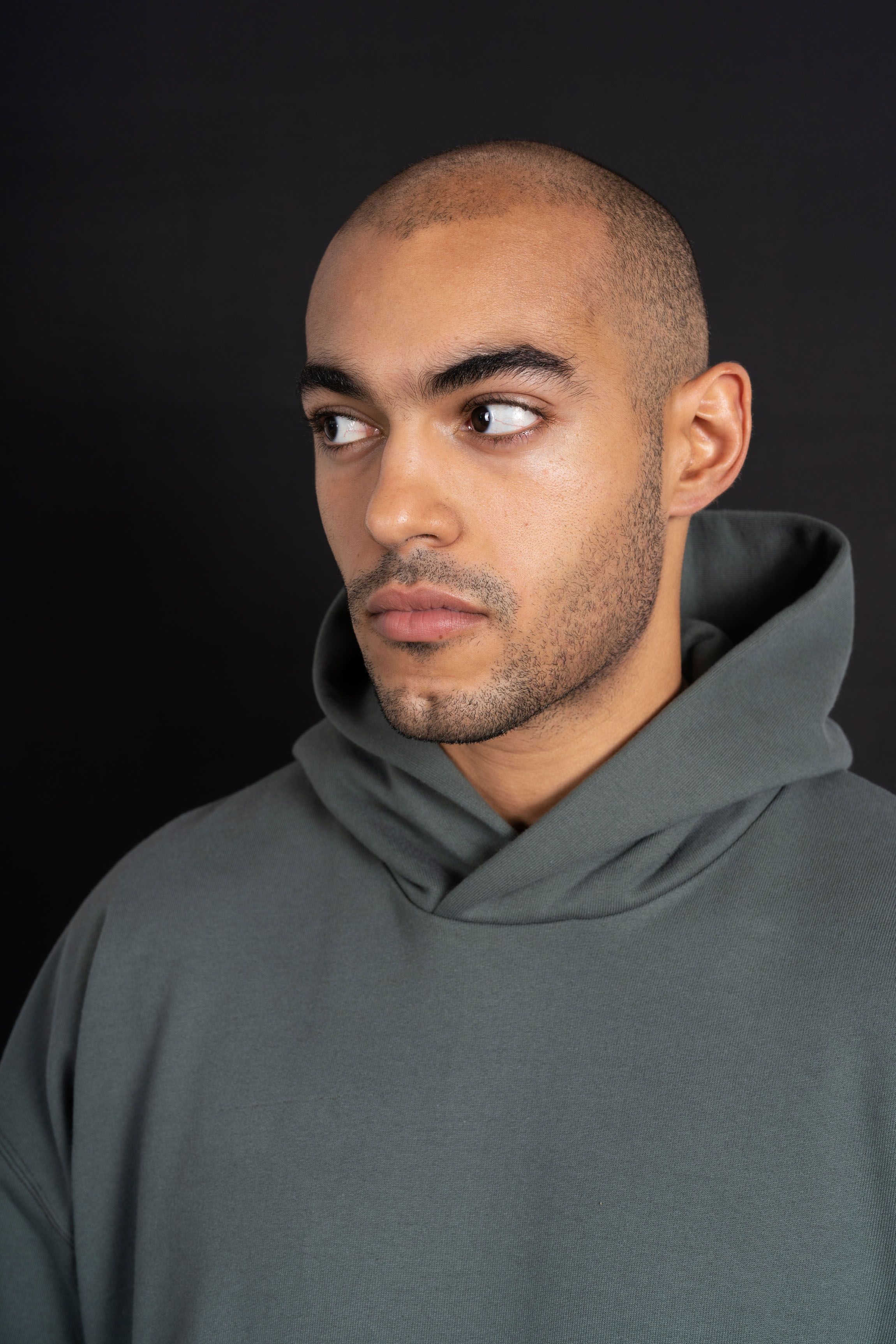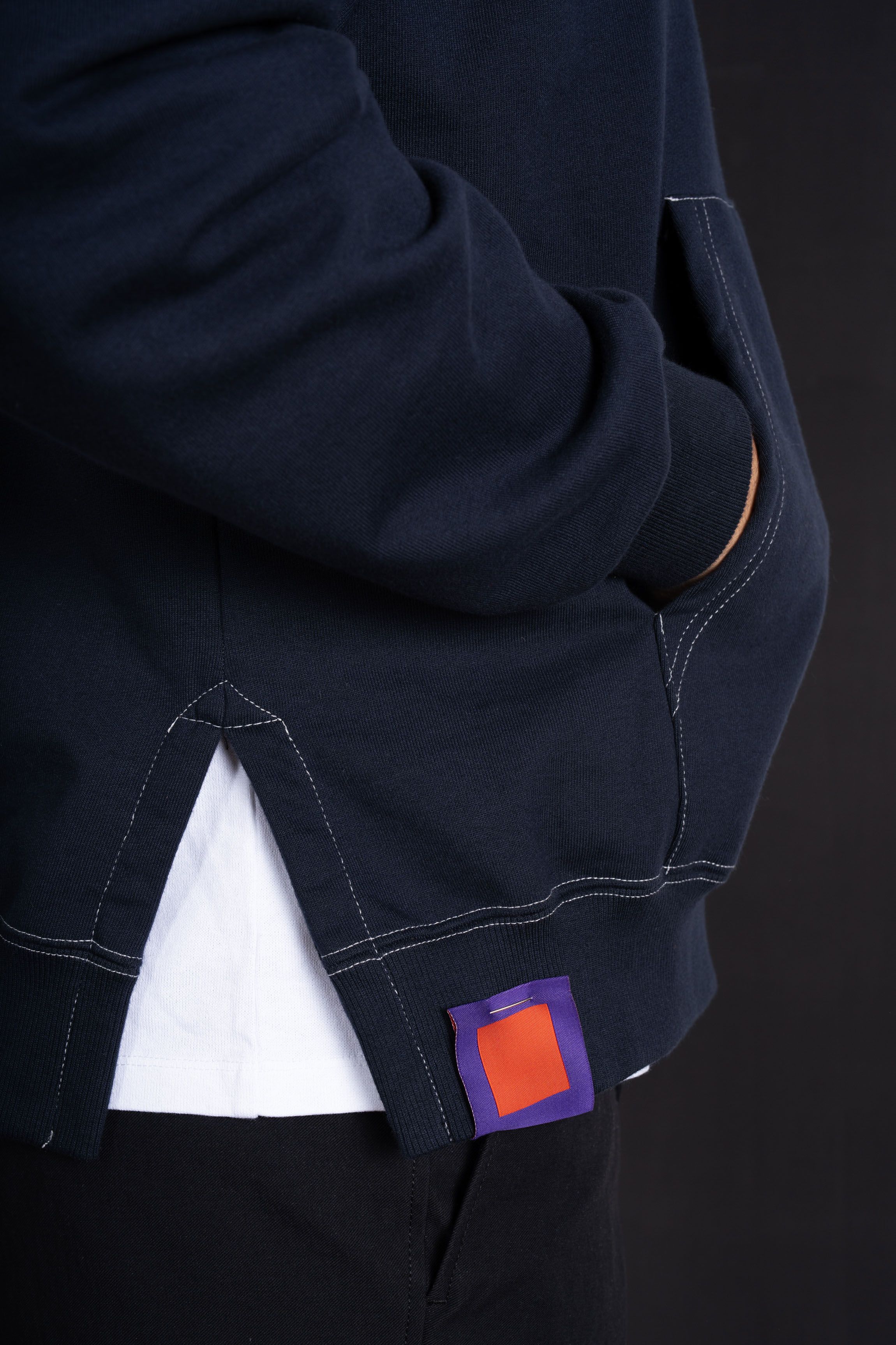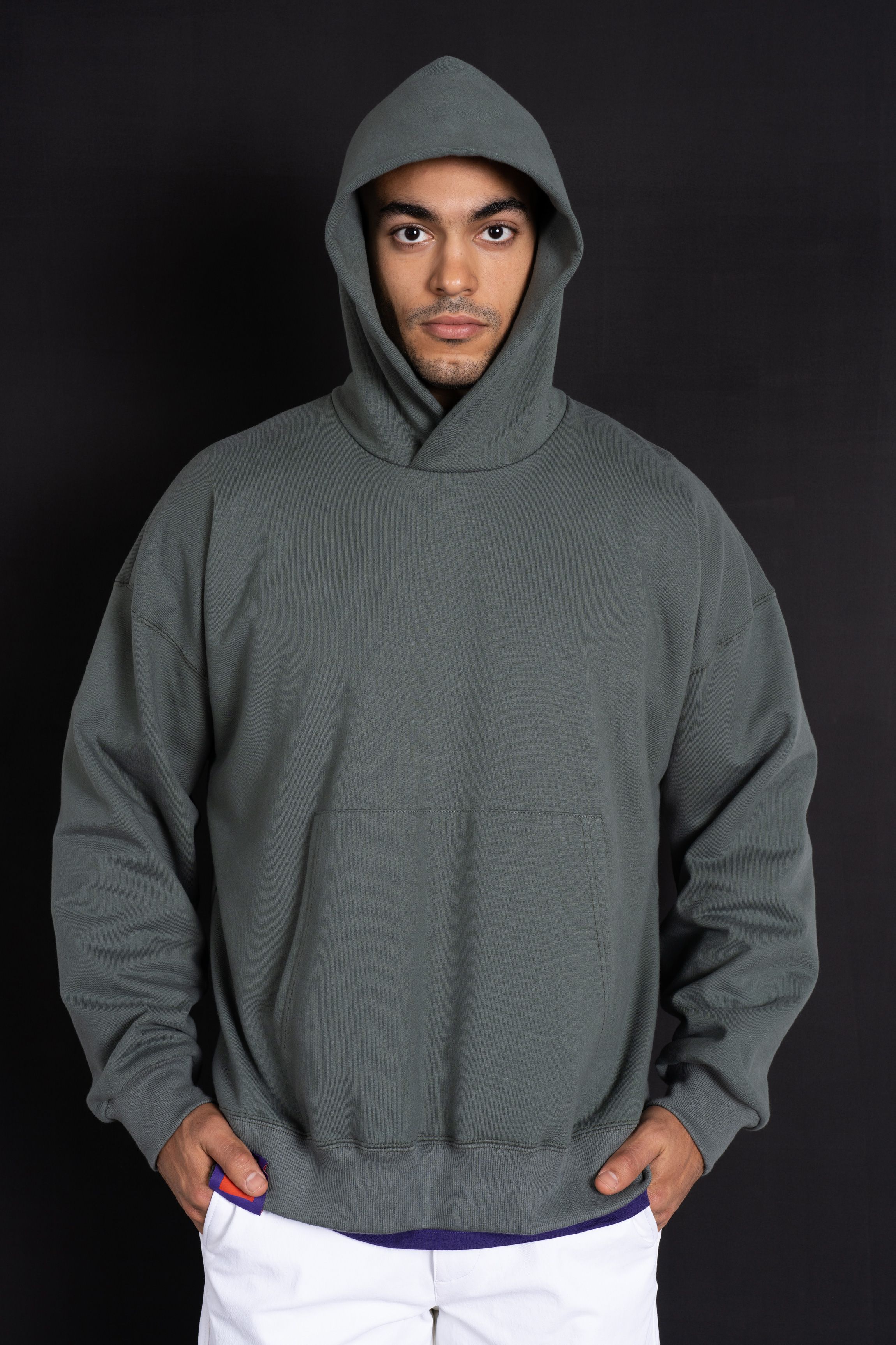 A Willie Norris hoodie experiment. Side slits, a big kangaroo pocket and a one-piece darted hood, in the emotional armor of Hard/co Merino. Dense cotton…