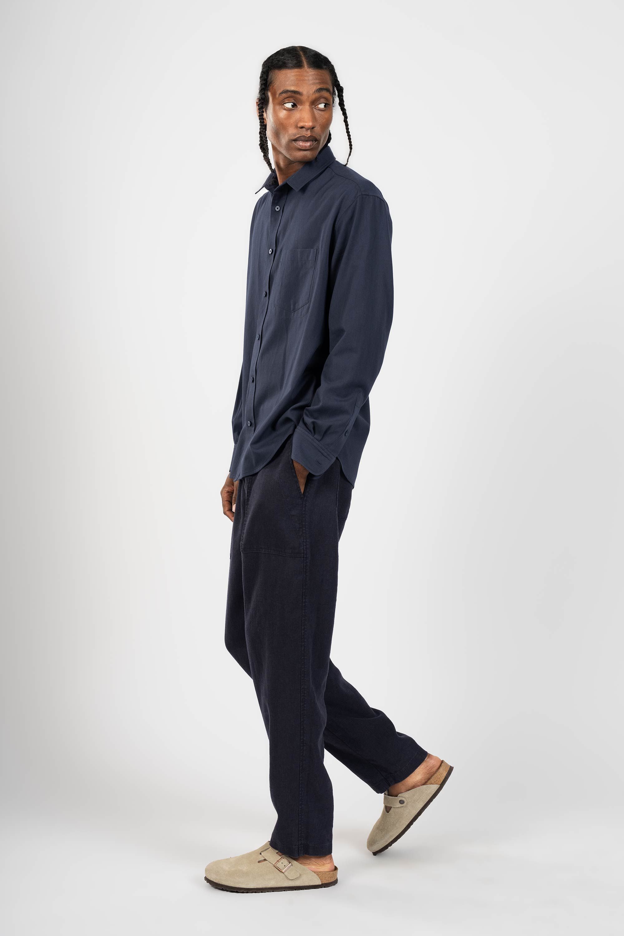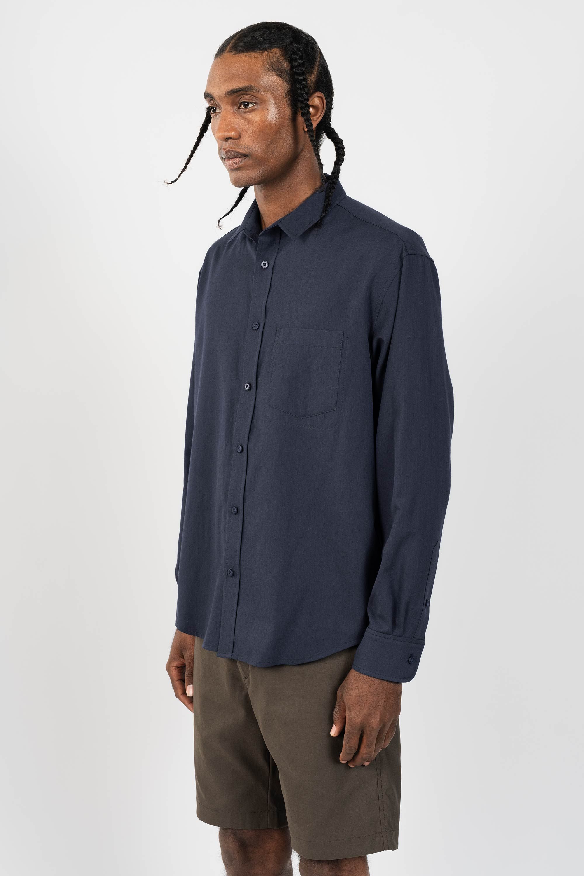 An intimately blended shirt experiment. The classic Boxford shirt cut, done up in a beautiful merino/cotton fabric from Albini. A small collar, broad bo…