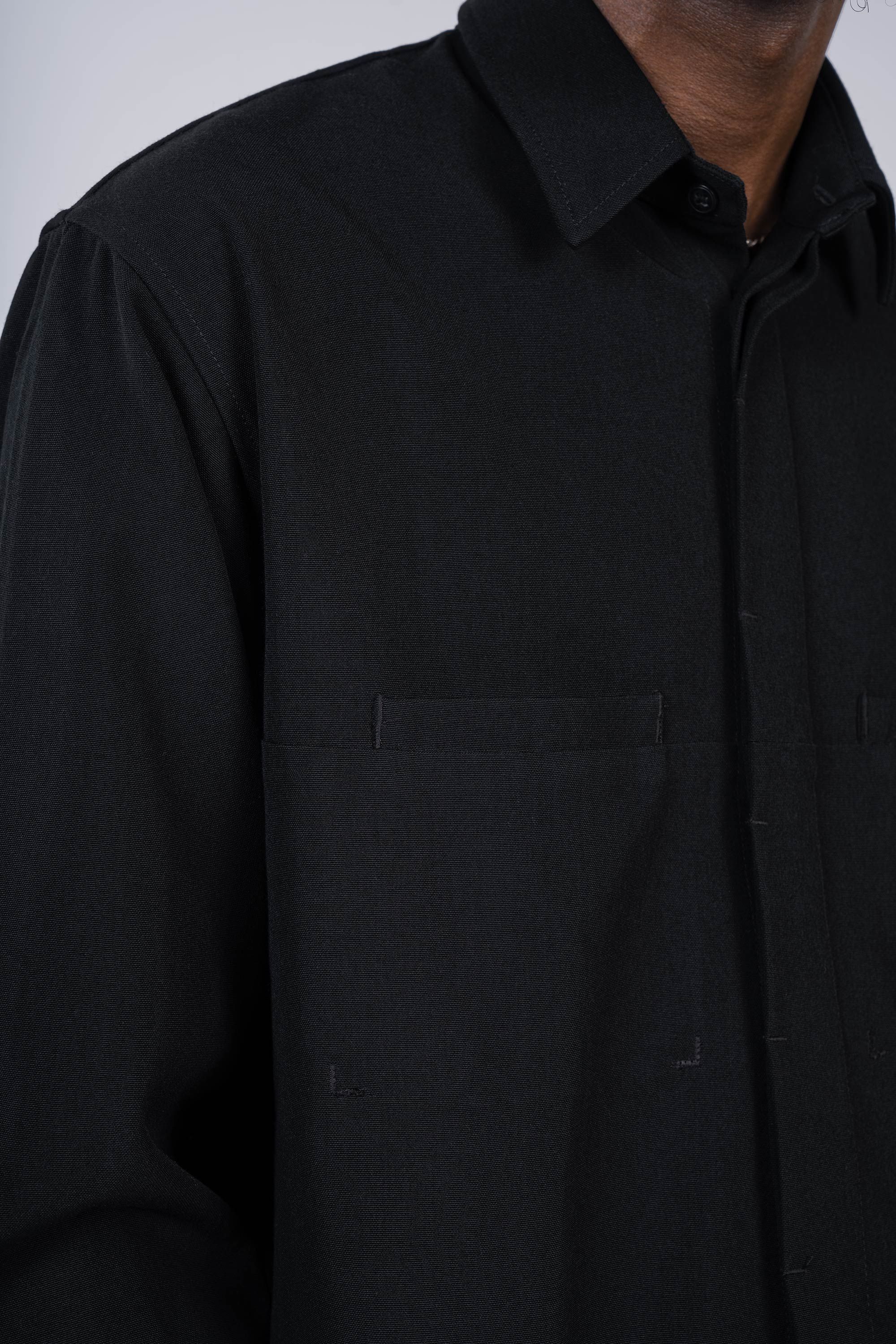 A heavyweight overshirt experiment in the rugged elegance of Nylistic Merino Canvas. Features two low-slung and set-in chest pockets and a hidden placke…