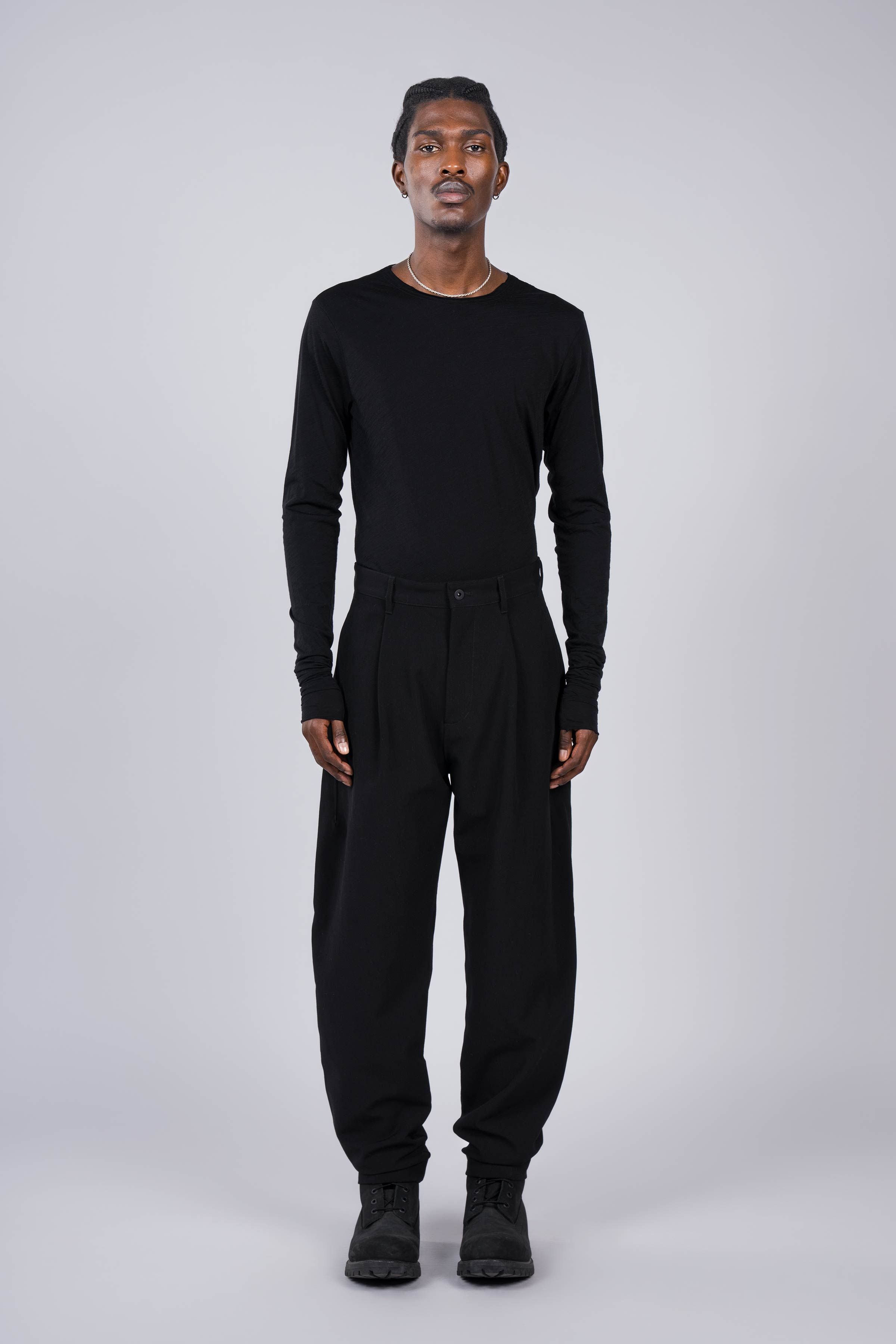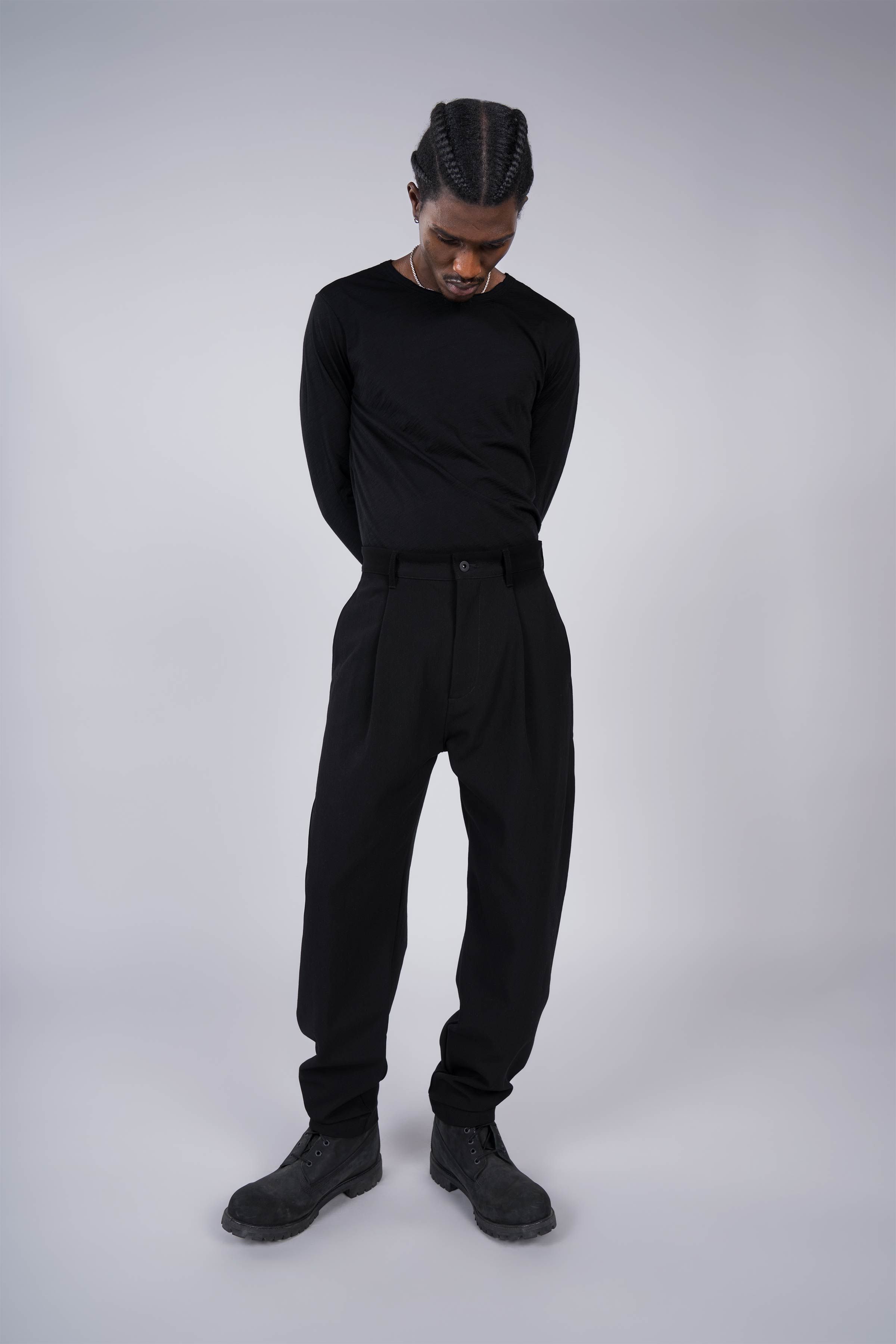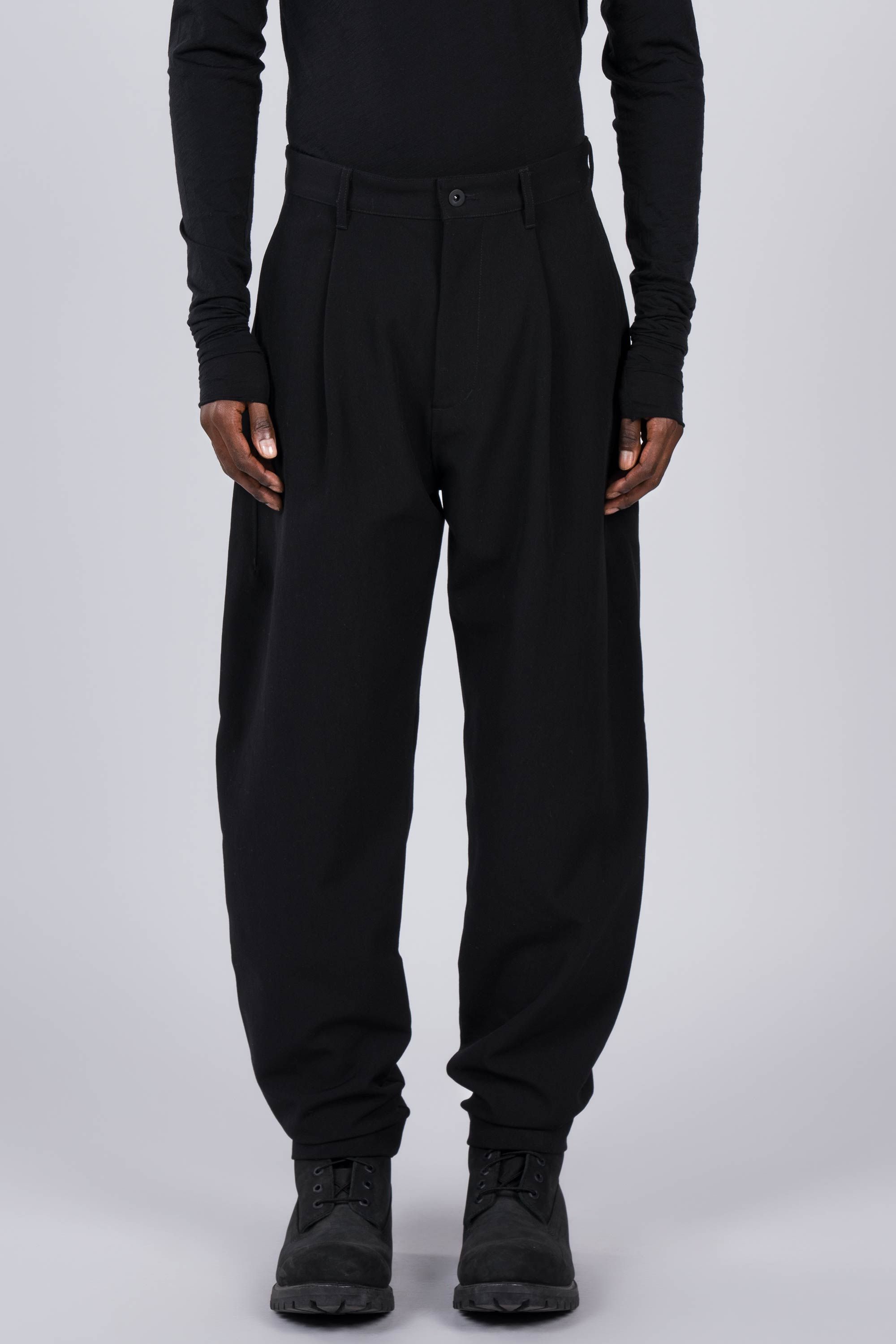 An experimental iteration on the high-waisted and pleated Highdarts form. The top block is big and roomy, the legs are tapered, but longer and a touch w…
