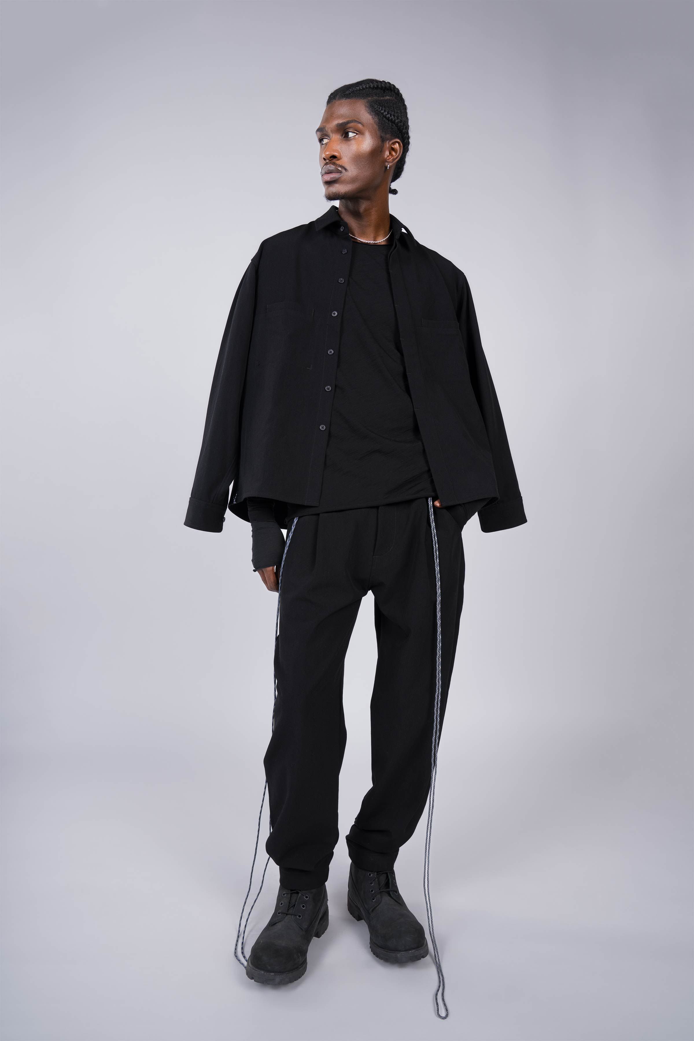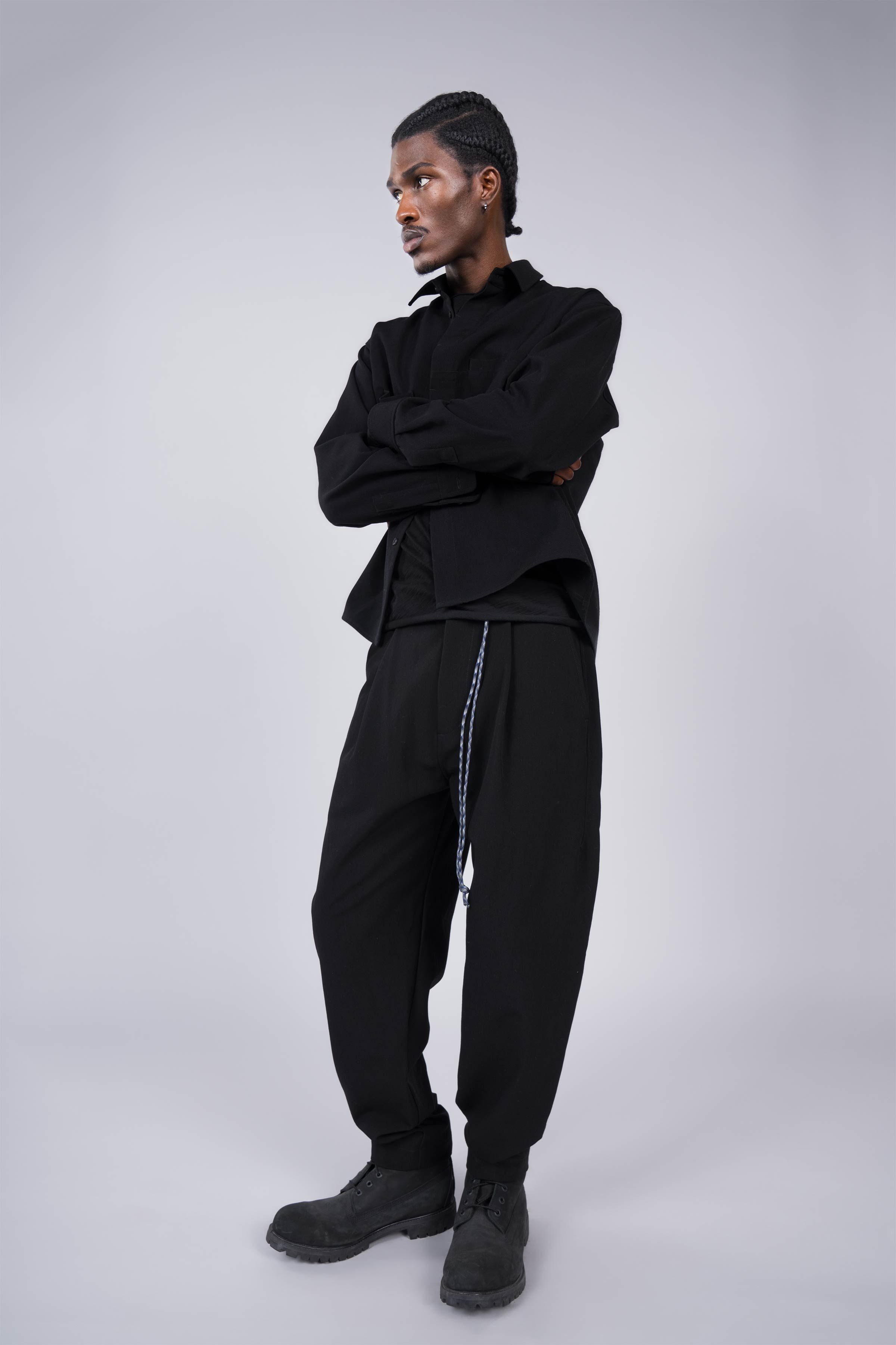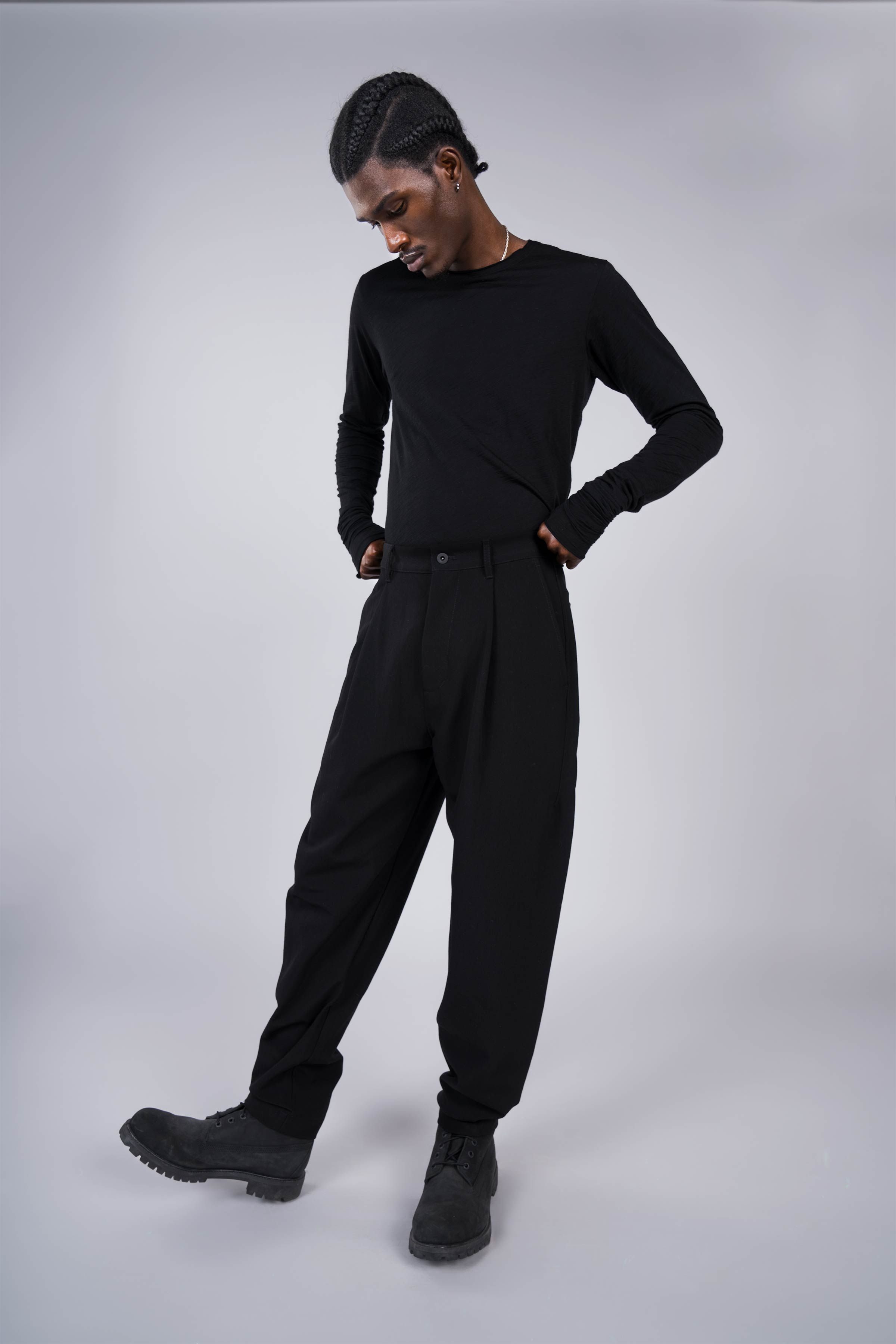 An experimental iteration on the high-waisted and pleated Highdarts form. The top block is big and roomy, the legs are tapered, but longer and a touch w…