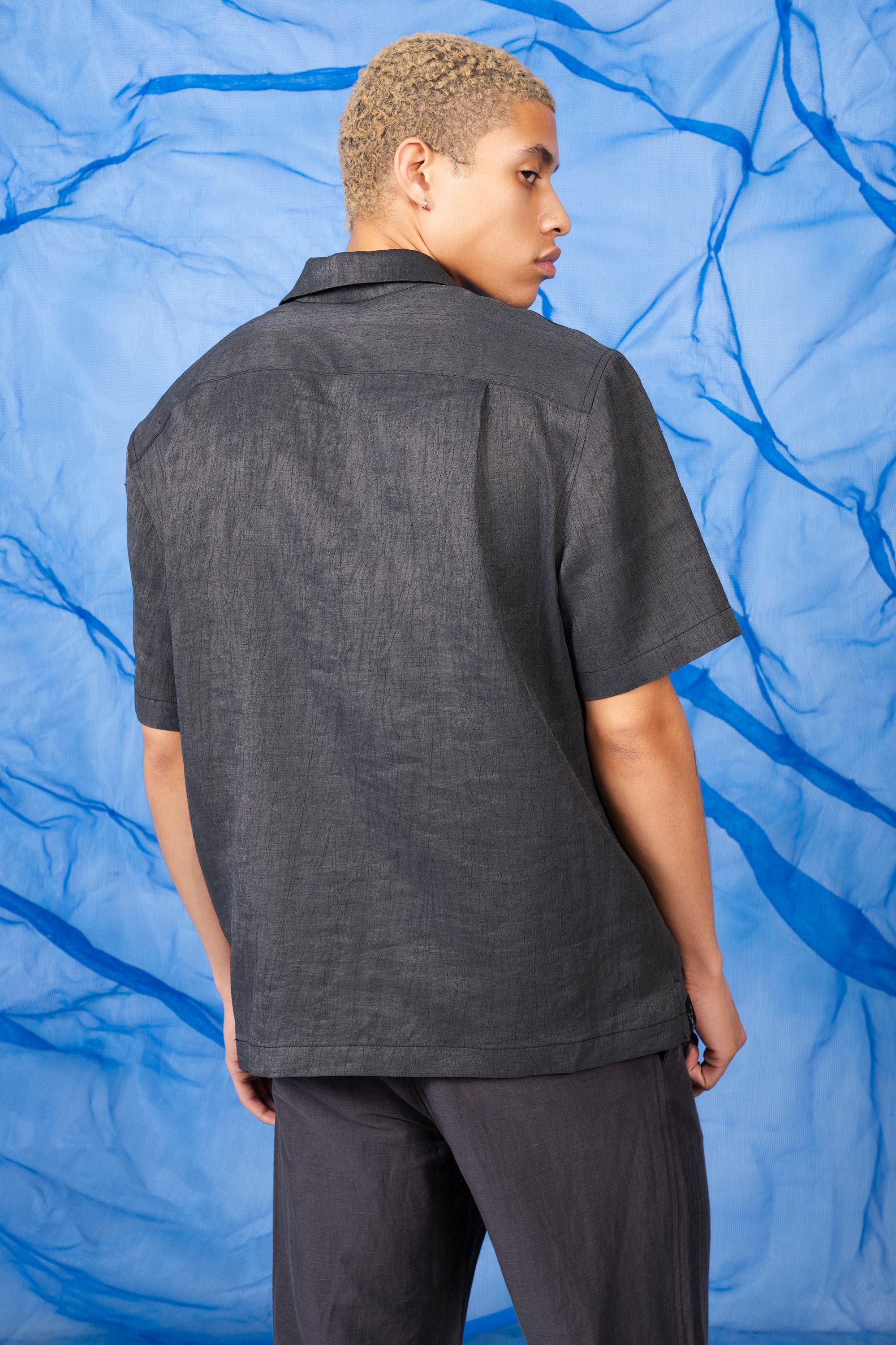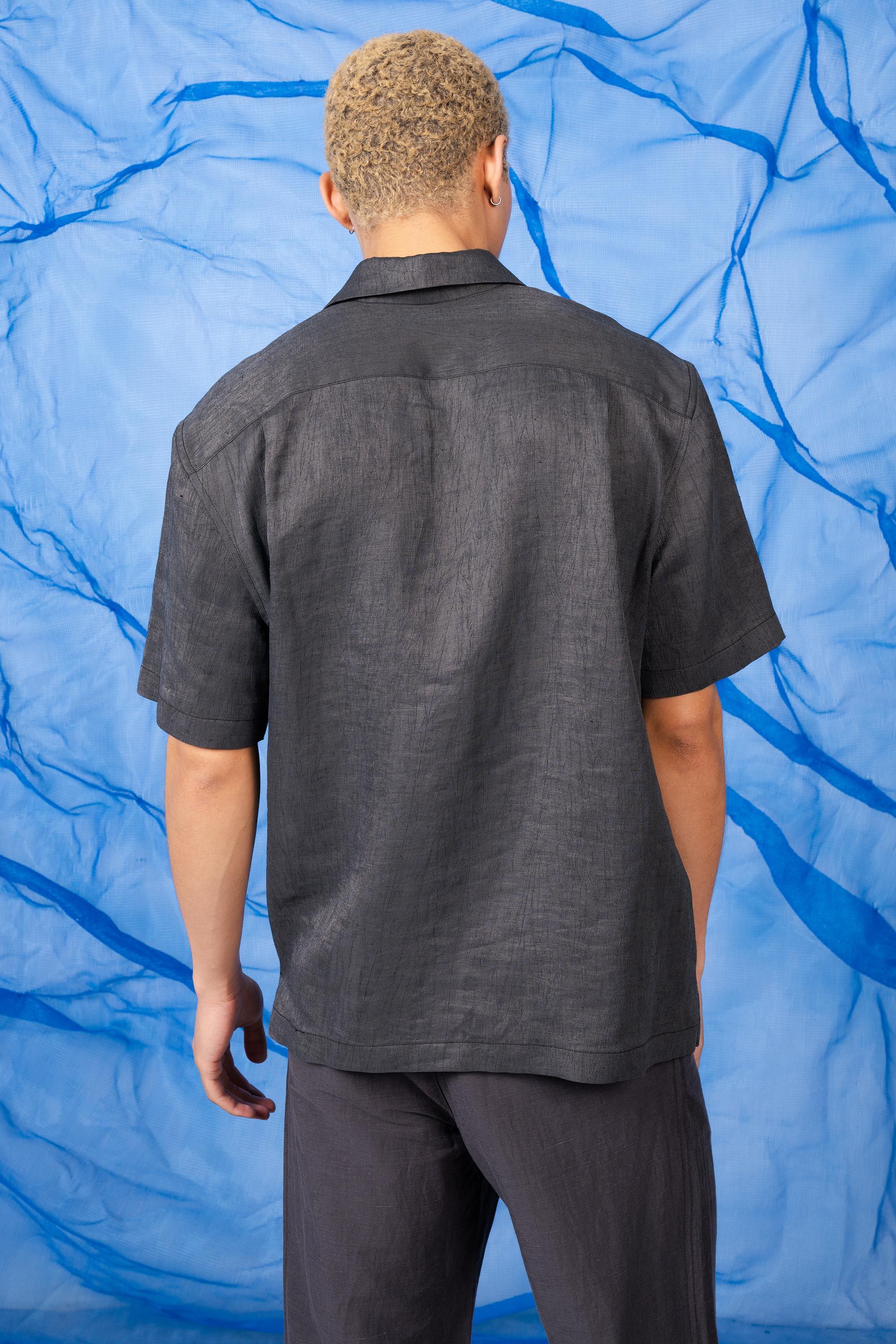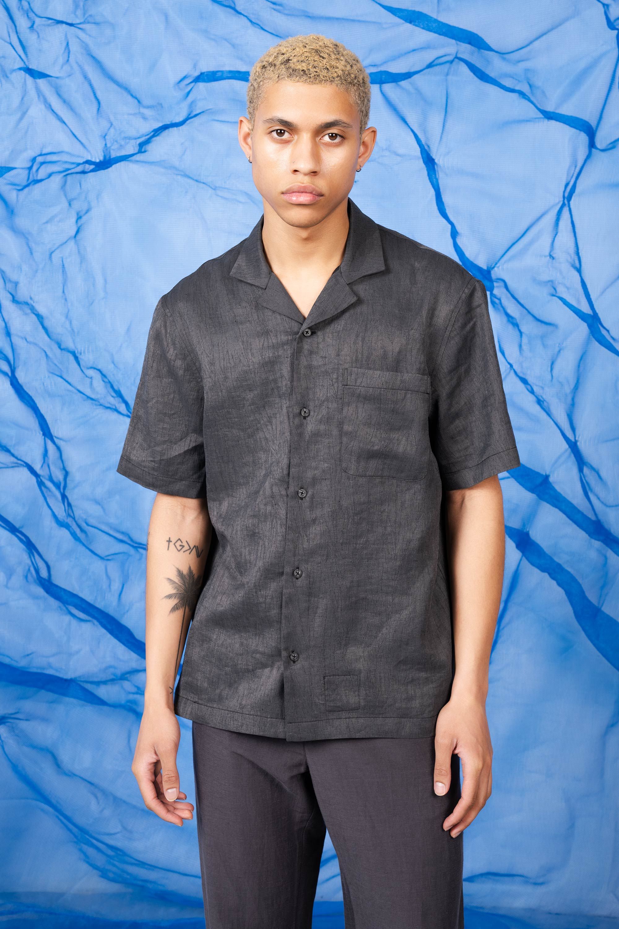 A Hollywood wrinkle experiment in a camp collar form. A classic summer vibes short sleeve with a single pocket. Done in a lightweight and crisp linen-ri…