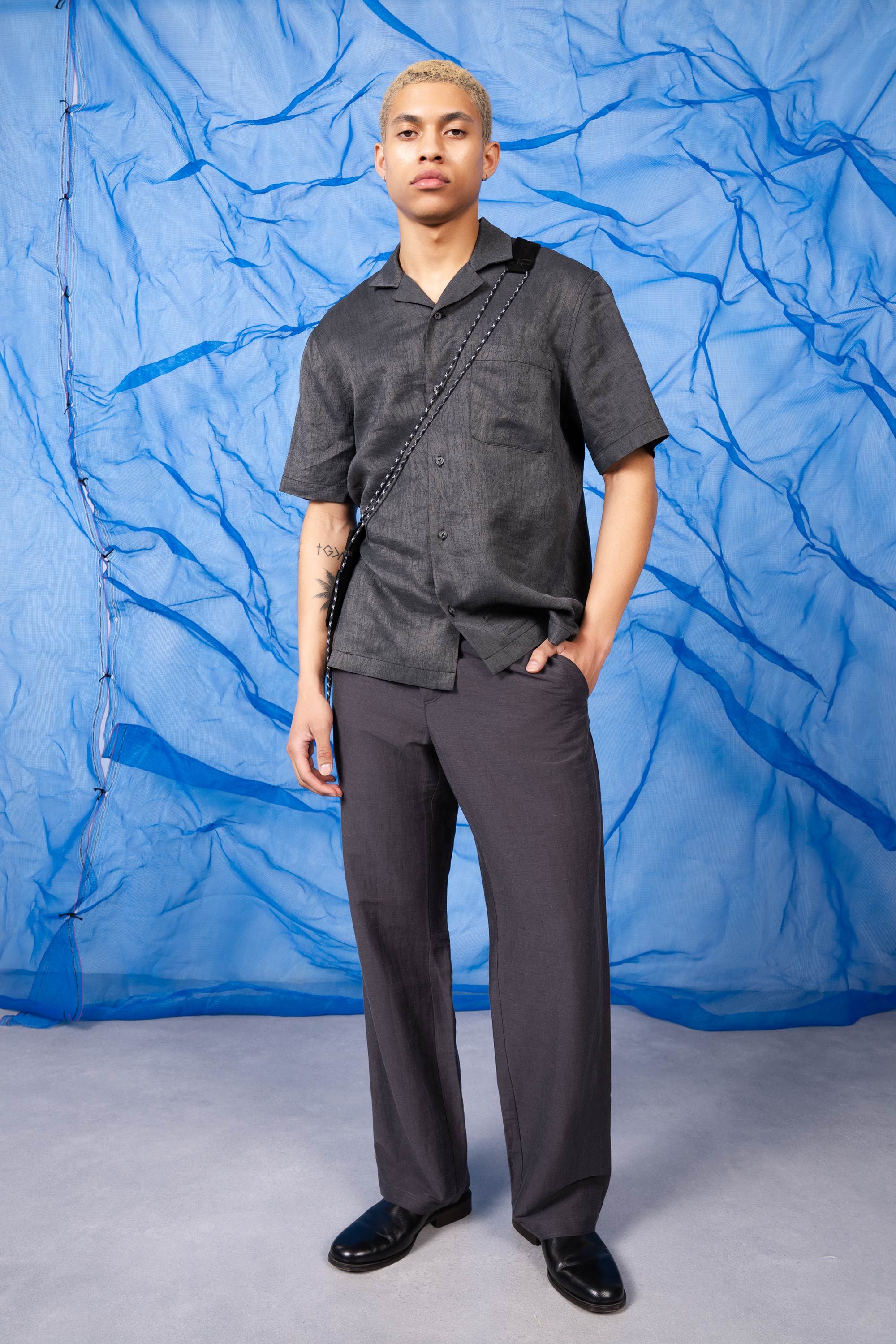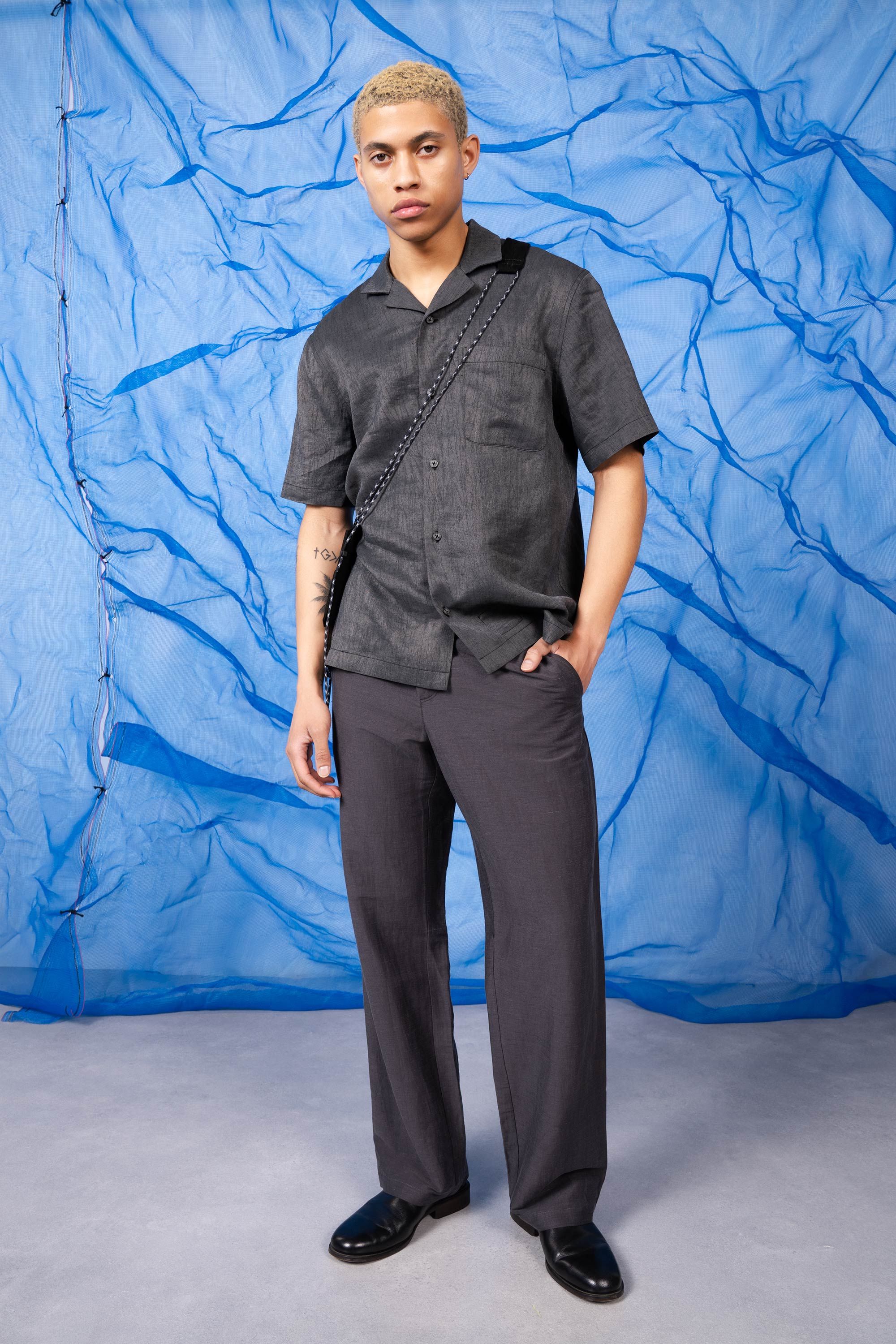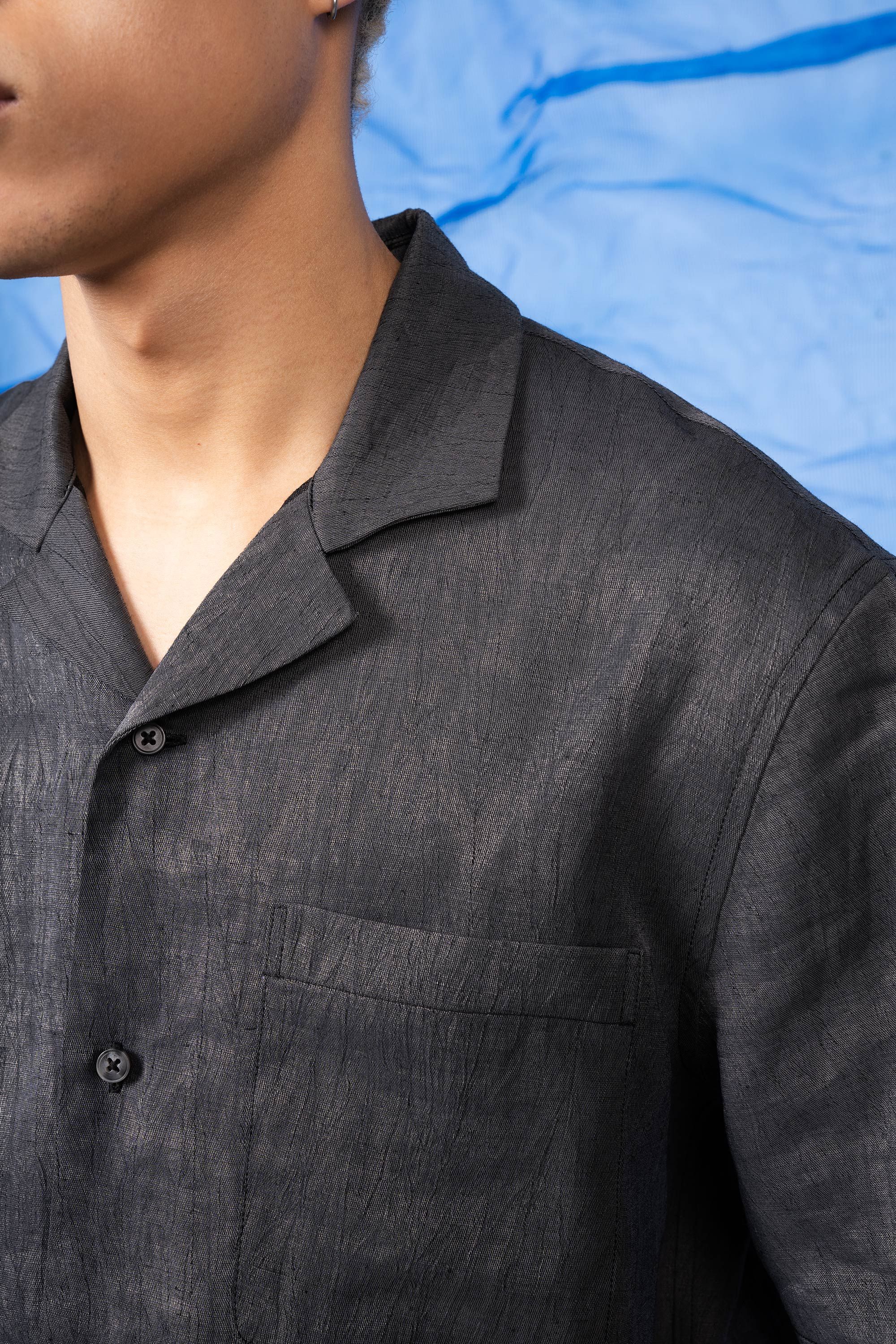 A Hollywood wrinkle experiment in a camp collar form. A classic summer vibes short sleeve with a single pocket. Done in a lightweight and crisp linen-ri…