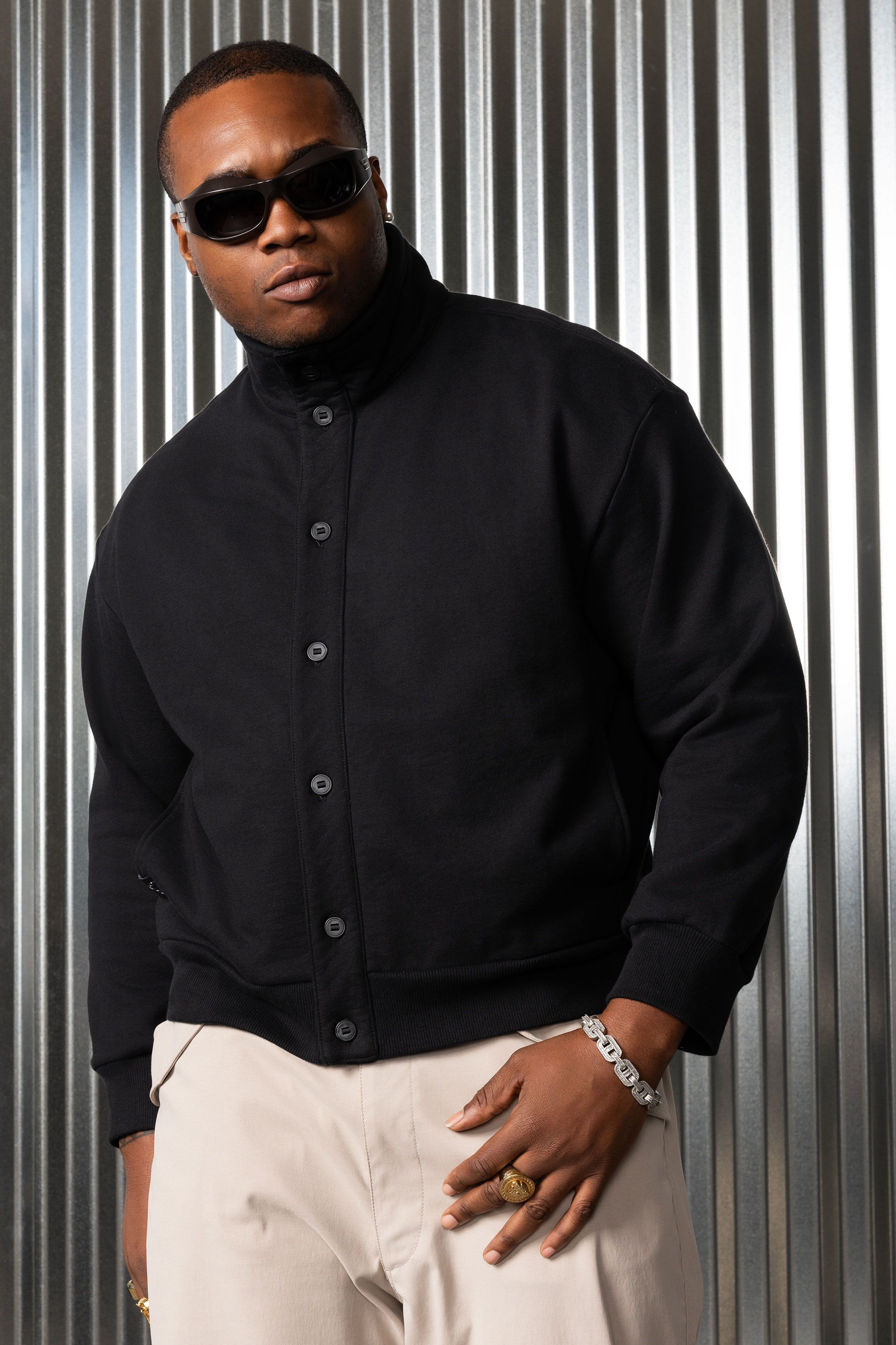A sweatshirt meets bomber meets cardigan experiment [#480] in the emotional armor of Hard/co Merino. High density cotton on the outside for serious stru…