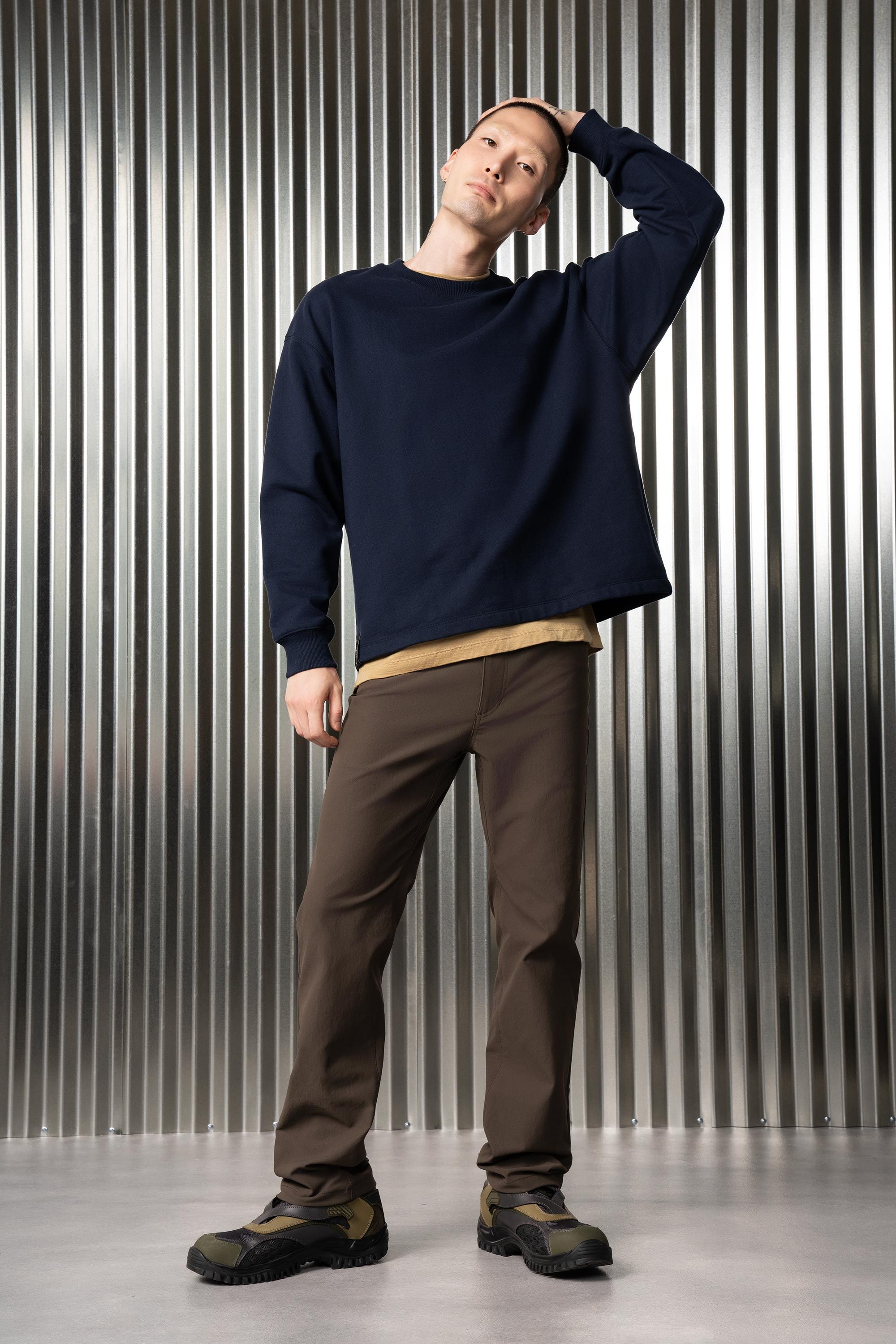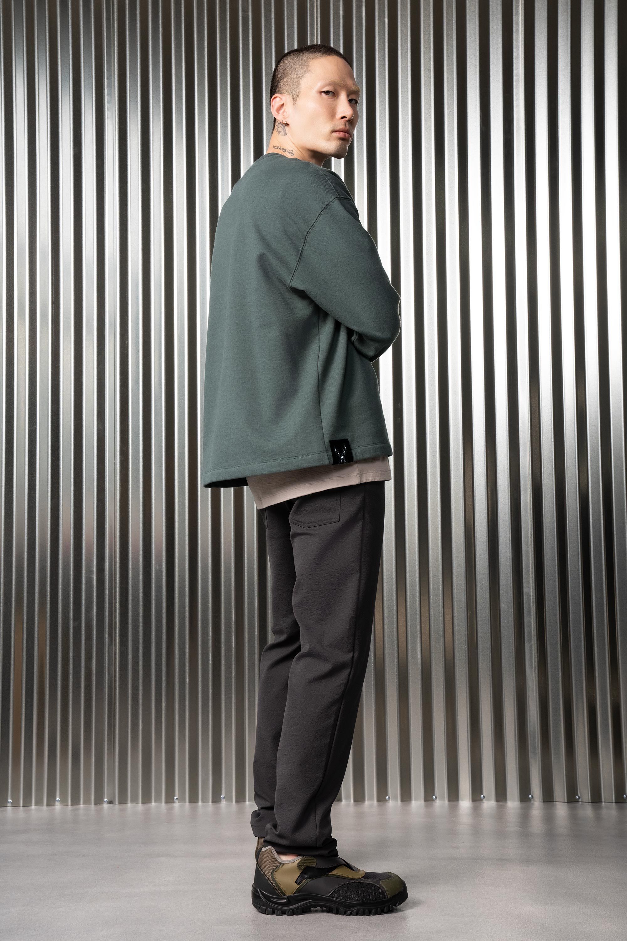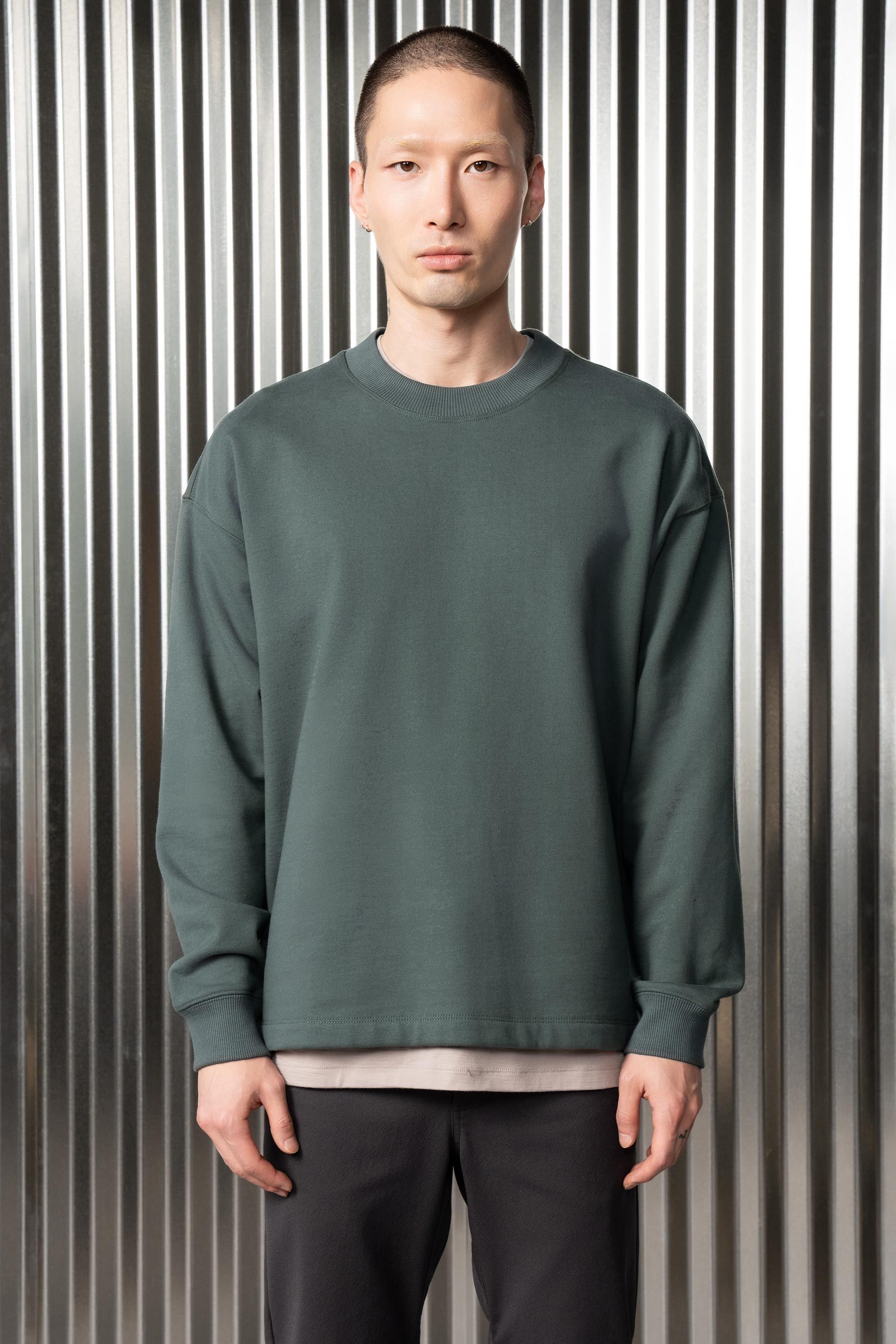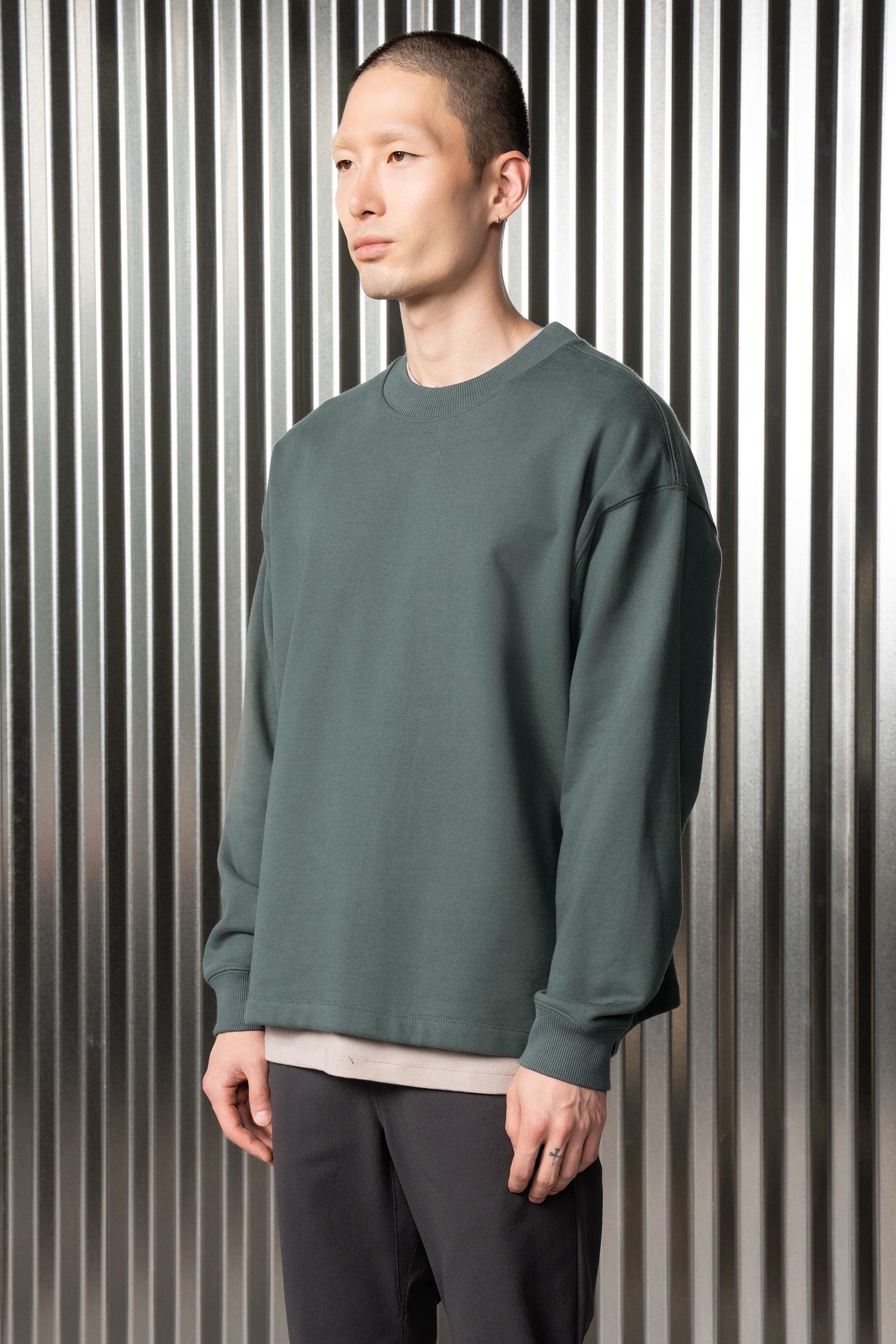 An off-the-shoulder crewneck sweatshirt experiment [#460] in the emotional armor of Hard/co Merino. High density cotton on the outside for serious struc…