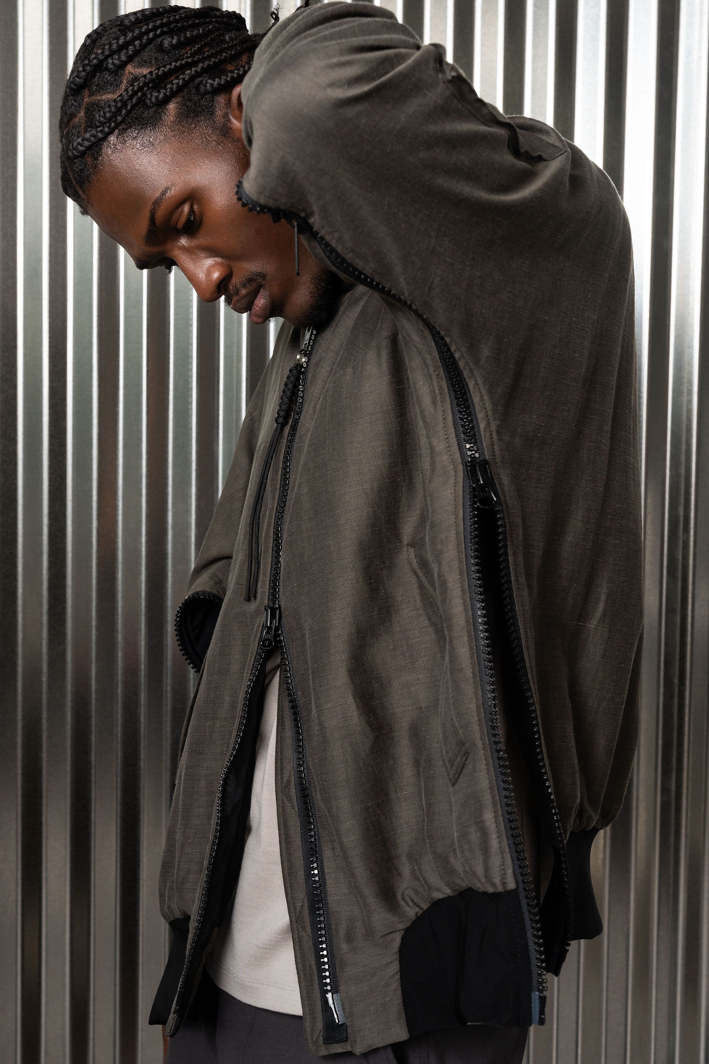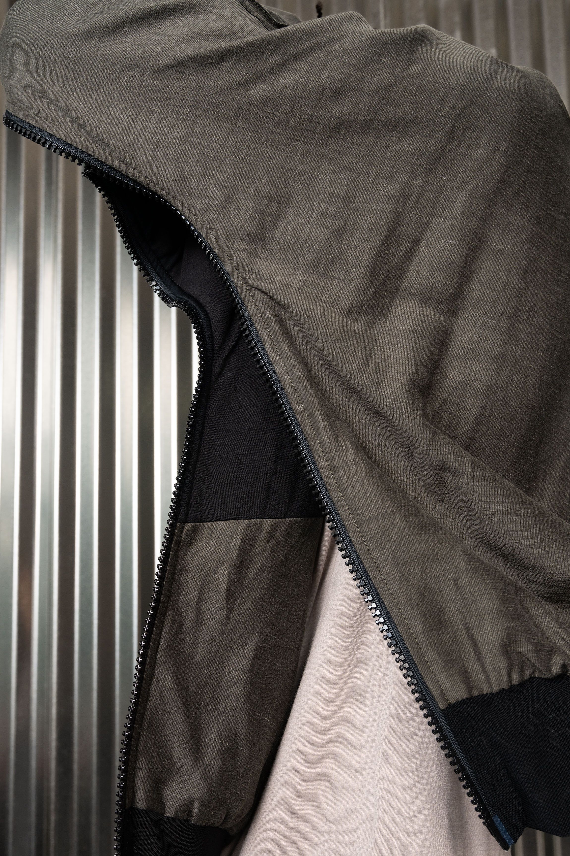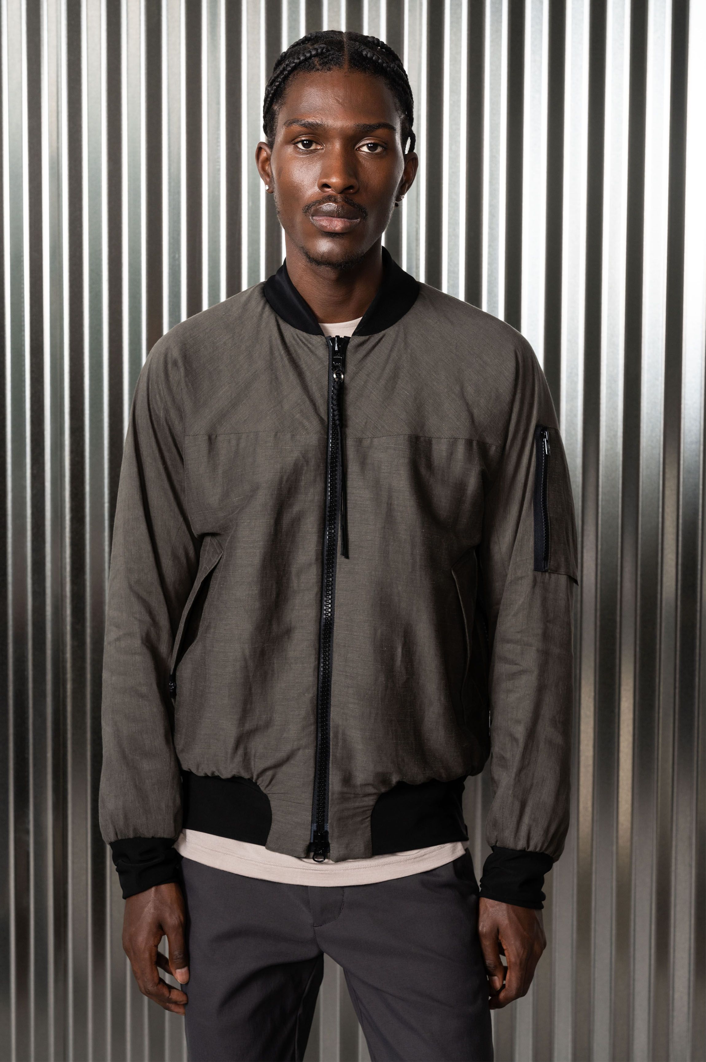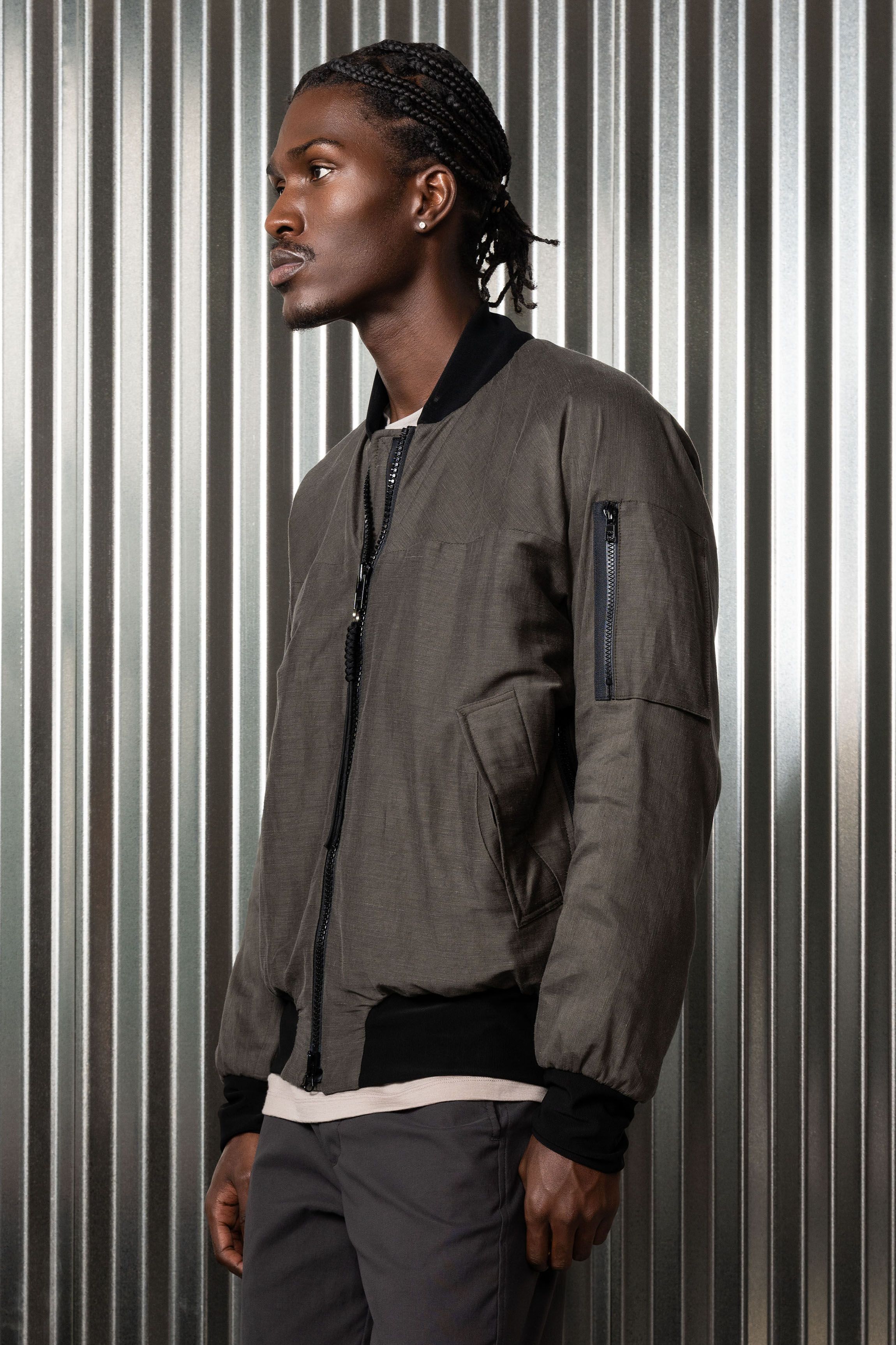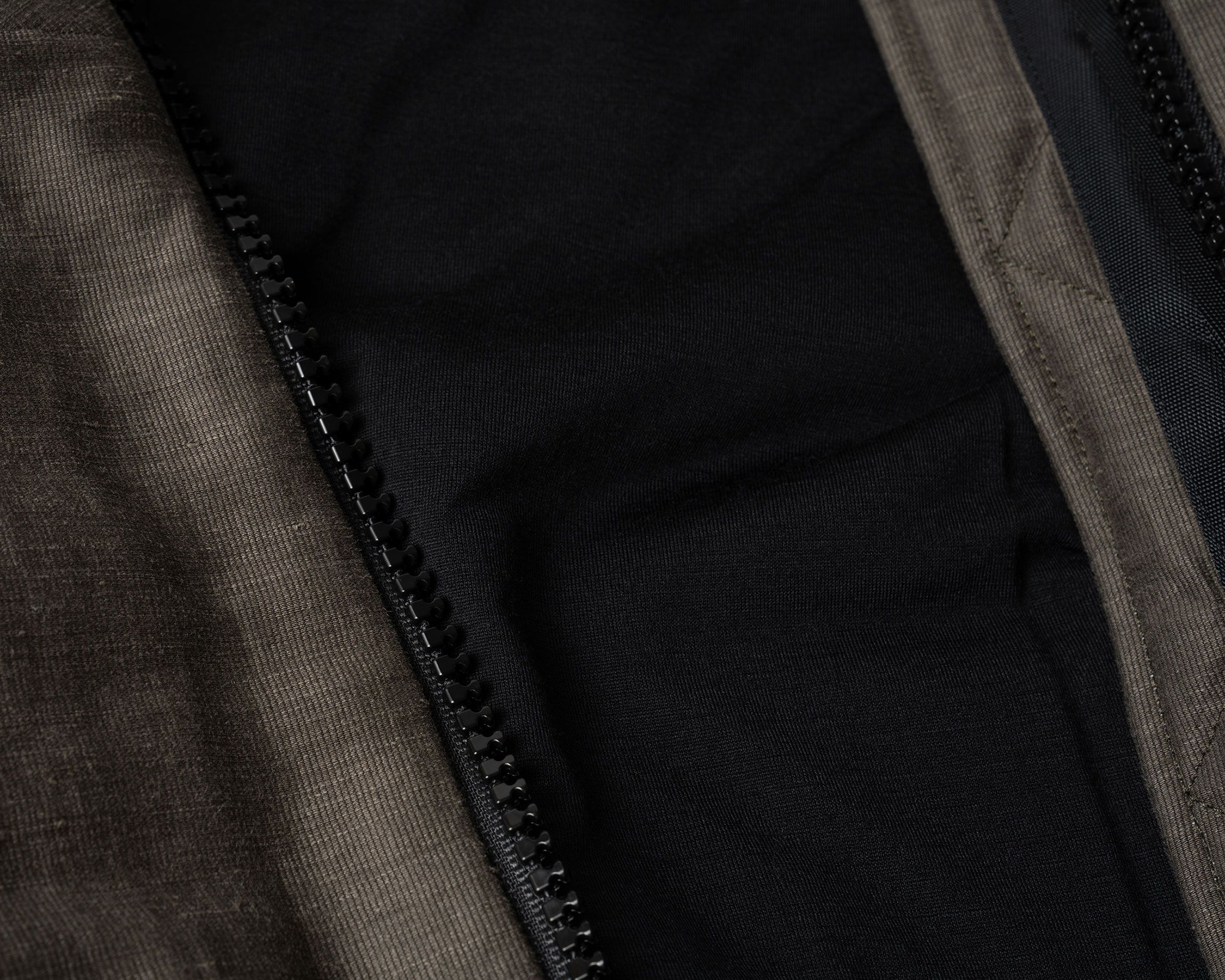 Extremely open warmth, a breathable insulated bomber that unzips extra wide. Injected Linen on the outside, warm and breathable Alpha 120 insulation, Da…