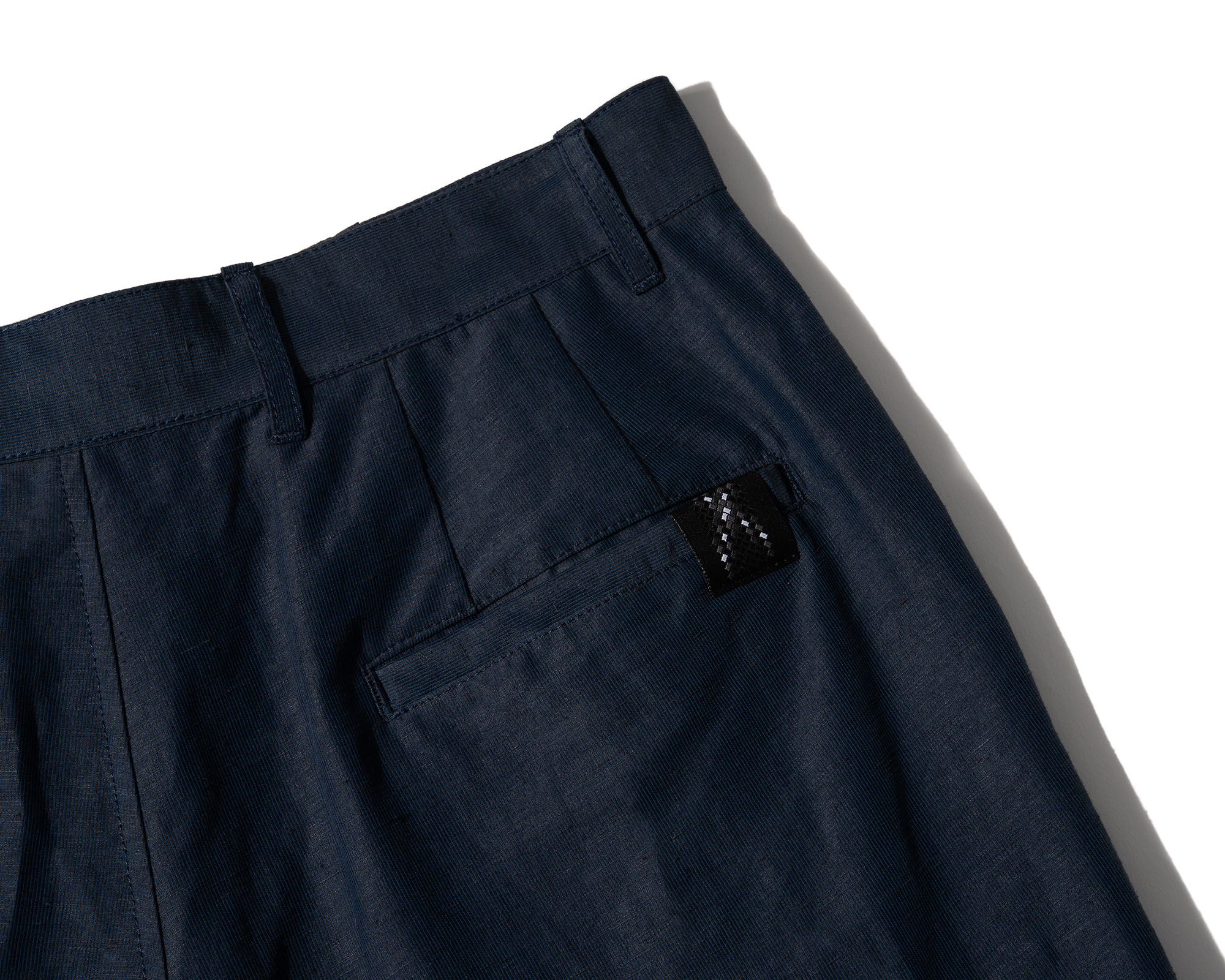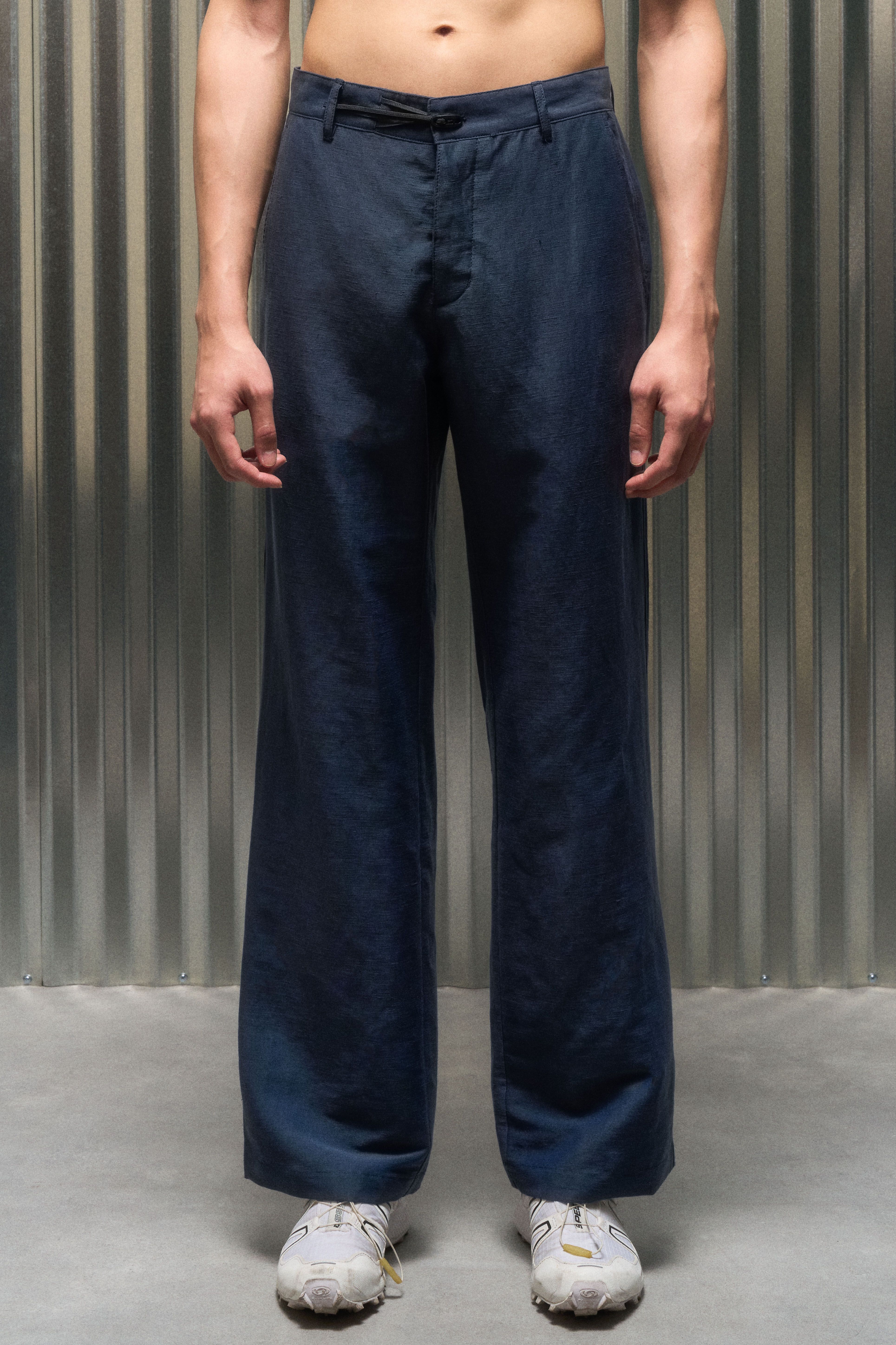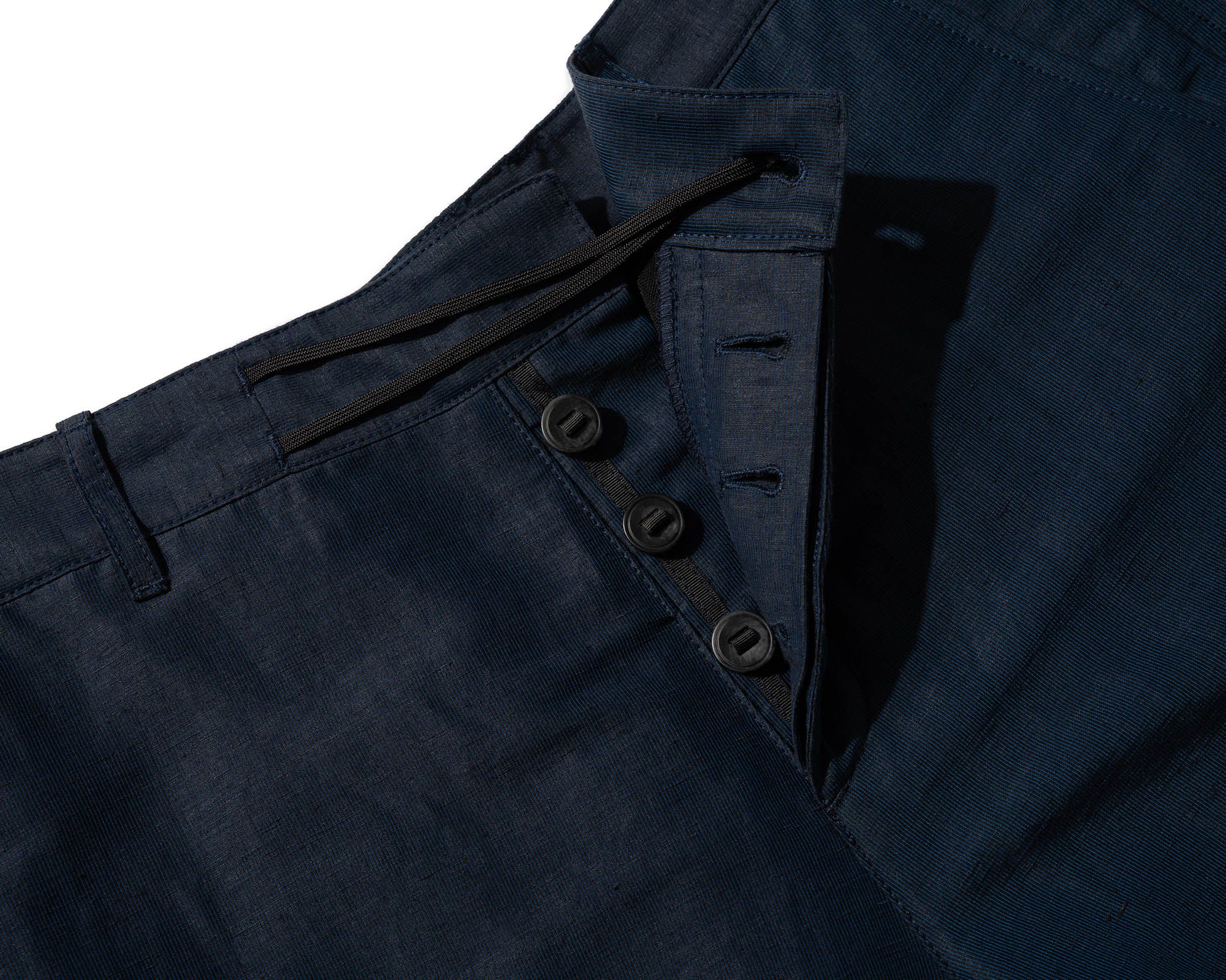 A loose cut Injected Linen pant with an adjustable waist system experiment [#533]. The open yet opaque Injected Linen makes pants that wear like shorts….