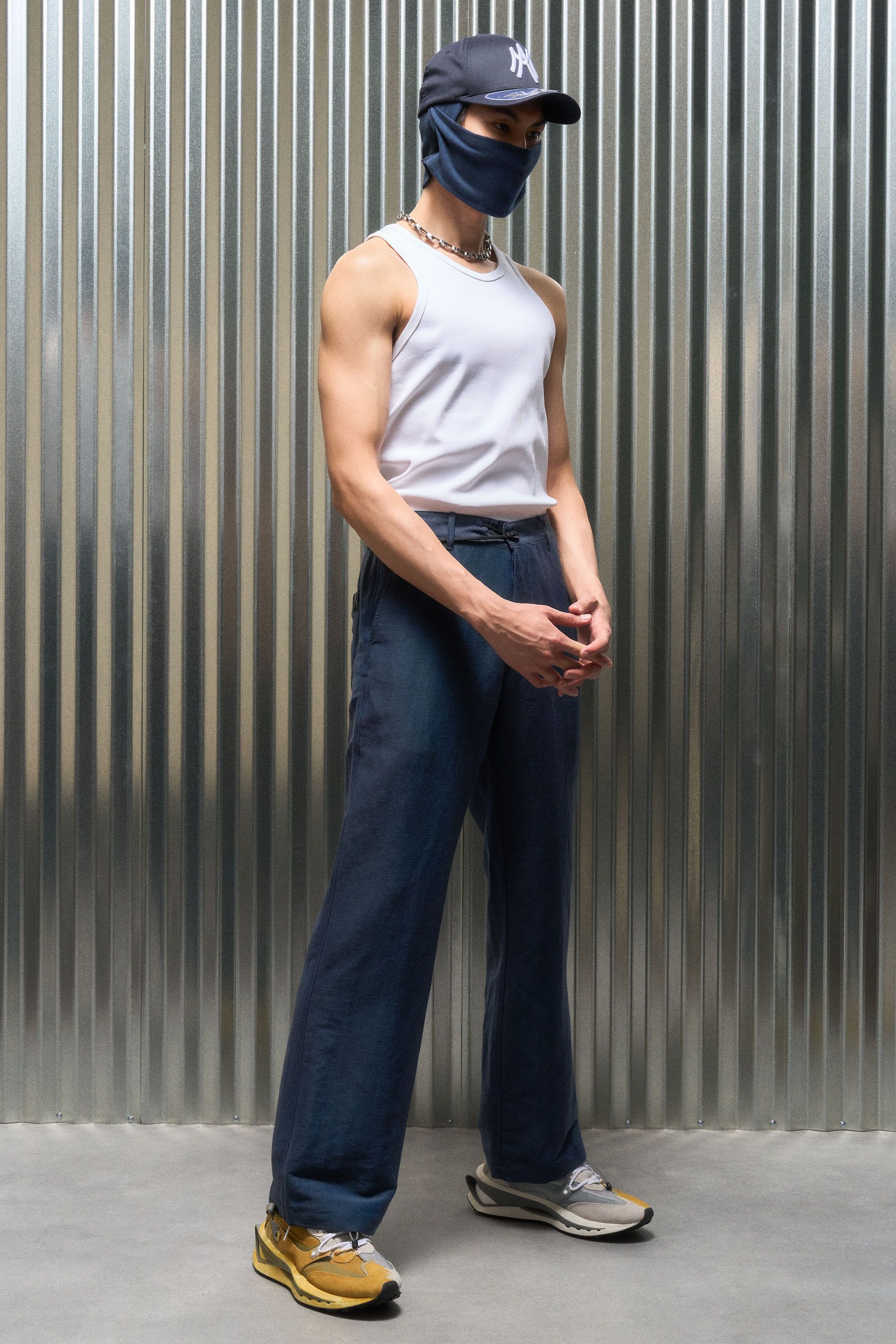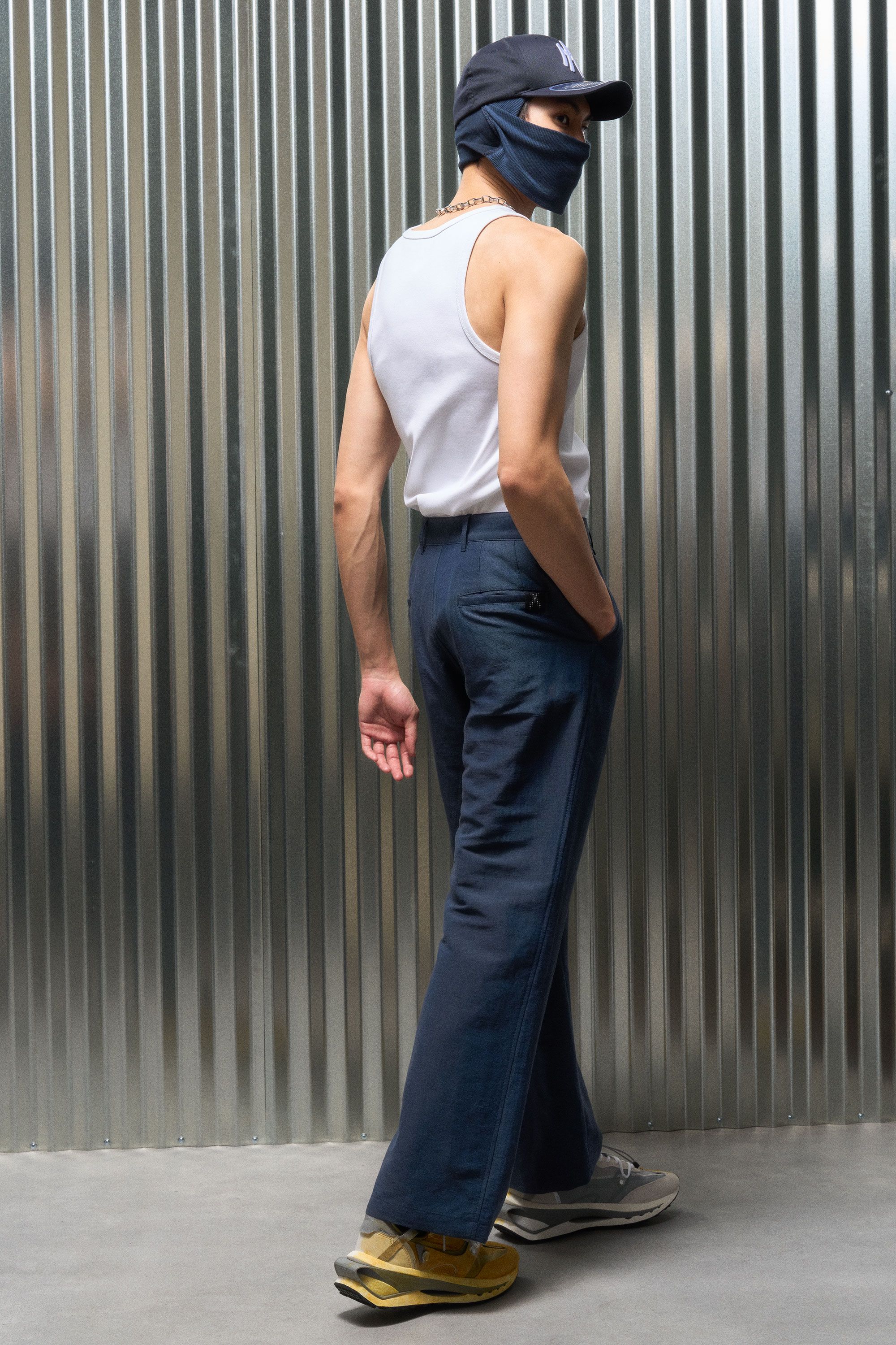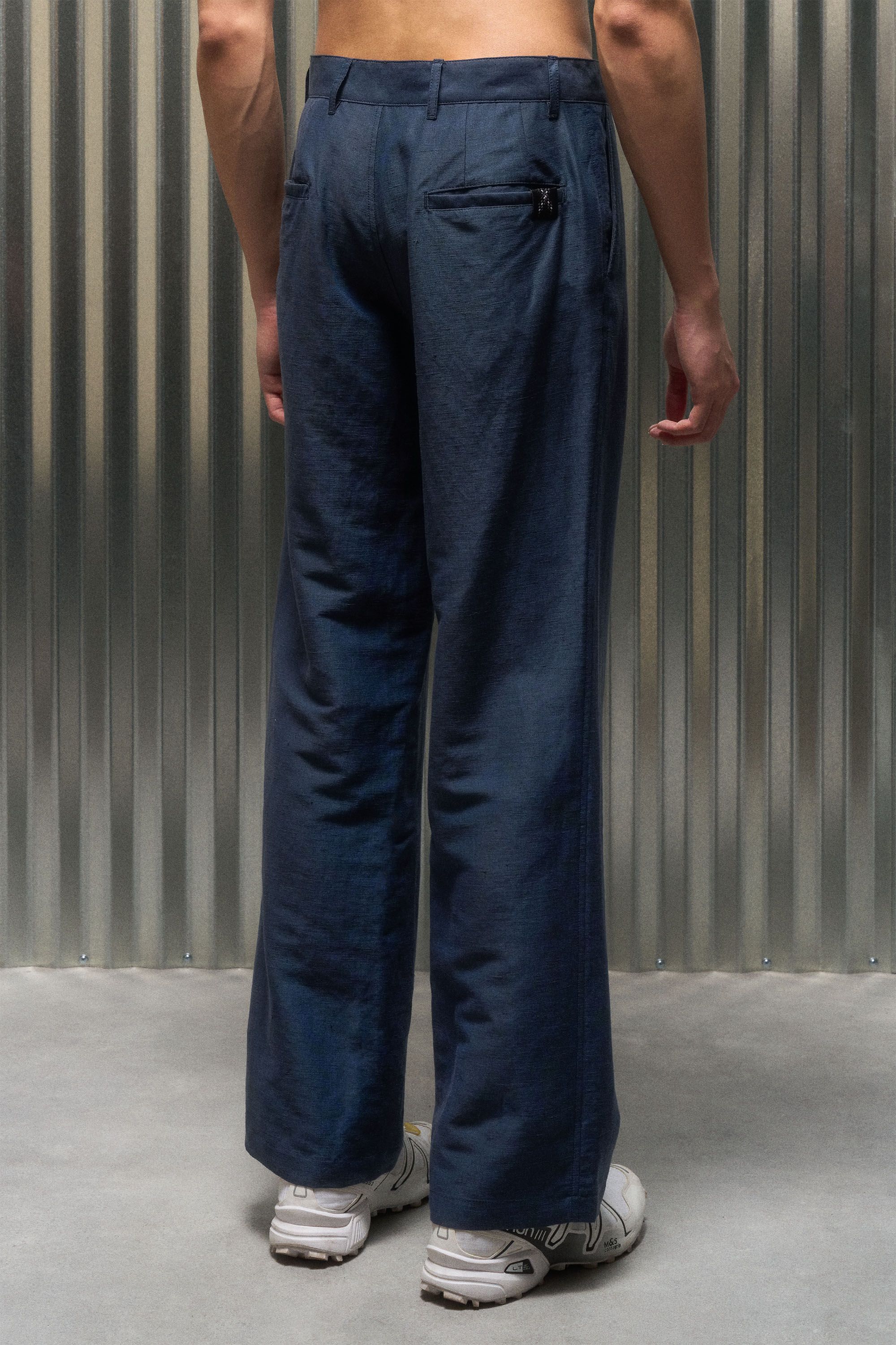 A loose cut Injected Linen pant with an adjustable waist system experiment [#533]. The open yet opaque Injected Linen makes pants that wear like shorts….