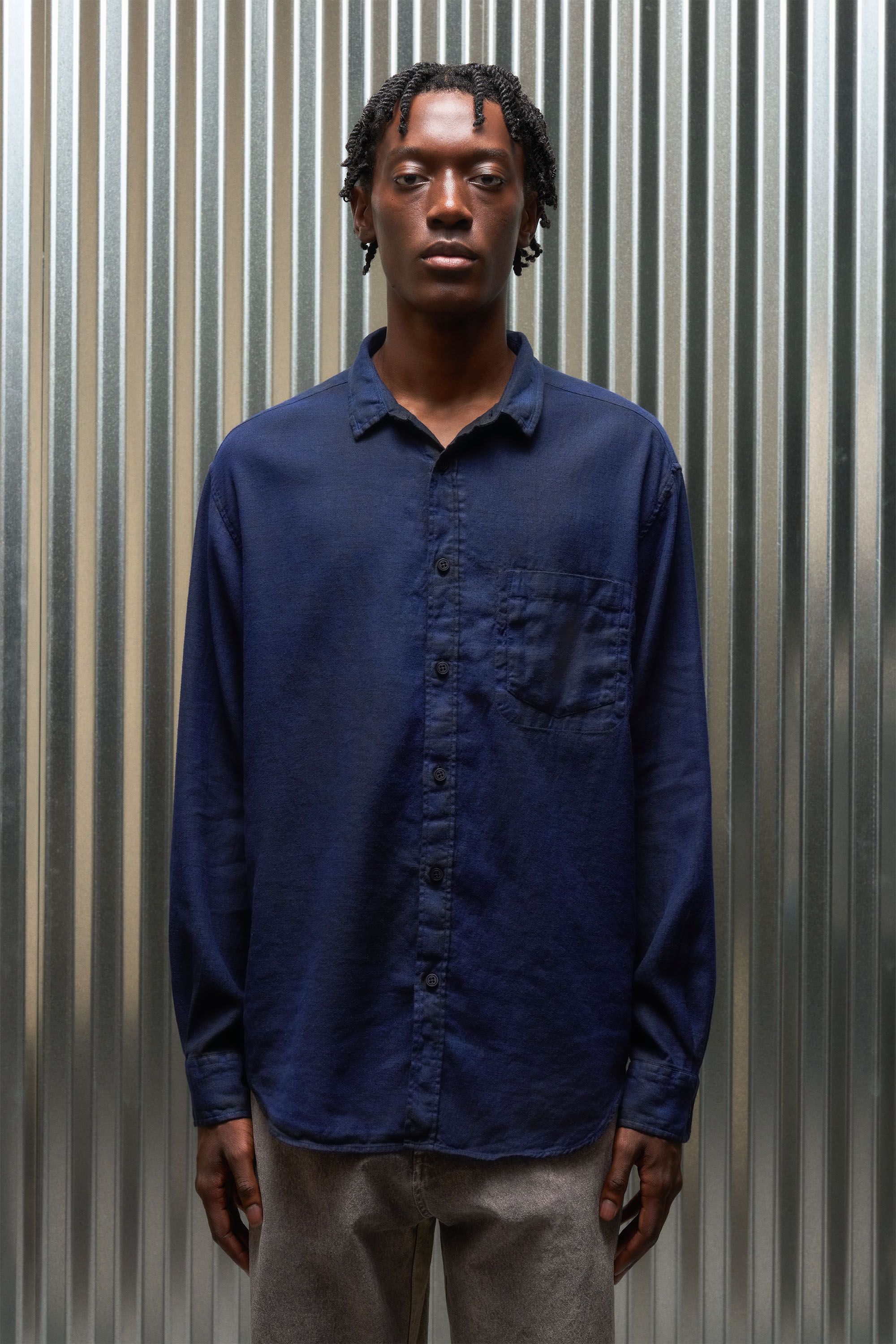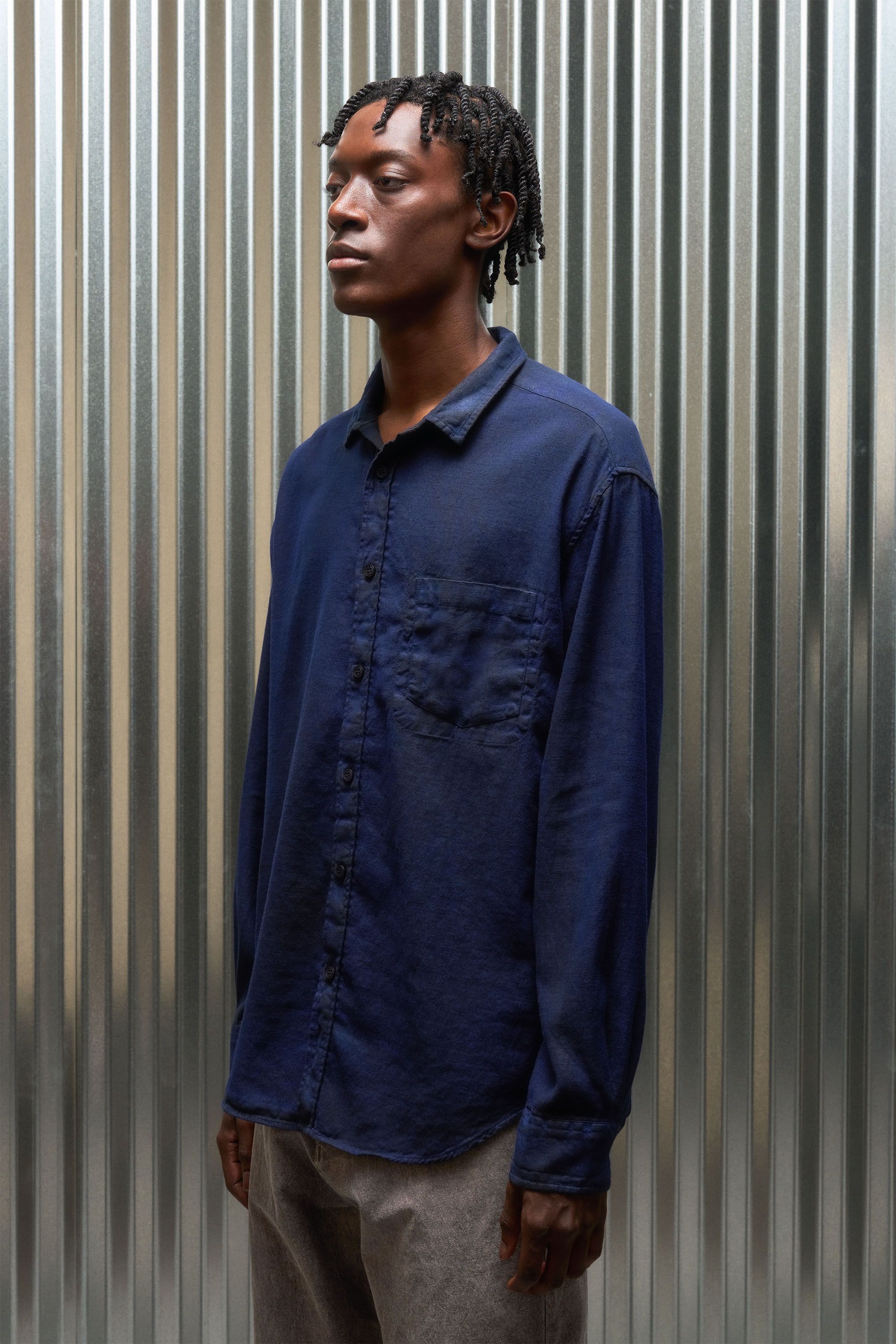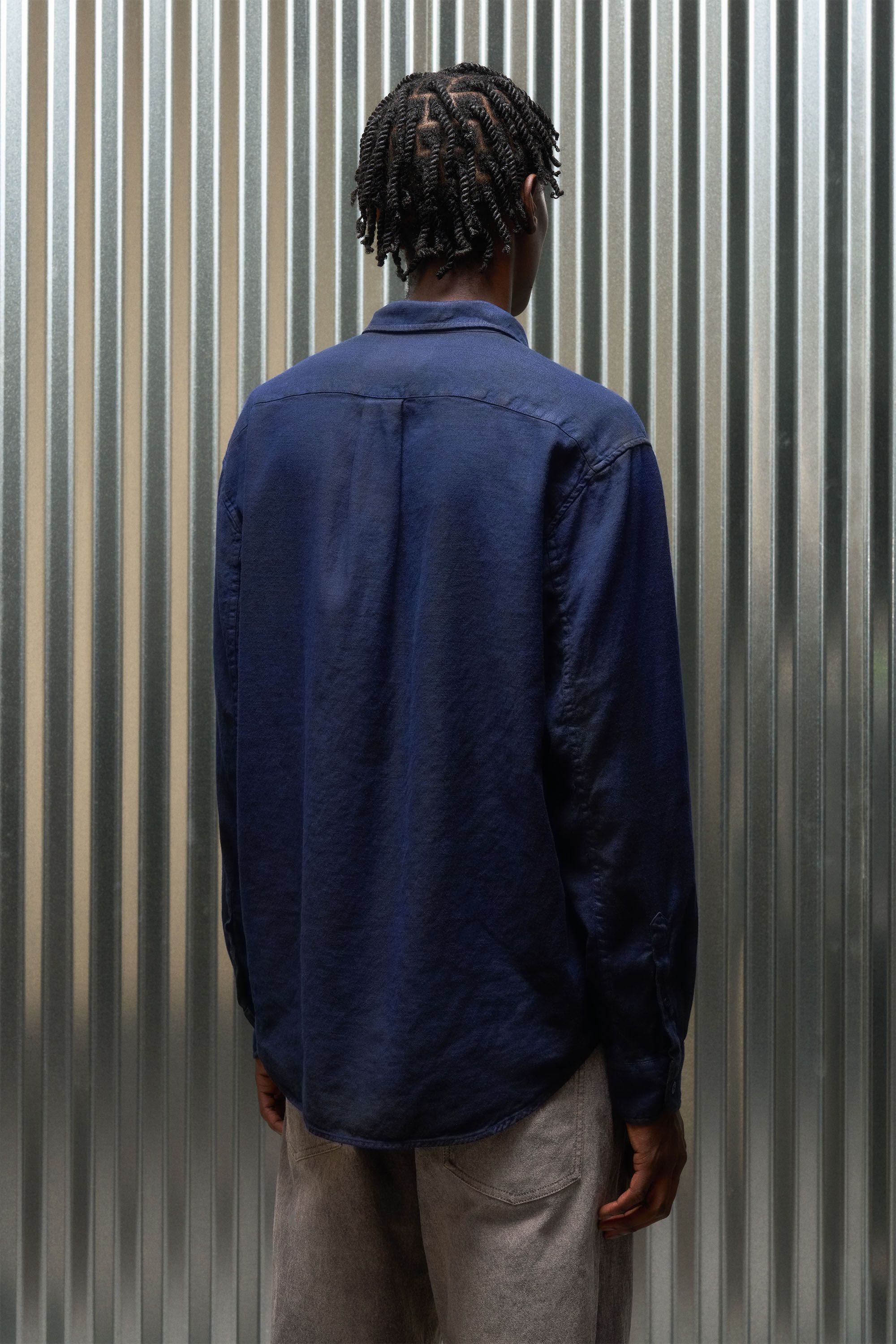 A Liminal Co/linen Boxford experiment [#548] sprayed to another level. Our transition-weight 210gsm linen/cotton blend is garment dyed, sprayed with pig…