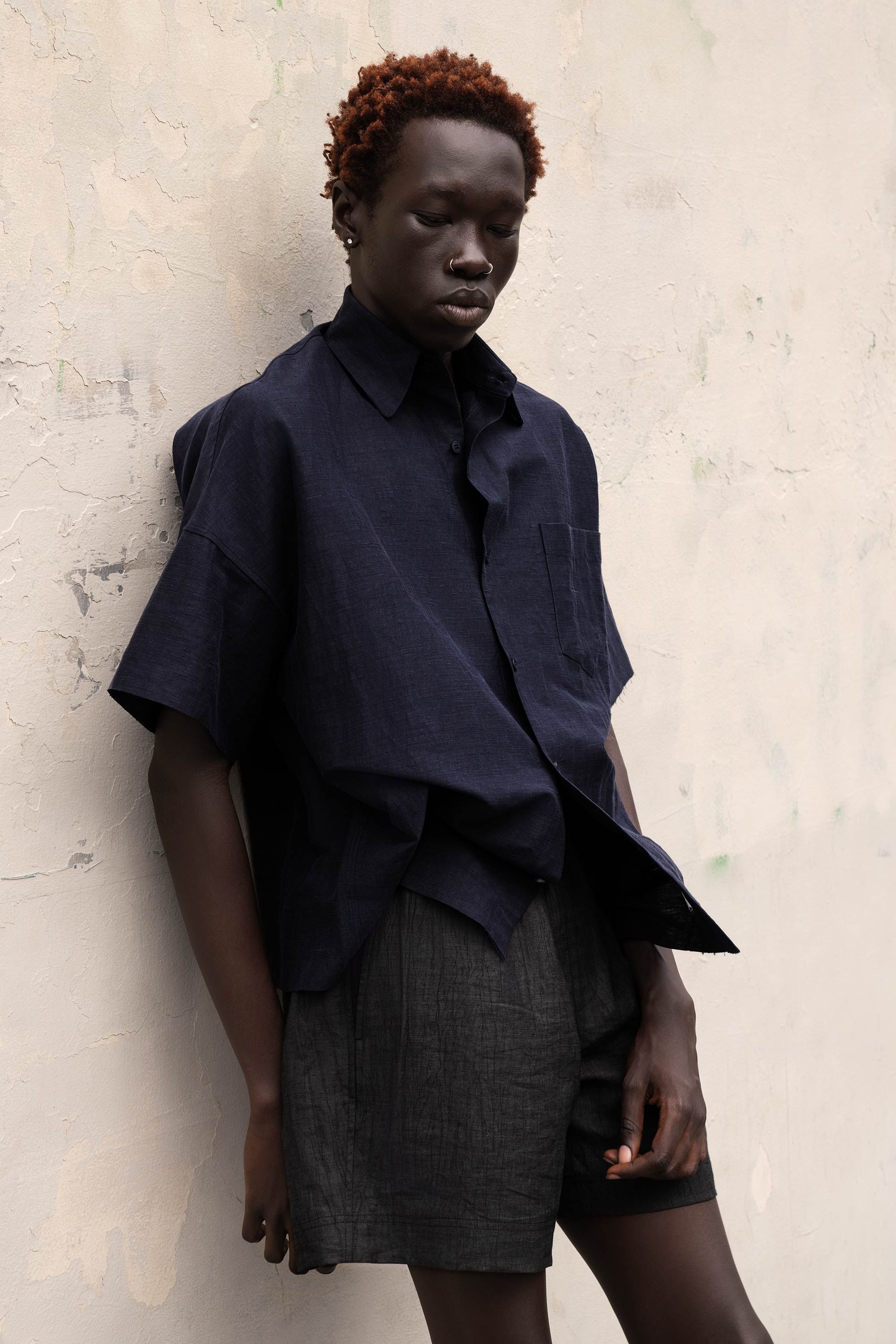 Big freedom, cut a little shorter in a Hollywood wrinkled experiment [#455]. Cut short, loose and easy in Linenfoil, a lightweight and crisp linen-rich …