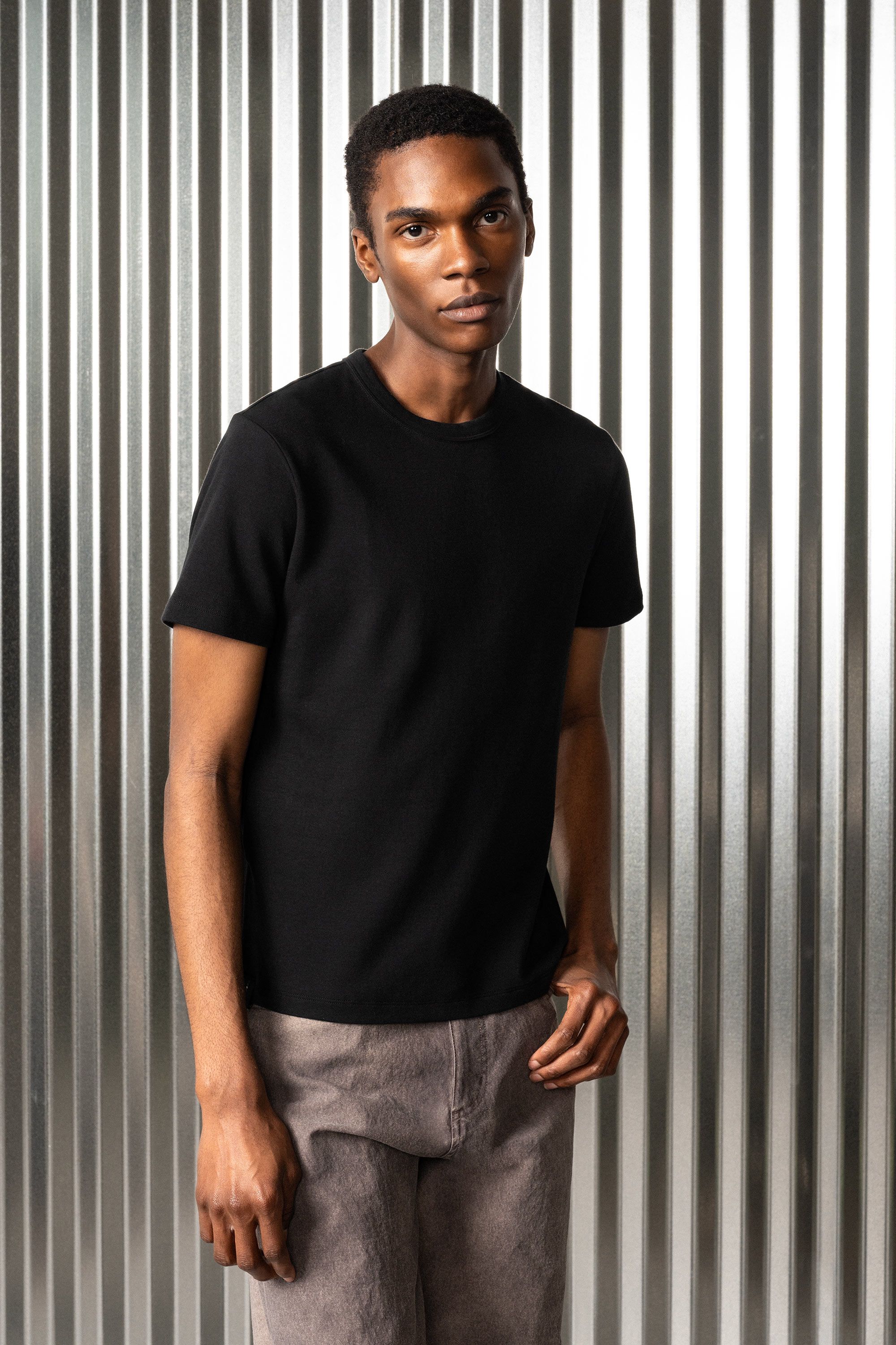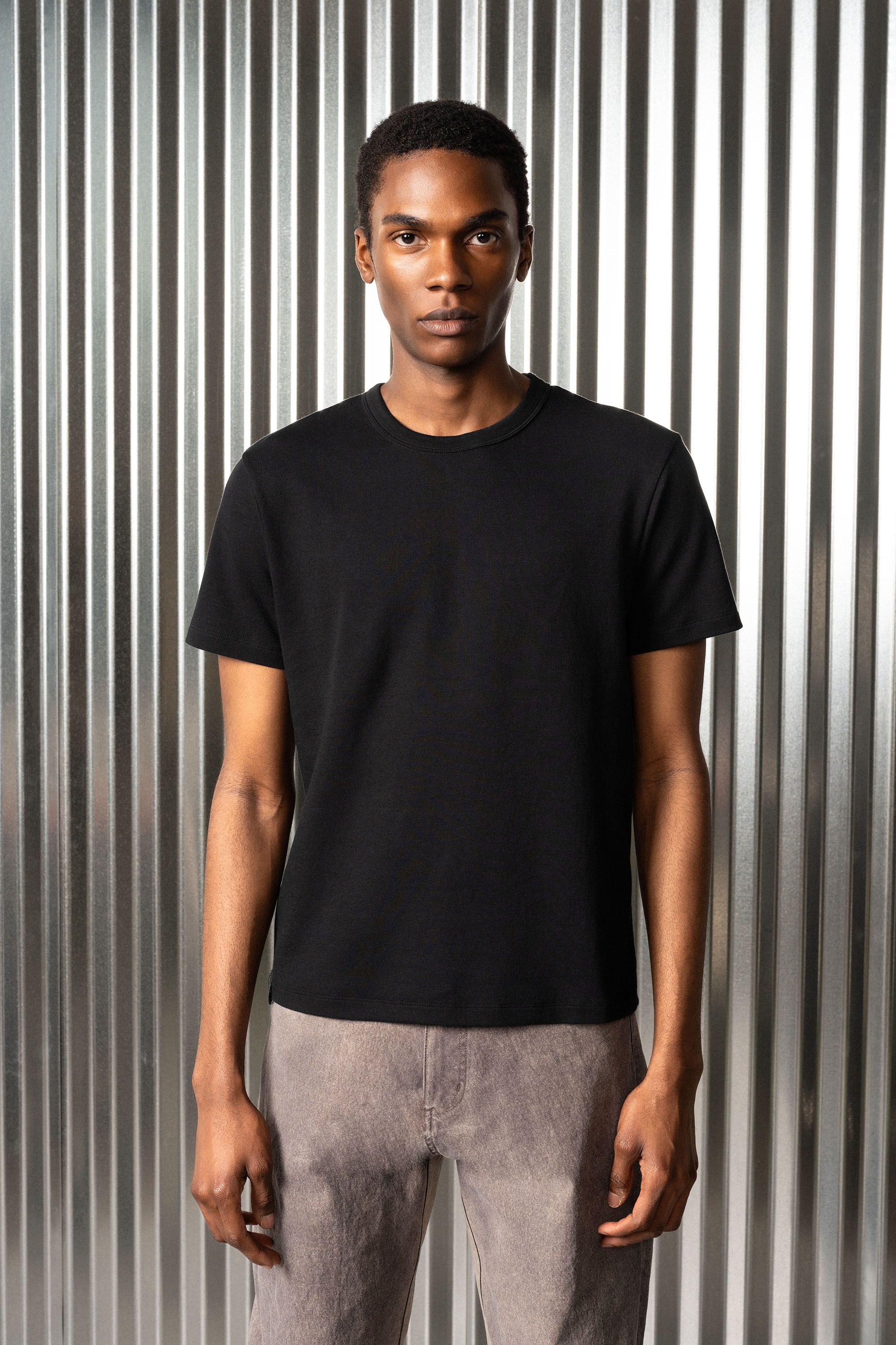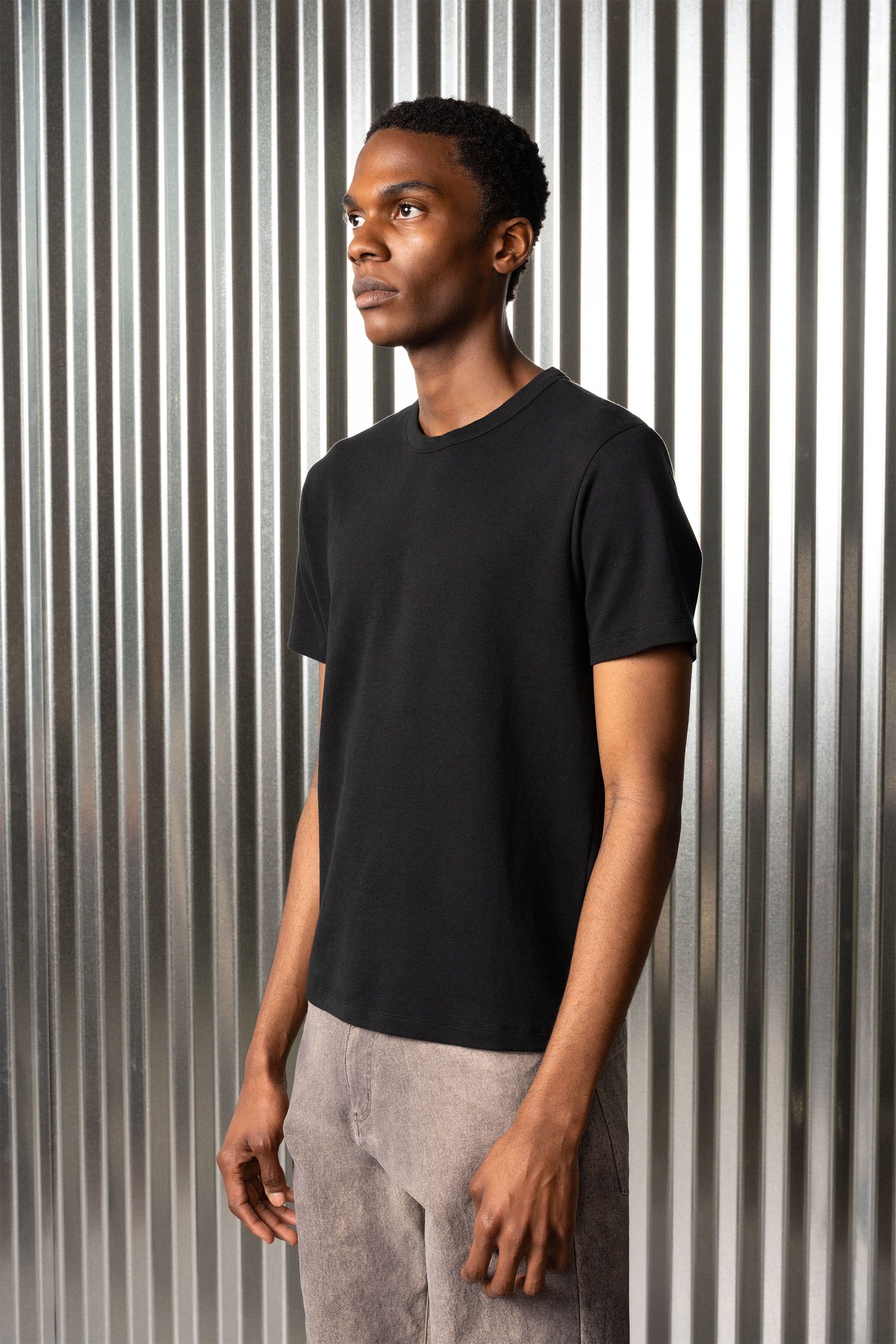 An exceptional cotton doublejersey t-shirt experiment [#514] in the broad shouldered and high necked Cut Two silhouette. The extra long staple American …