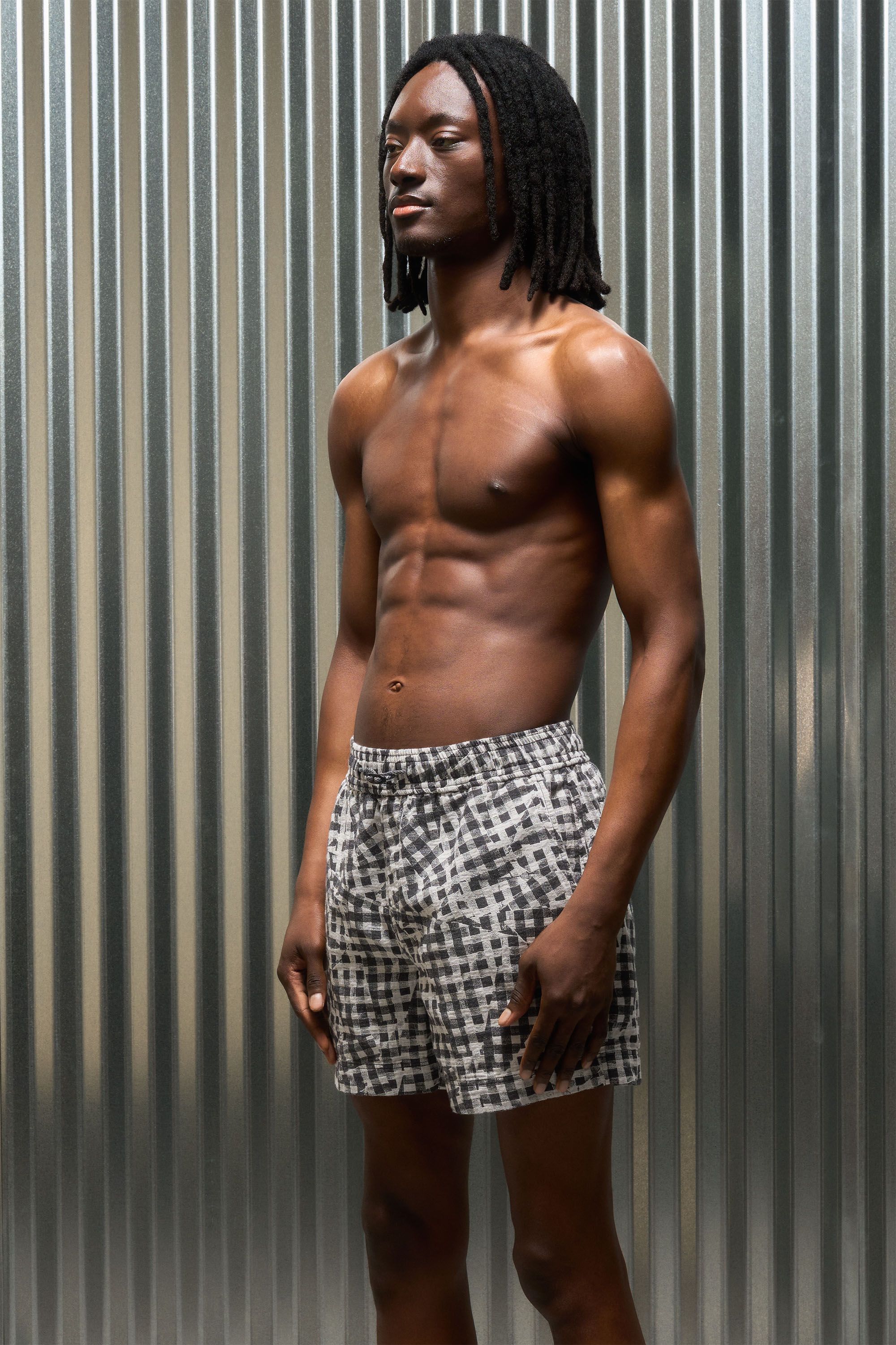 A photocopy of a littlebigs shorts experiment [#538]. A simple short cut loose and easy in Photostat Aginghamjacquard, a complex black-and-white jacquar…