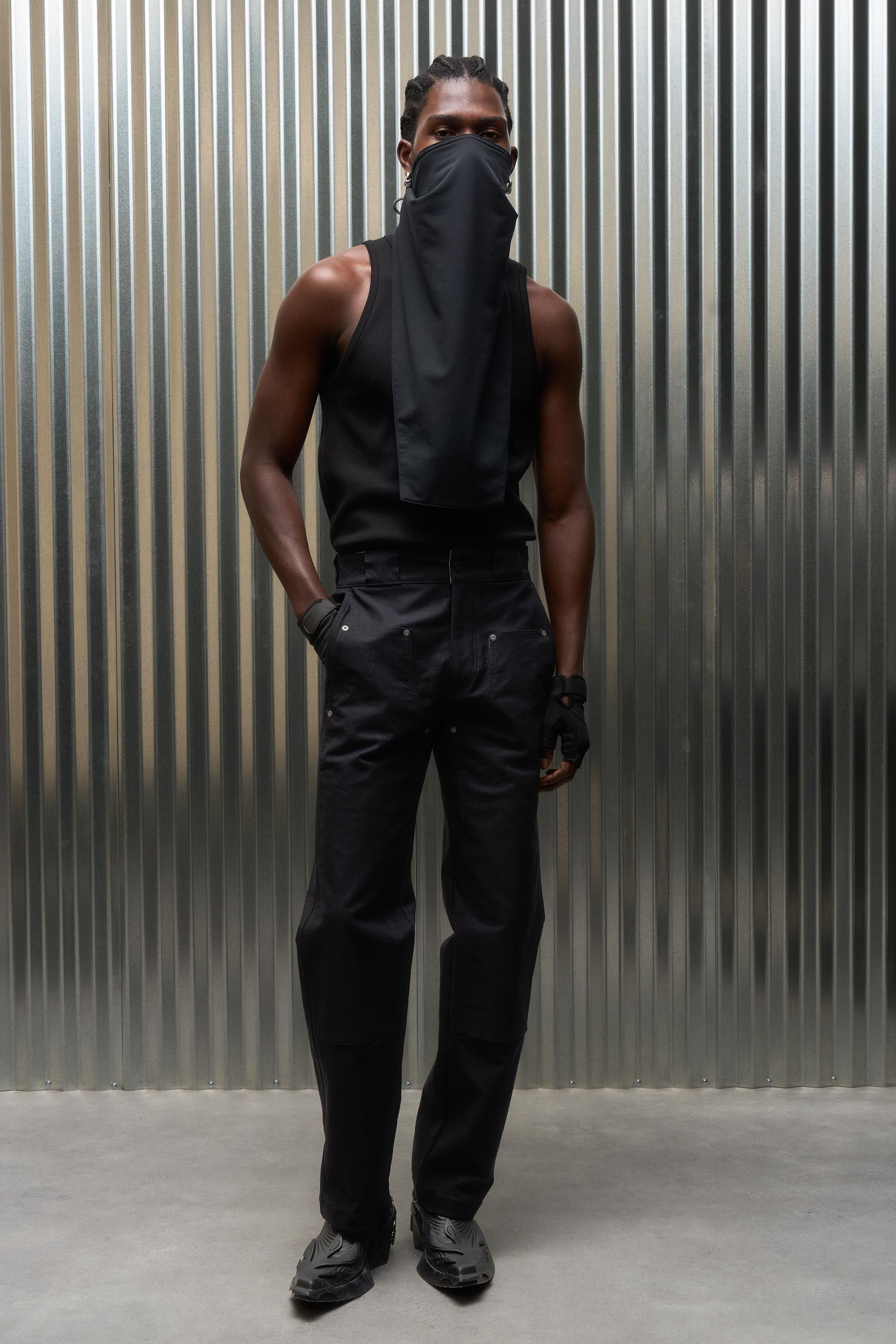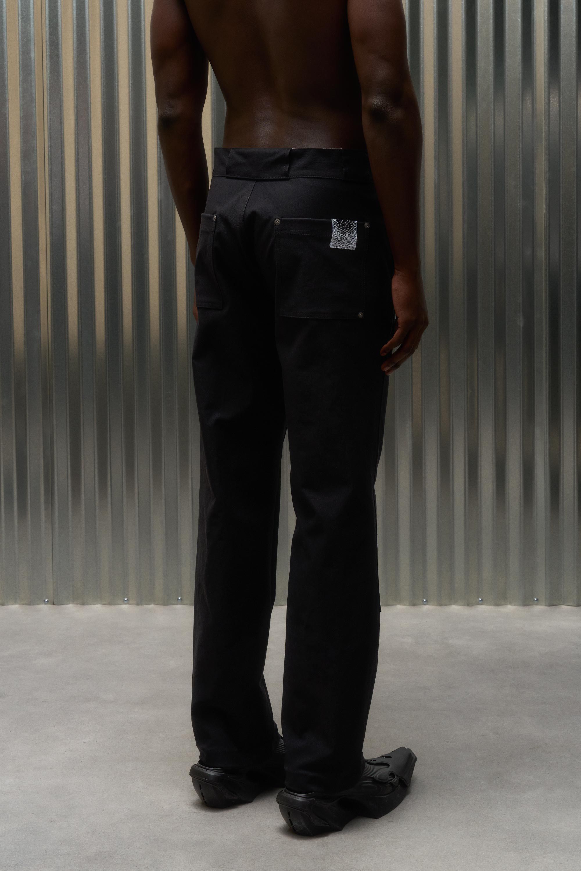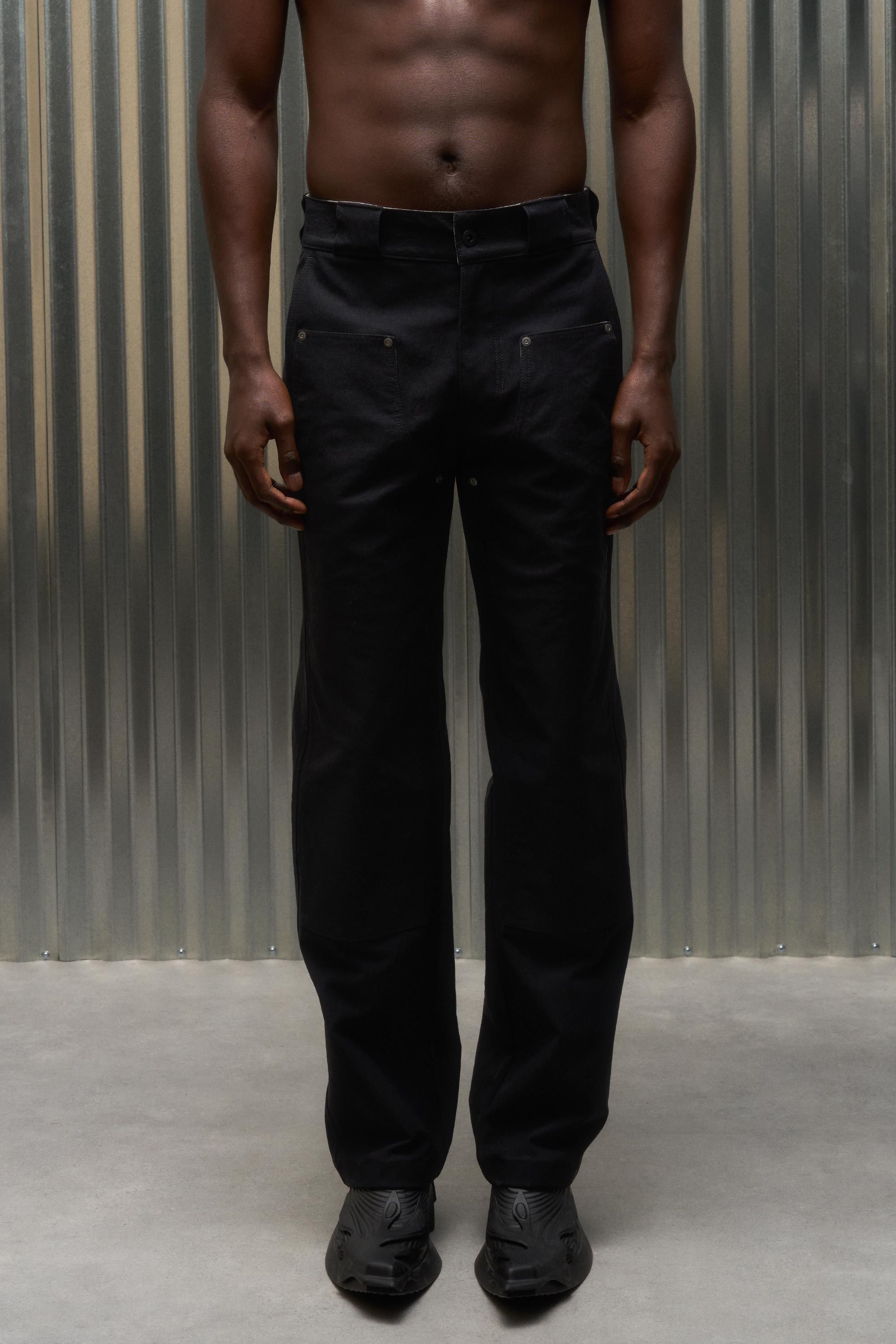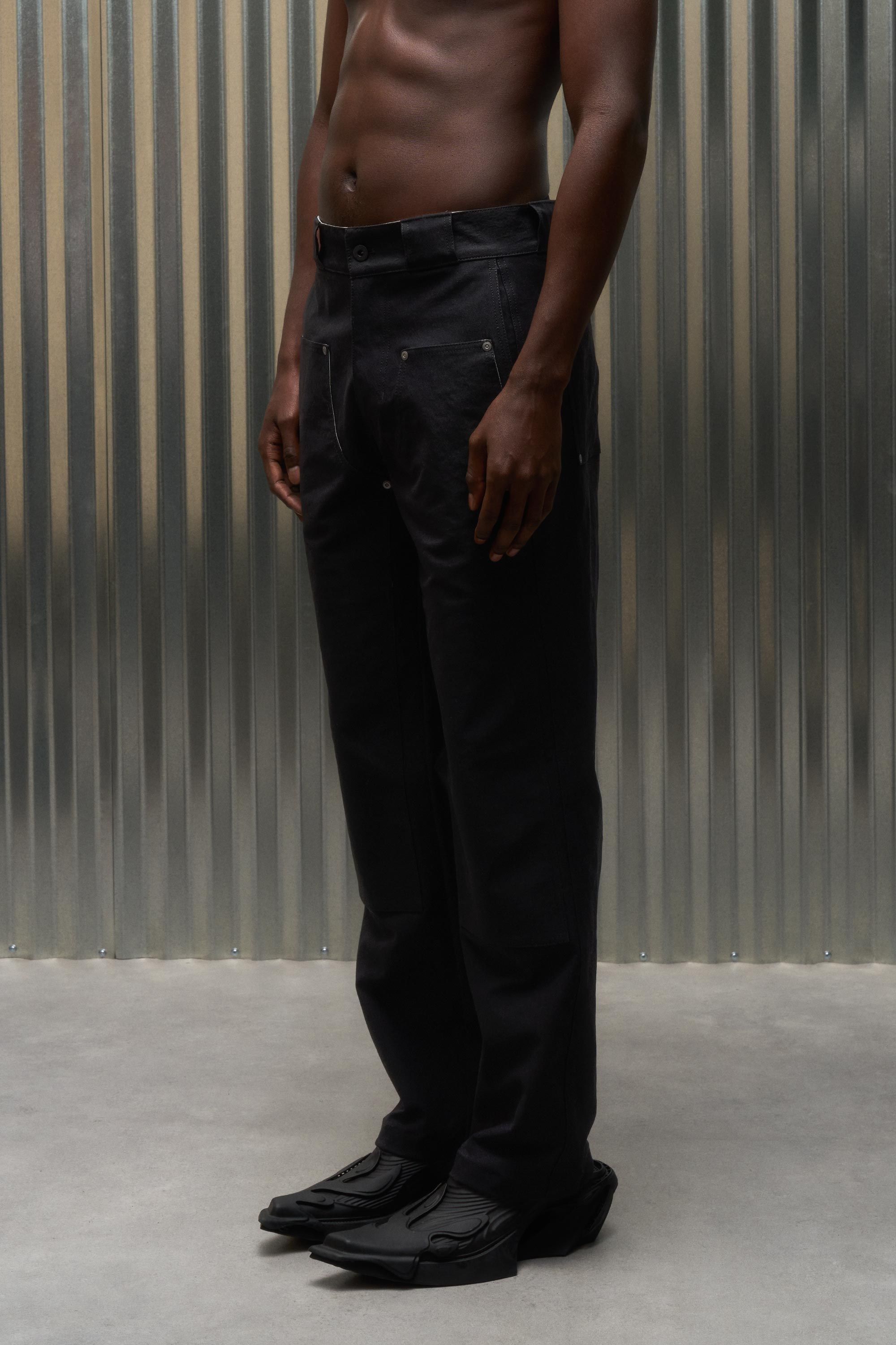A doubled knee work pant experiment [#552] with stacked front pockets in the hard wearing and unfadable Postdenim fabric. Long front panels add a second…