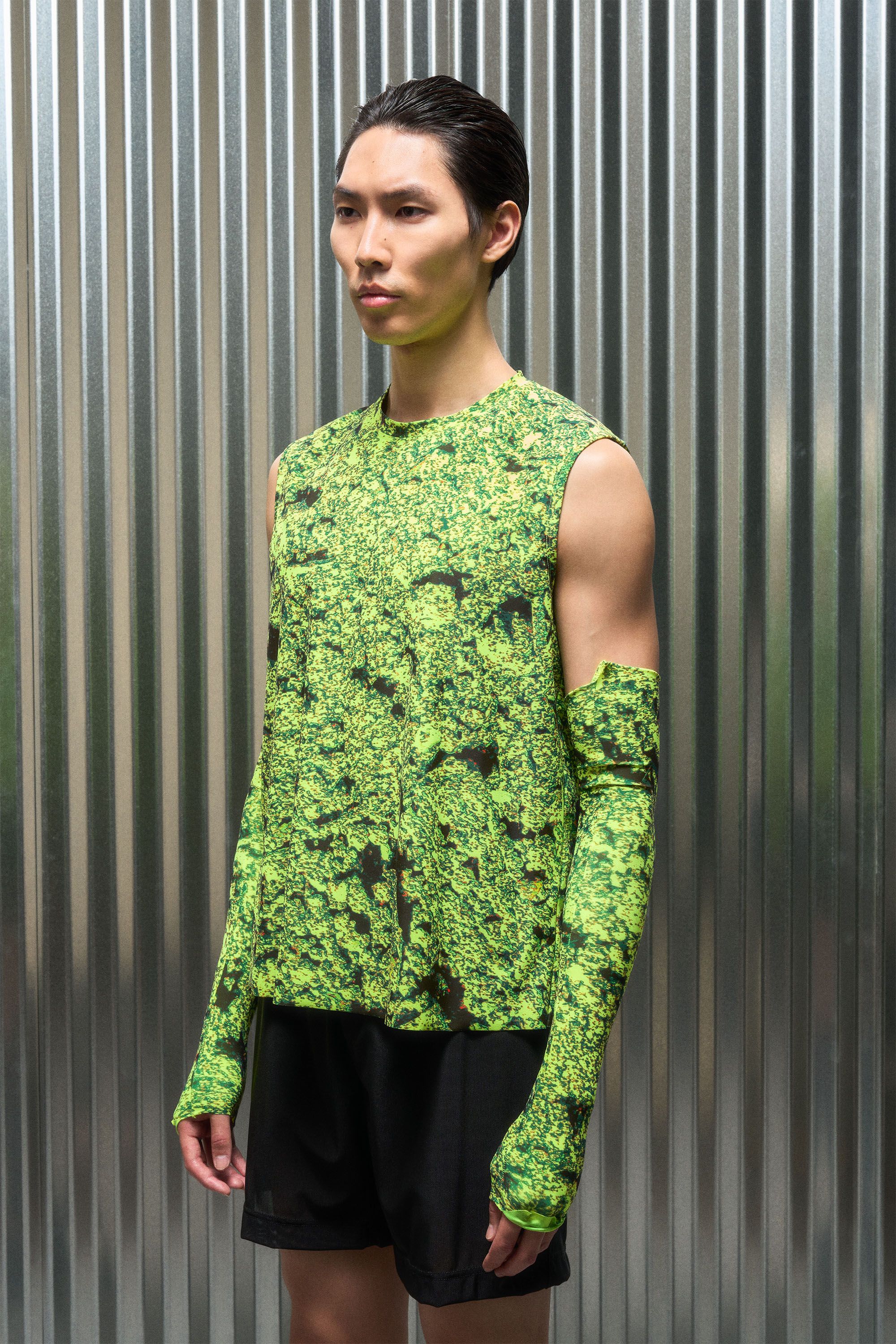A double layer of cool tank top experiment [#531]. Japanese powermesh on the inside provides structure and open airflow around the body. Sunwarp on the …