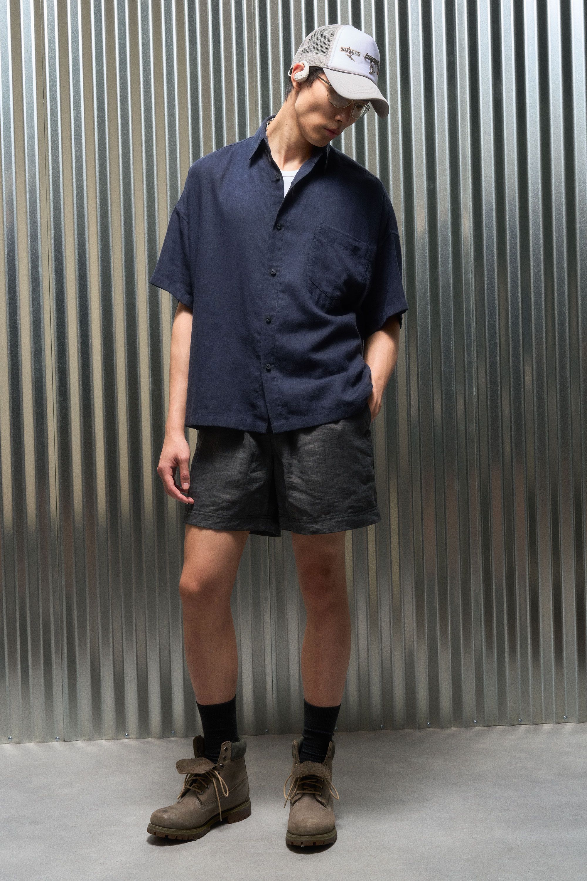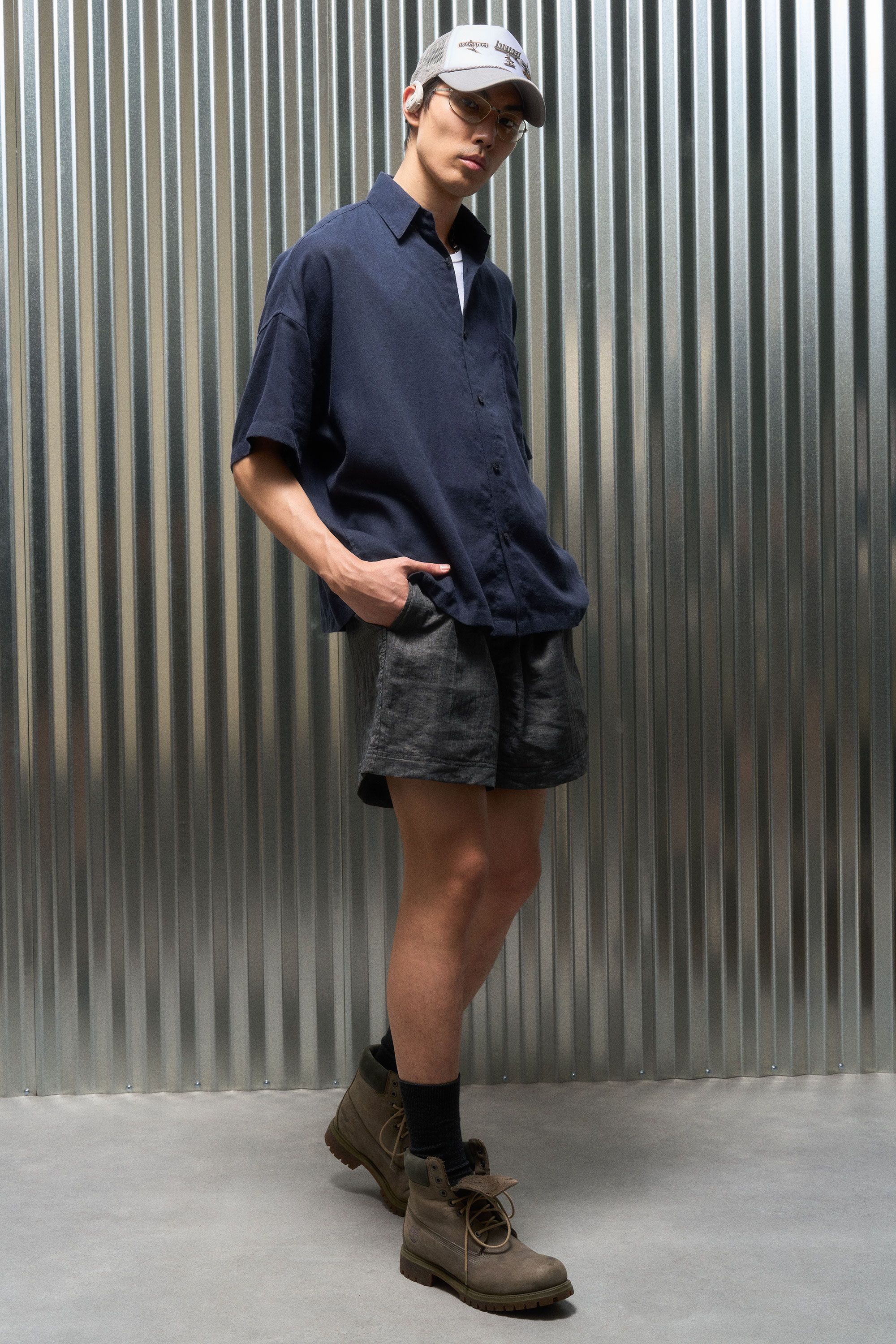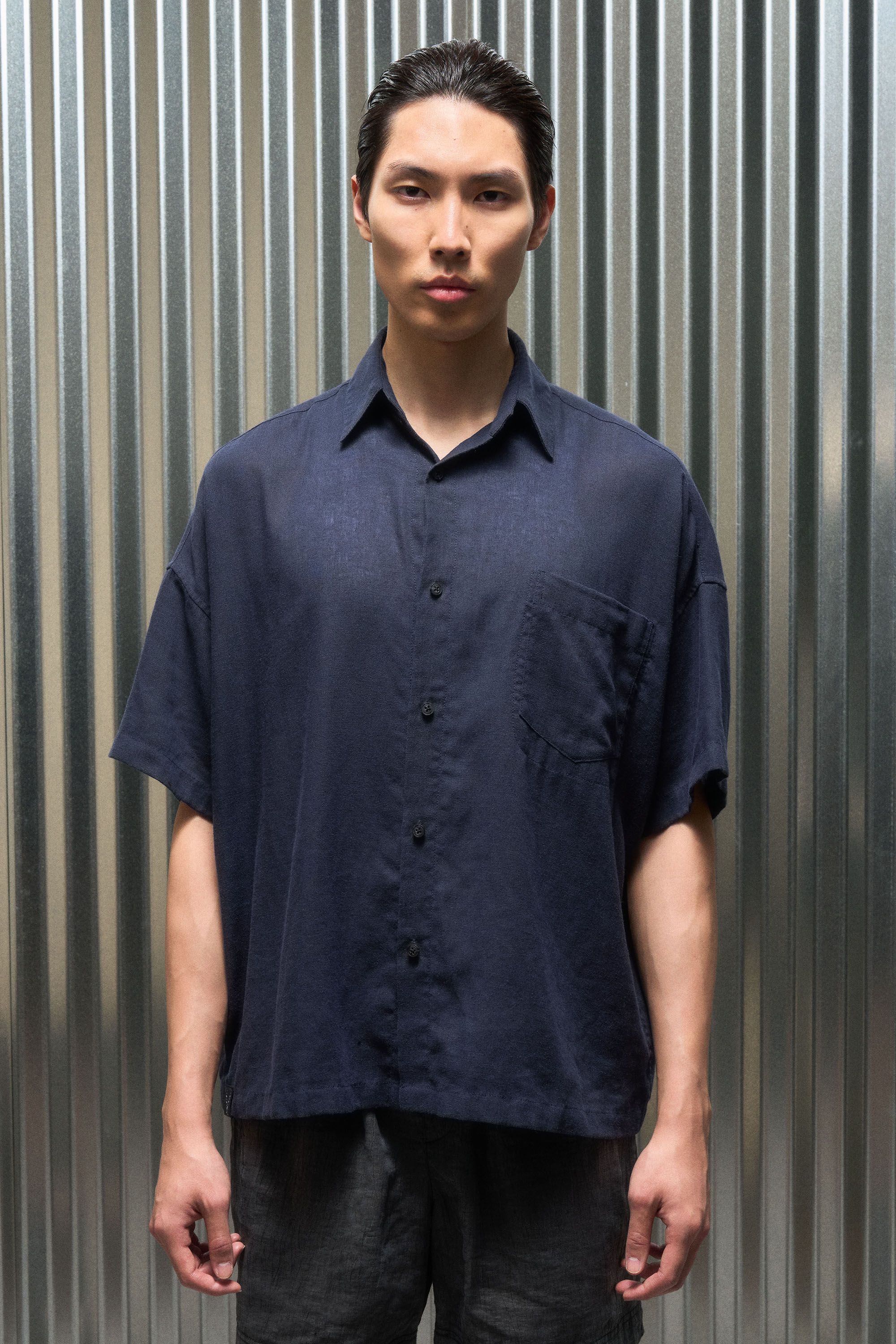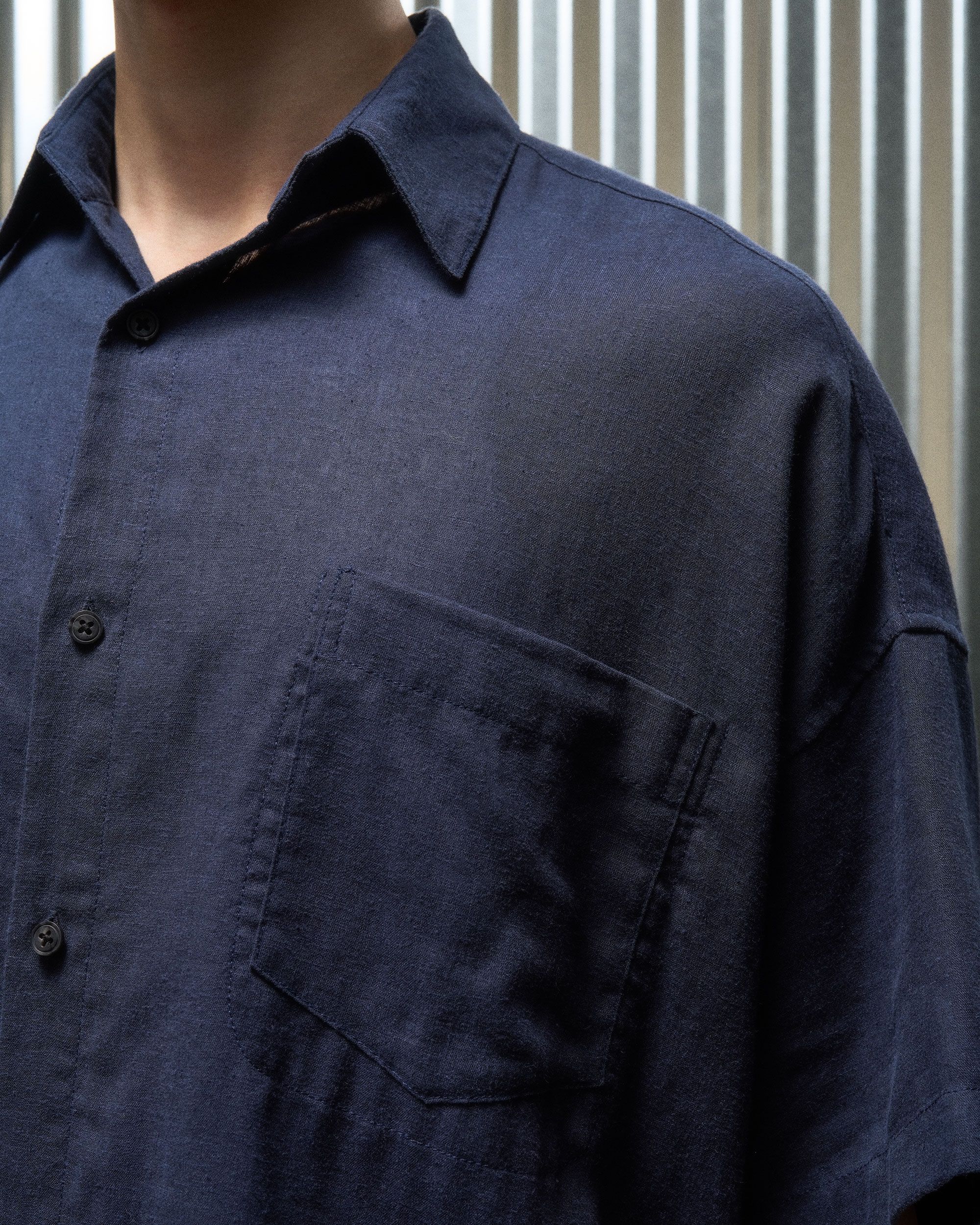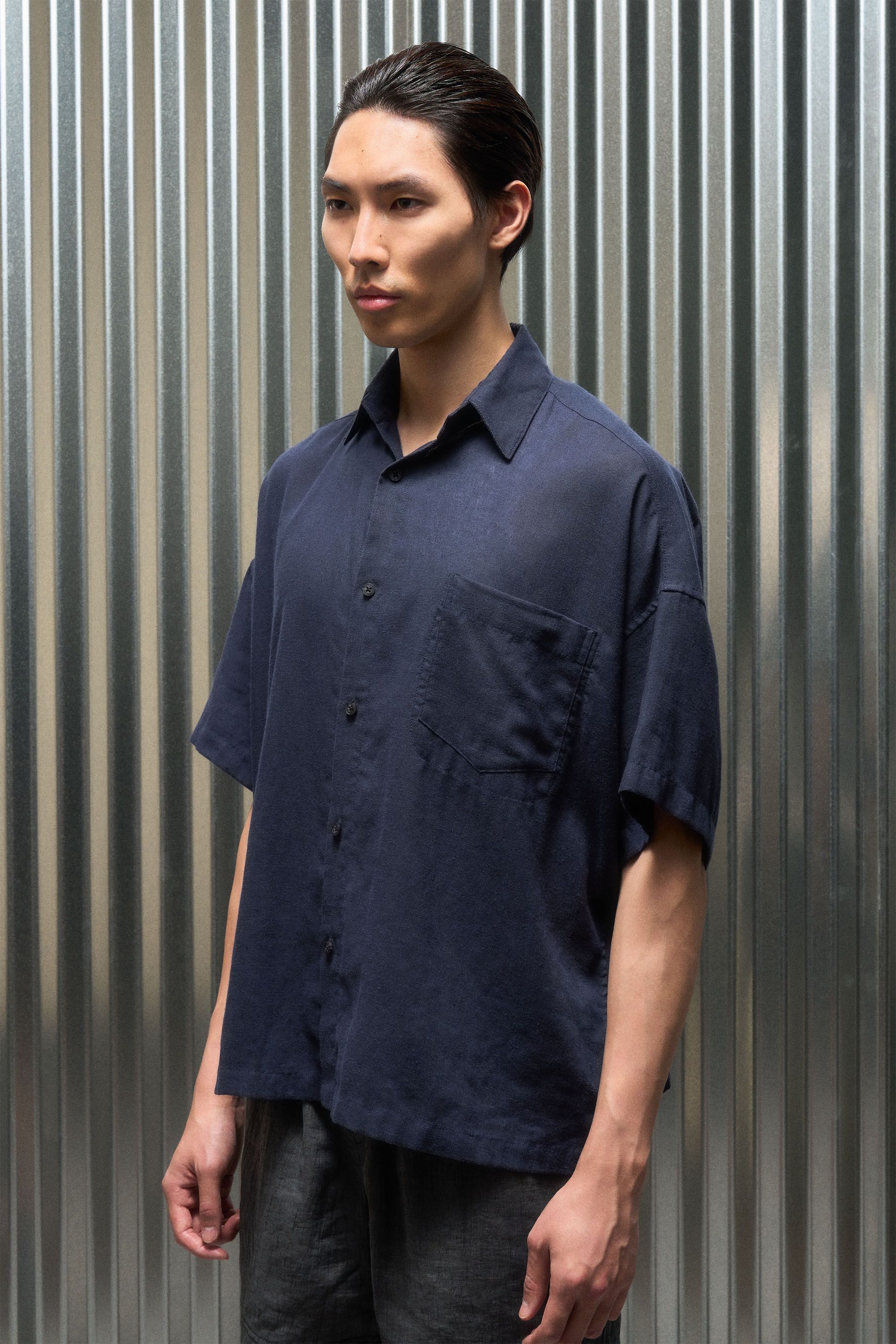 An extra easy linen archive/experiment [#540] in an oversized short sleeve button up cut. Made with the deadstock remains of Technolinen. A fabric that …