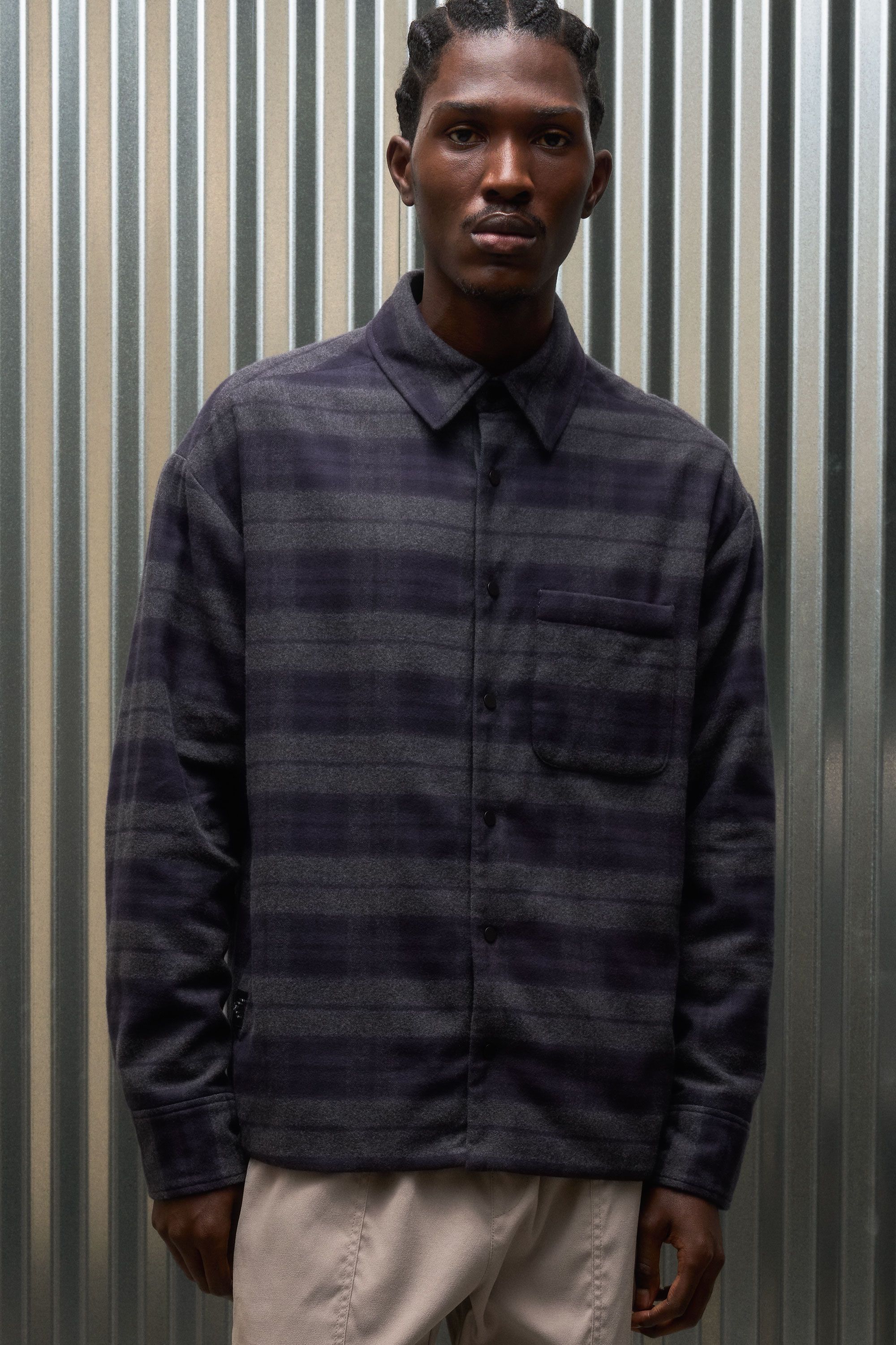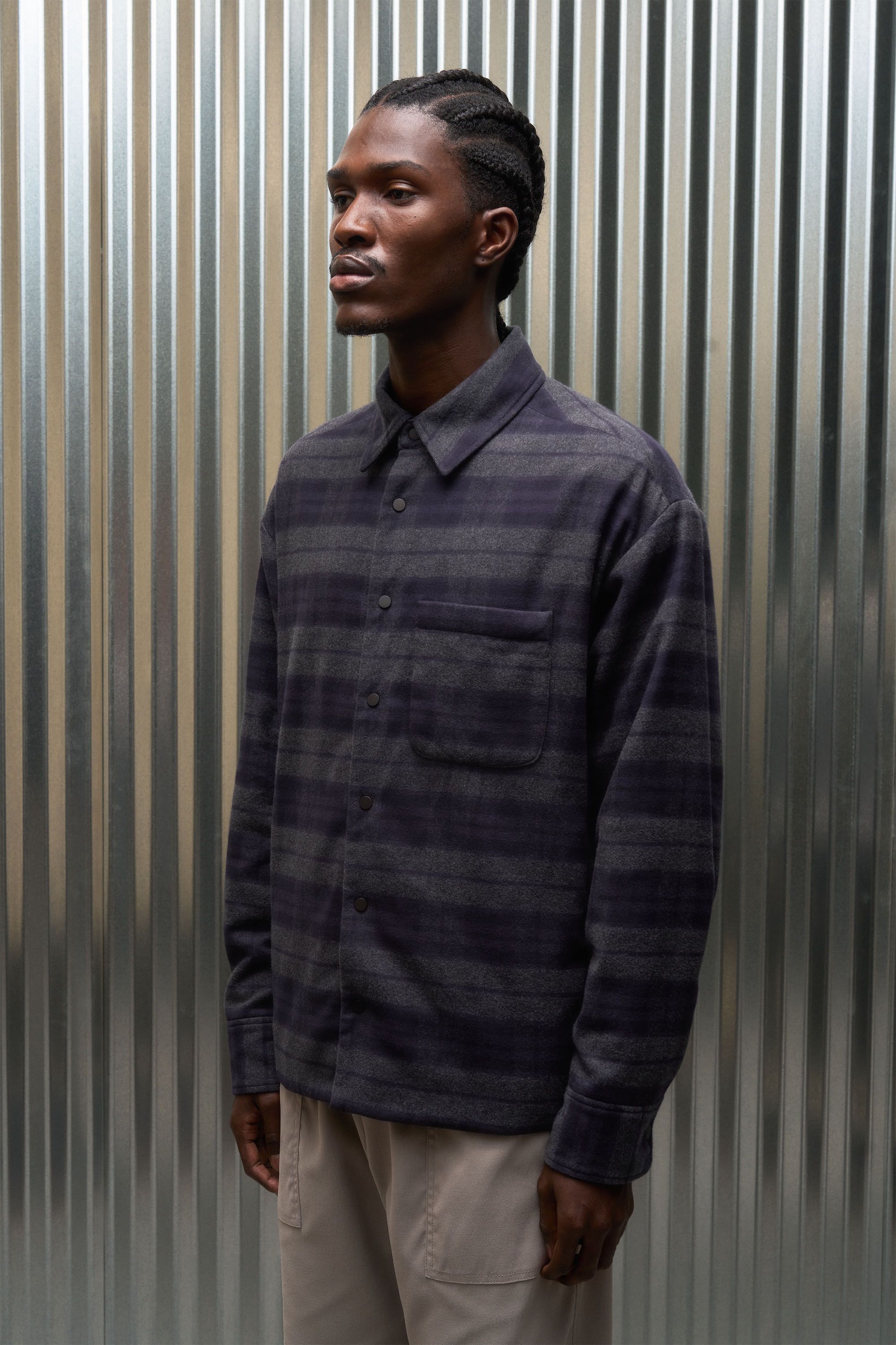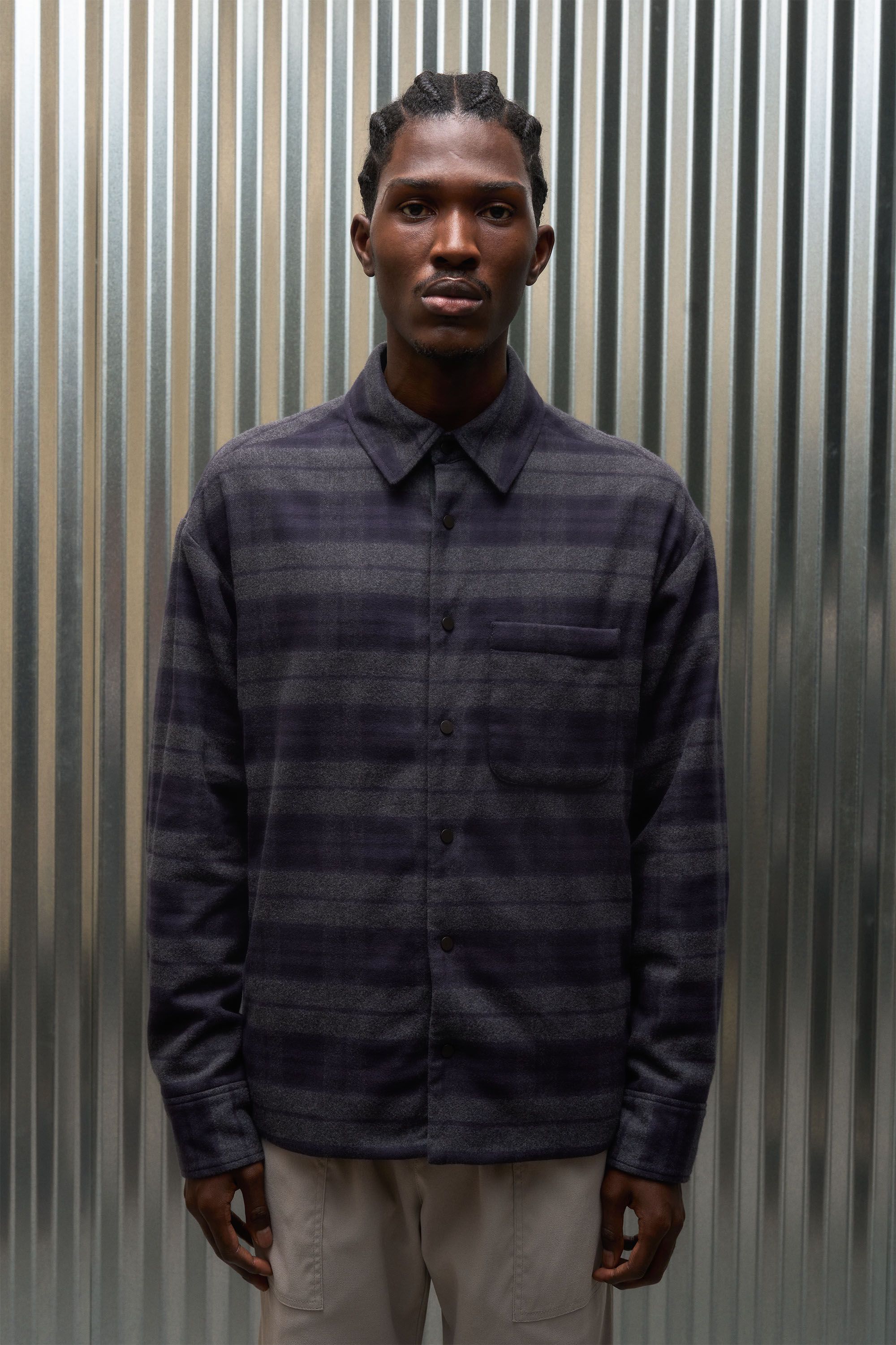 Warmth-without-overheating in a deliriously soft overshirt. The exterior is a two-ply cotton Italian flannel woven by Albini. The 17.5 micron merino Fut…