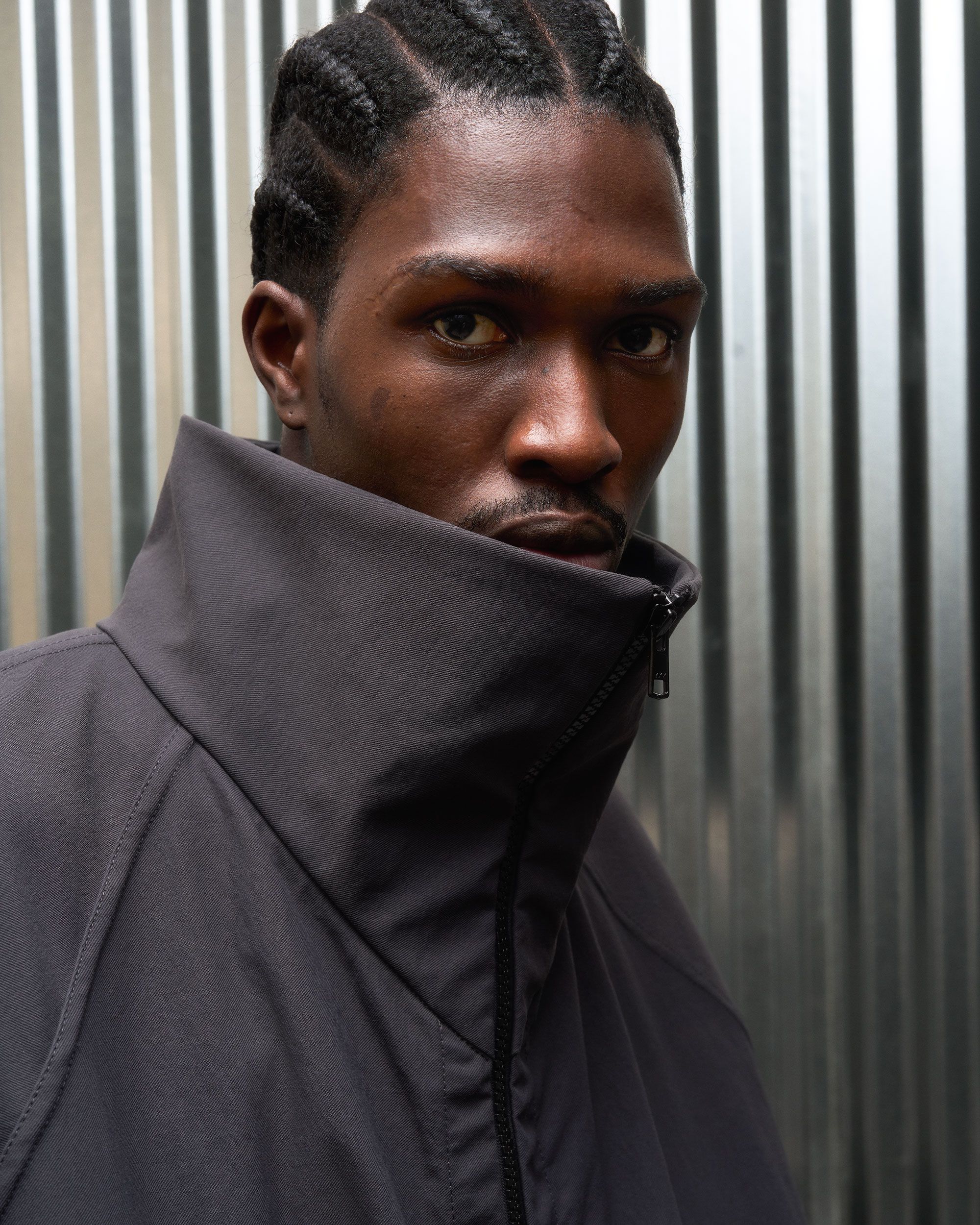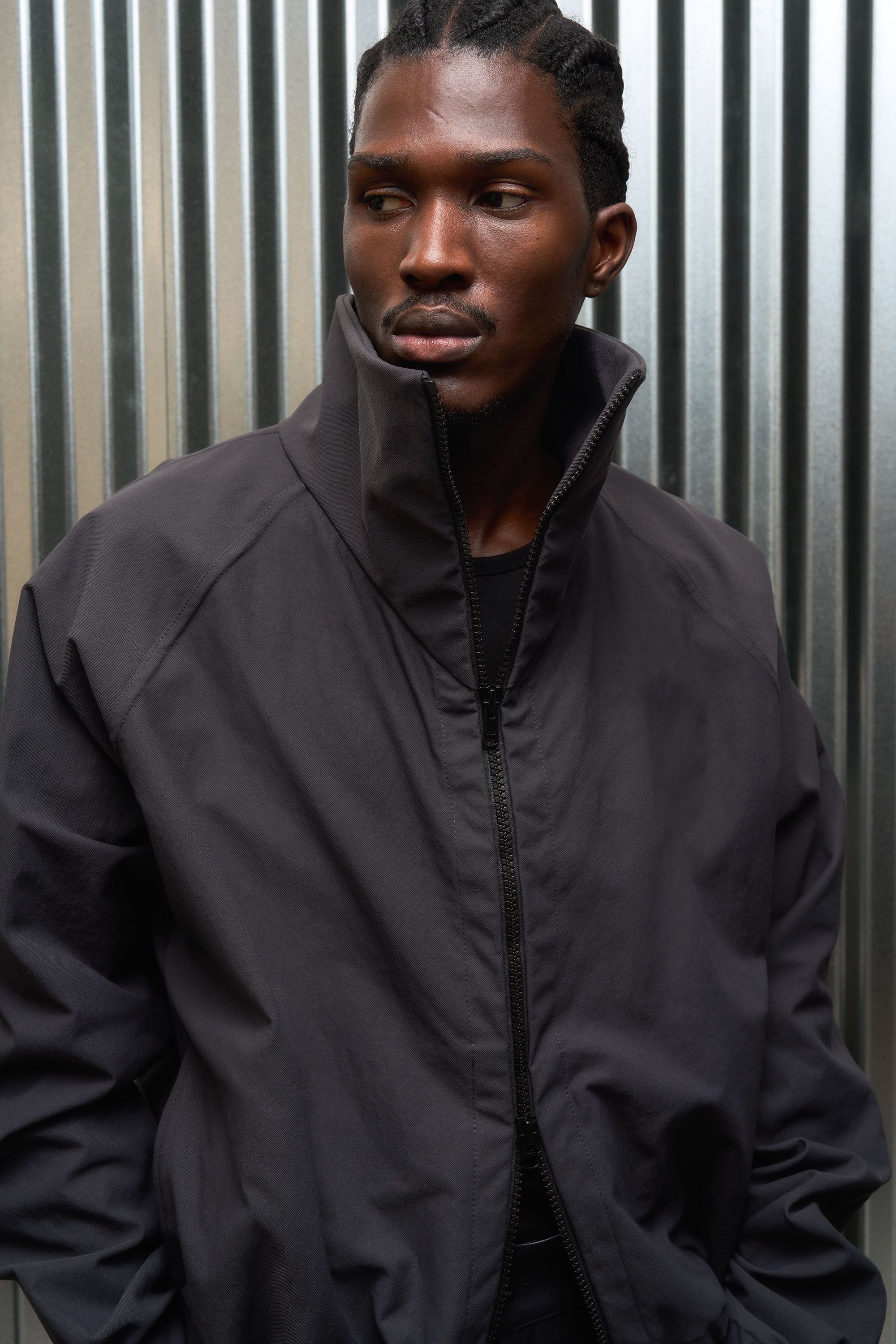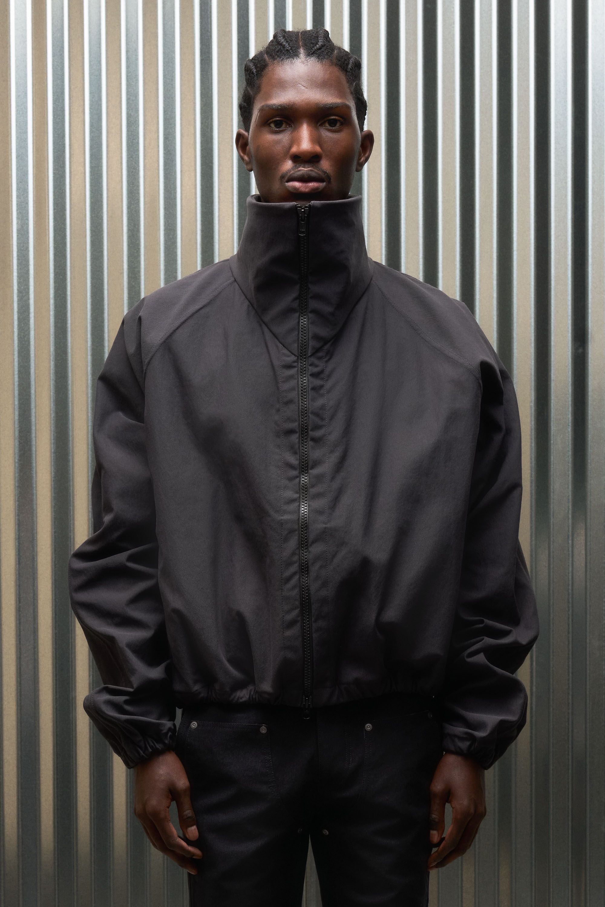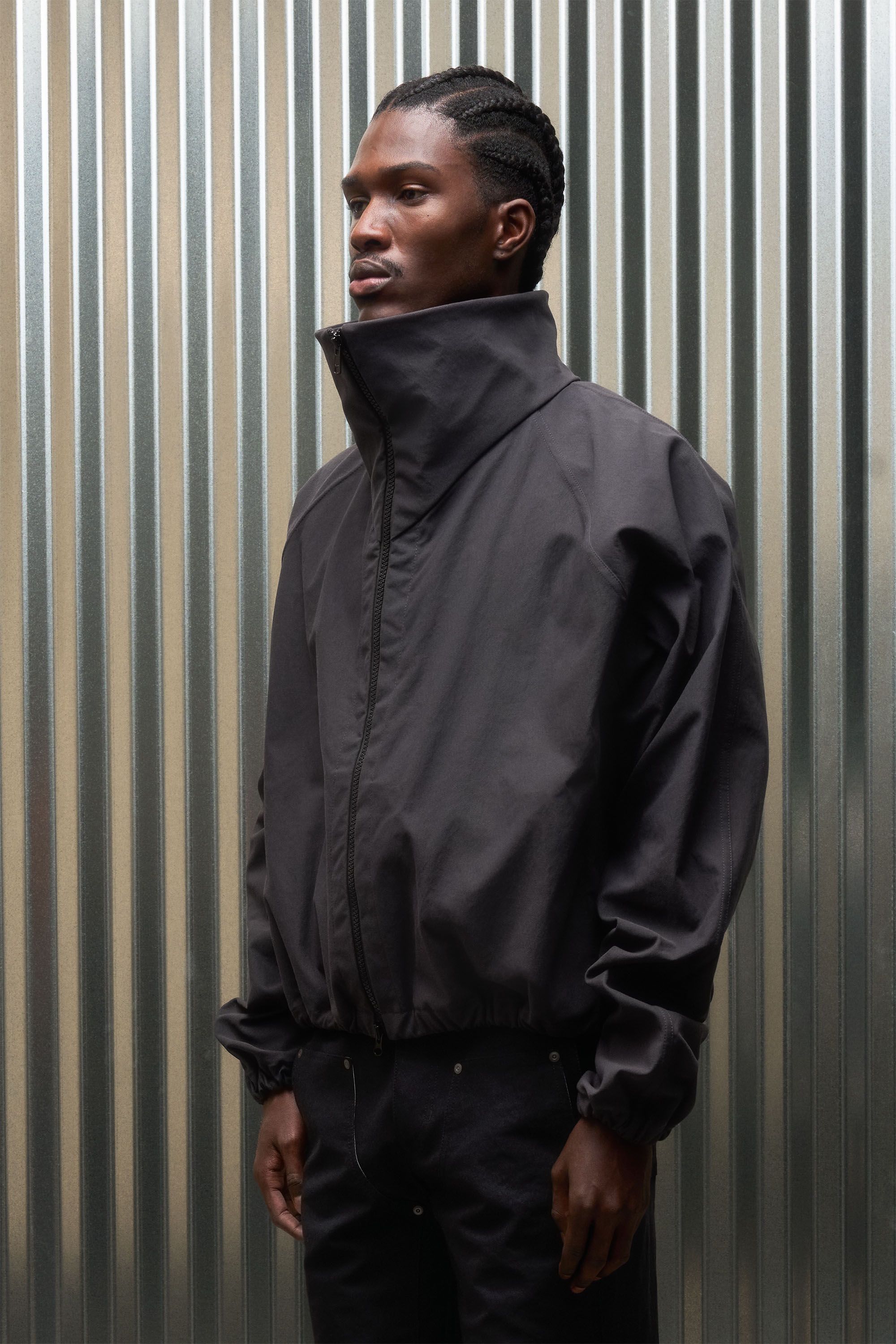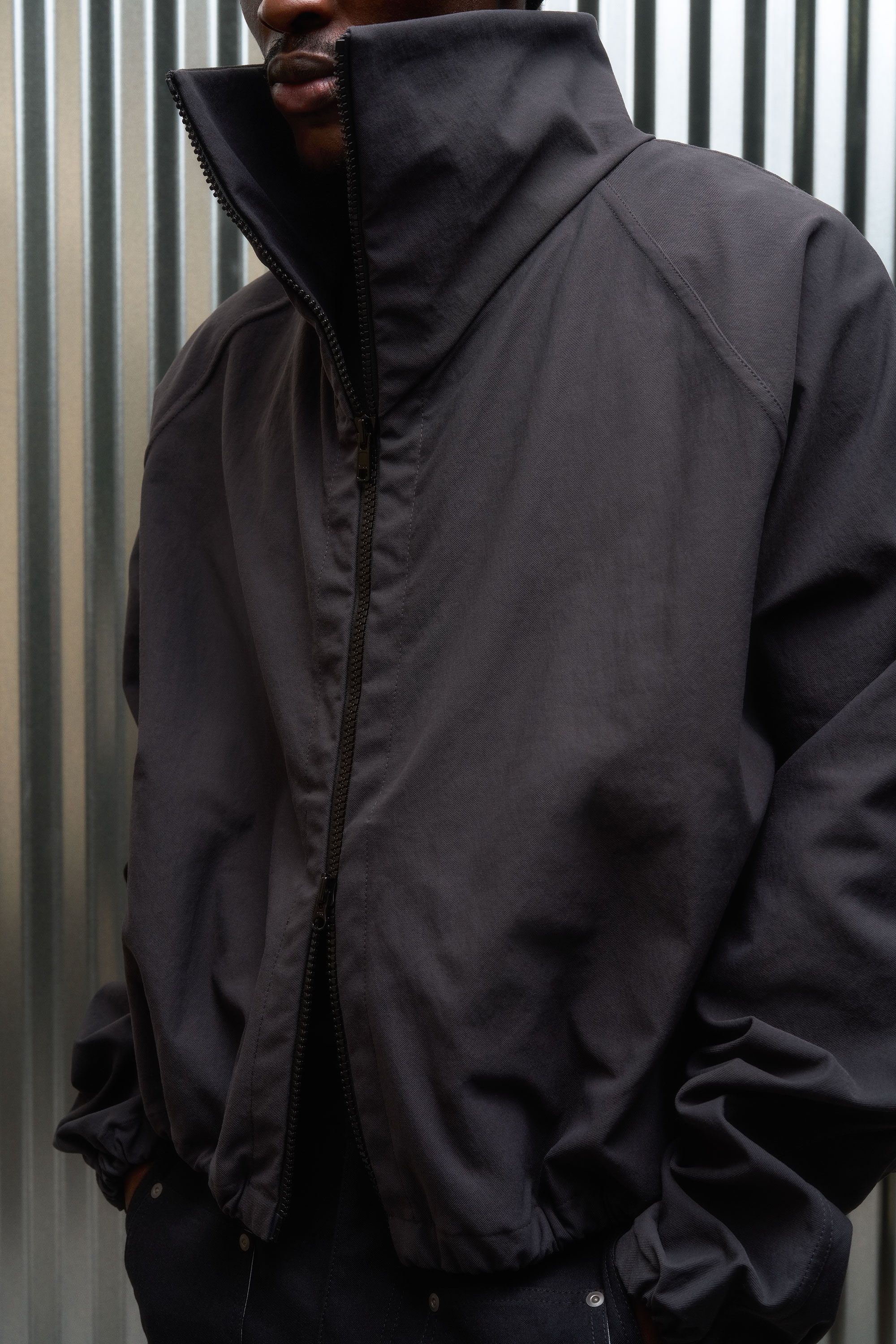 A hardcore-yet-secretly-soft shell jacket with an exaggerated collar experiment [#559]. The rugged yet pliable Bombtwill forms a protective outer layer,…