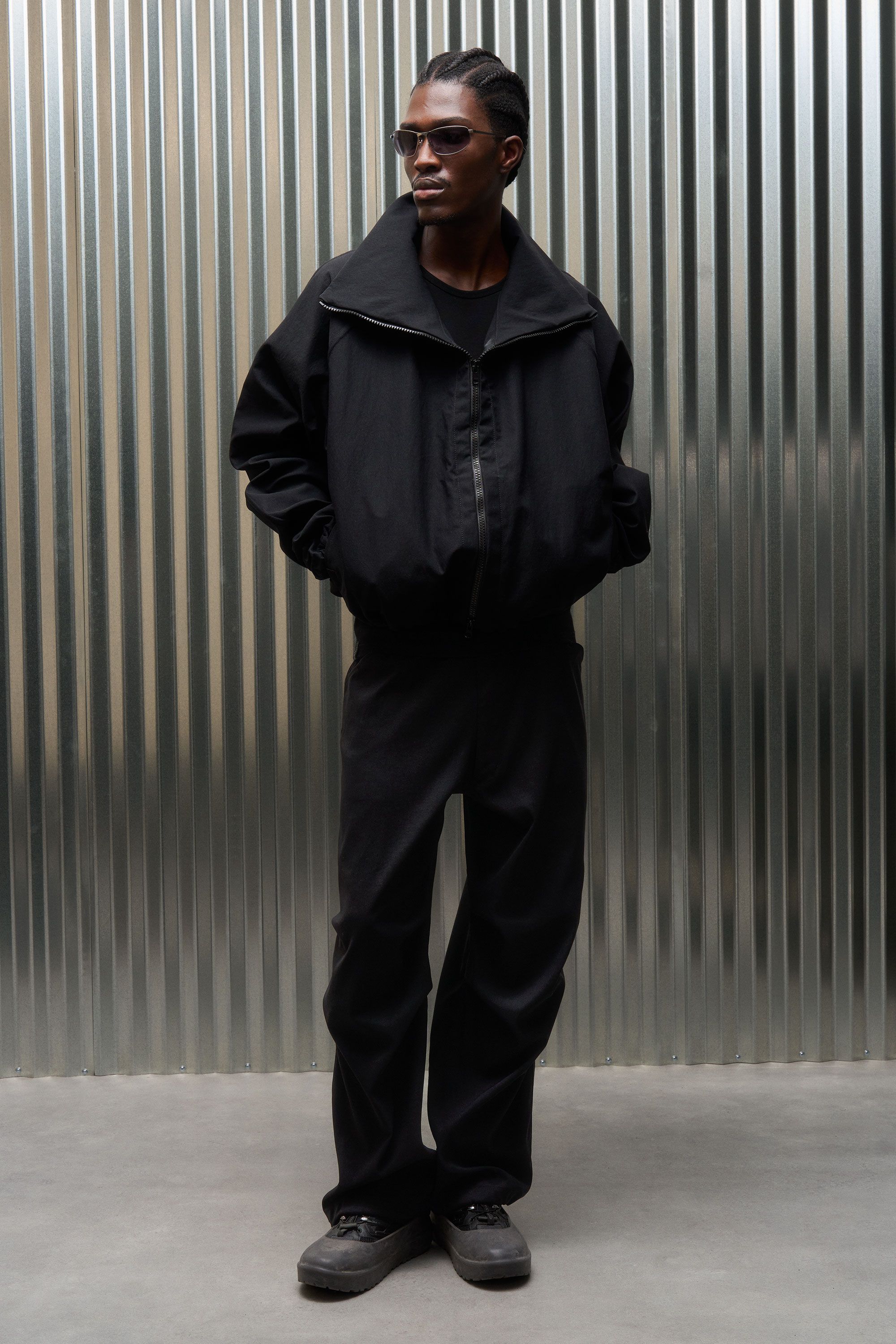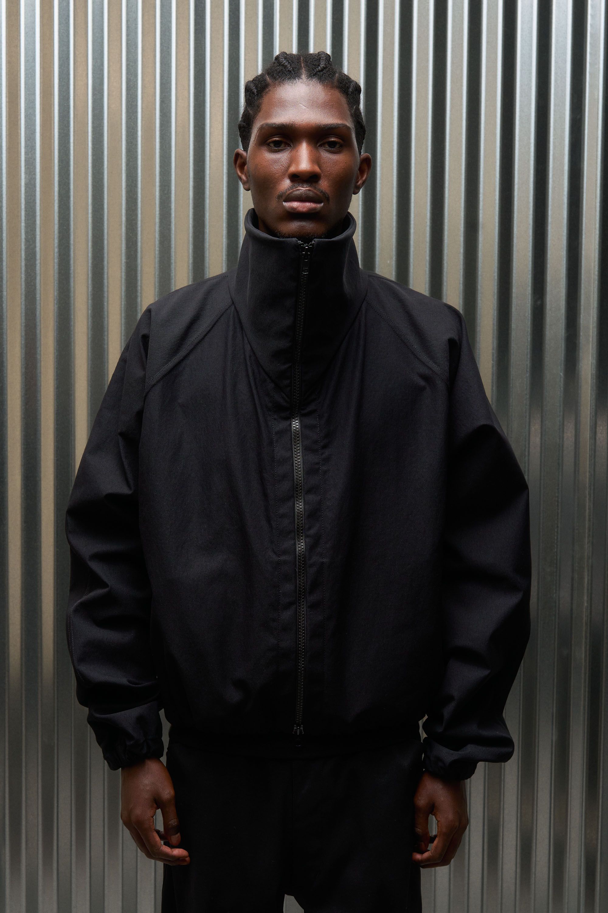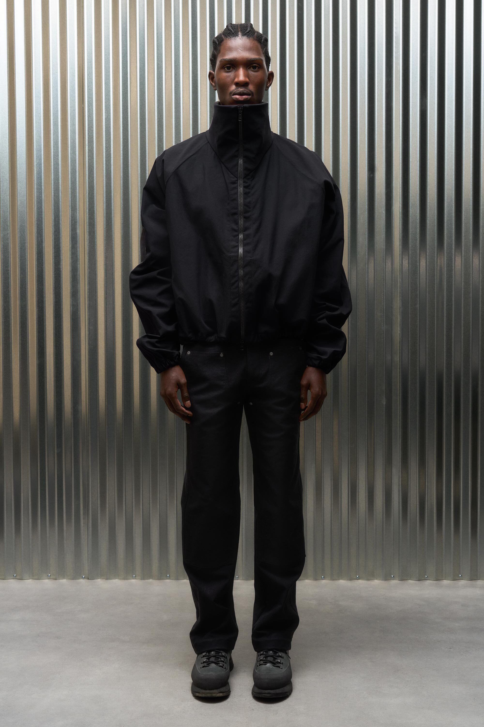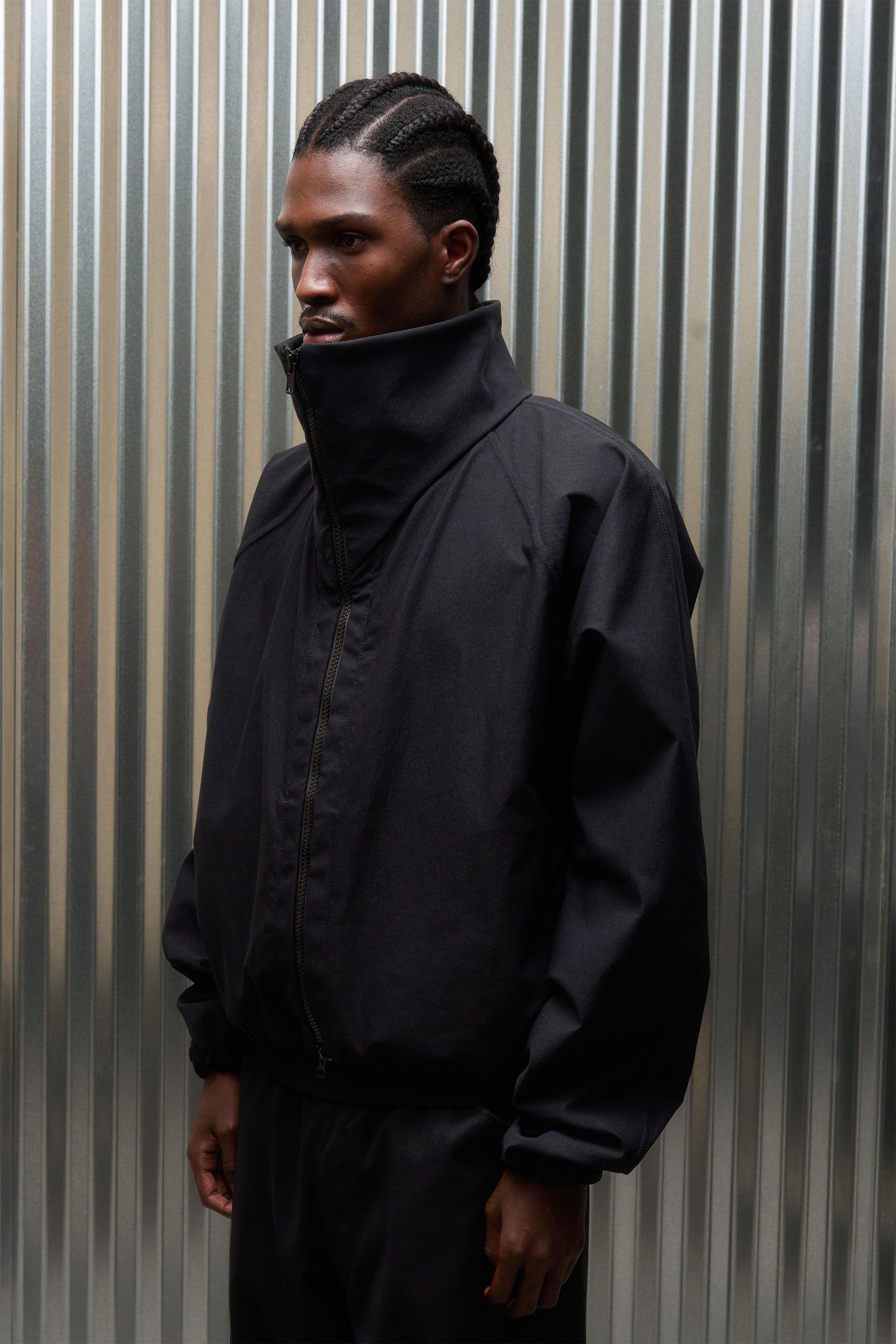 An unfadeable heavyweight shell jacket with an exaggerated collar experiment [#560]. The rugged and structured Postdenim Bombtwill forms a protective ou…