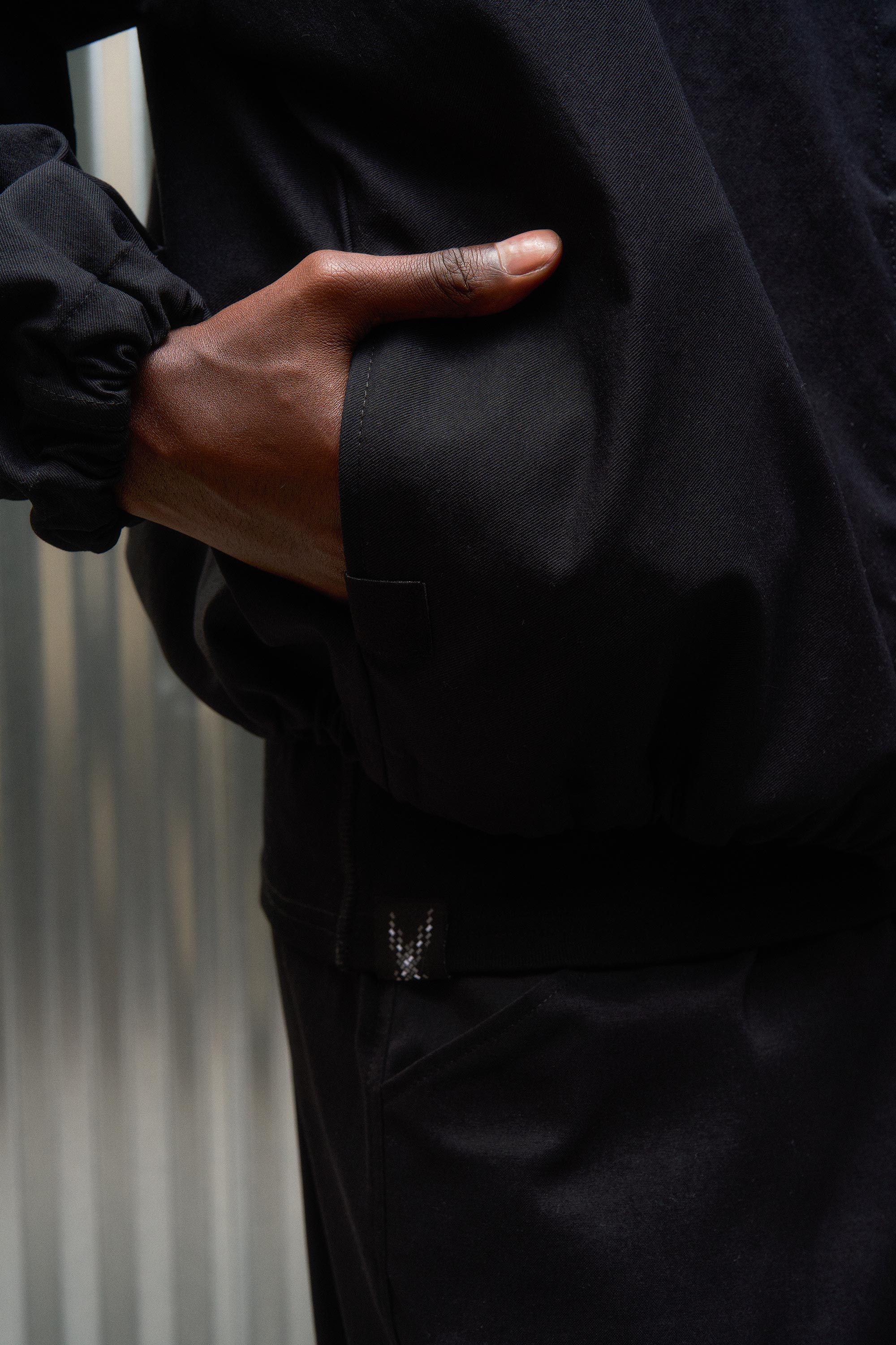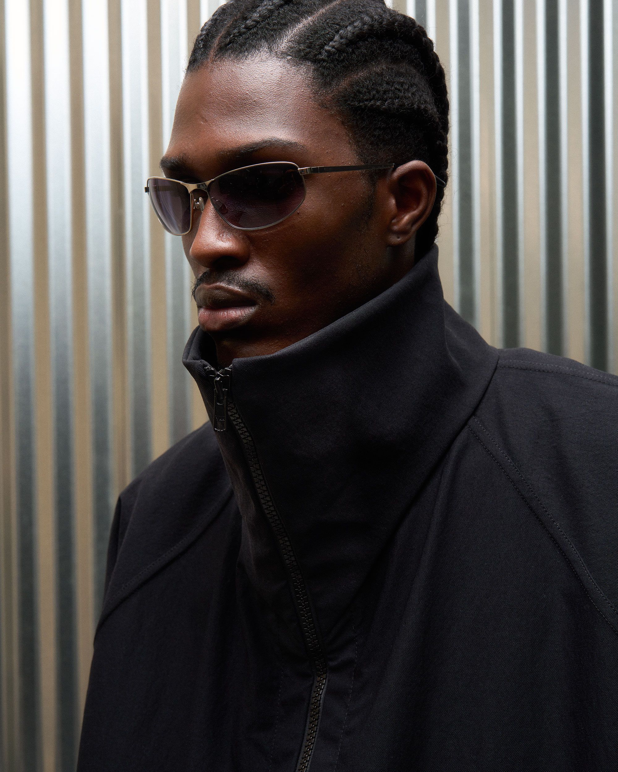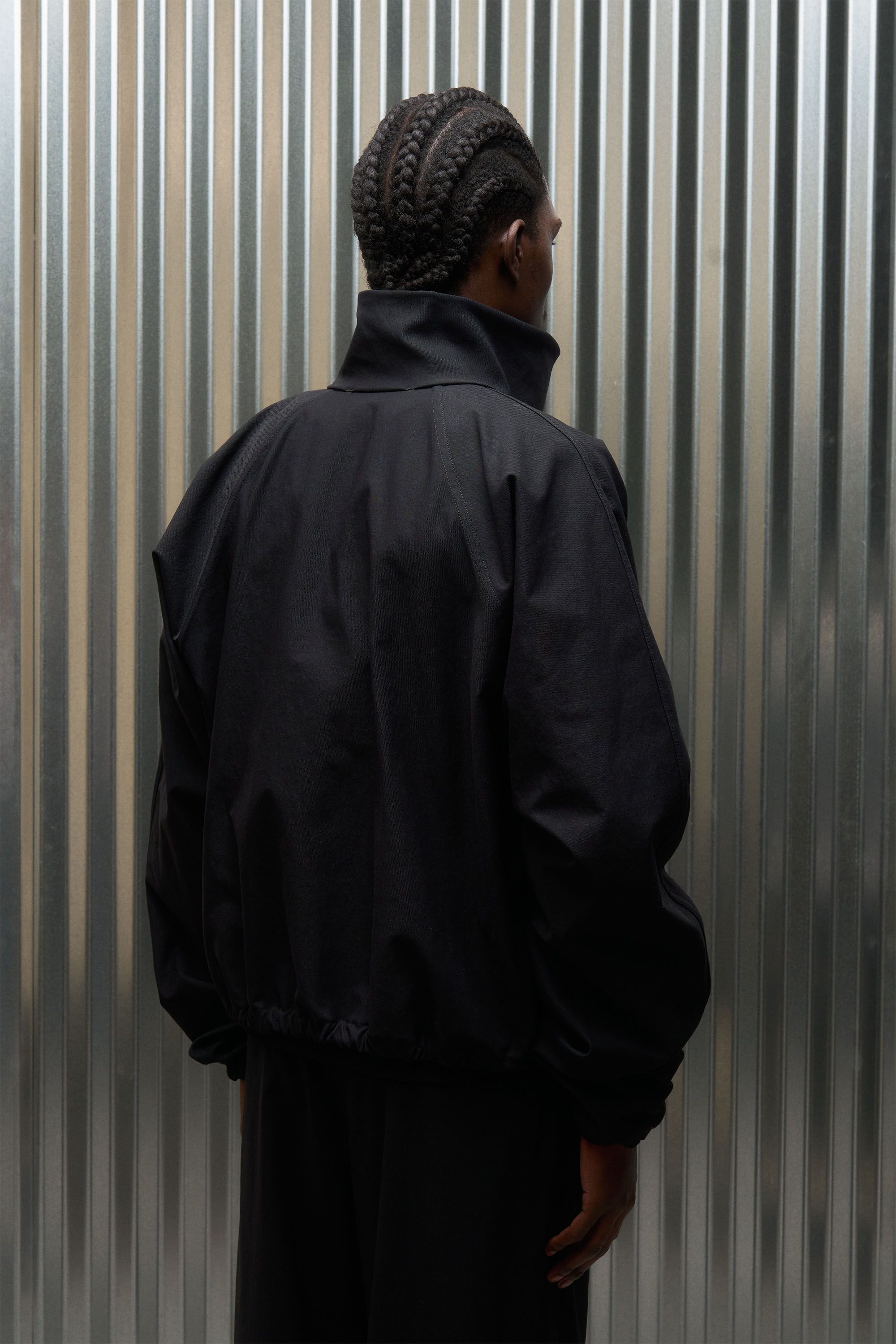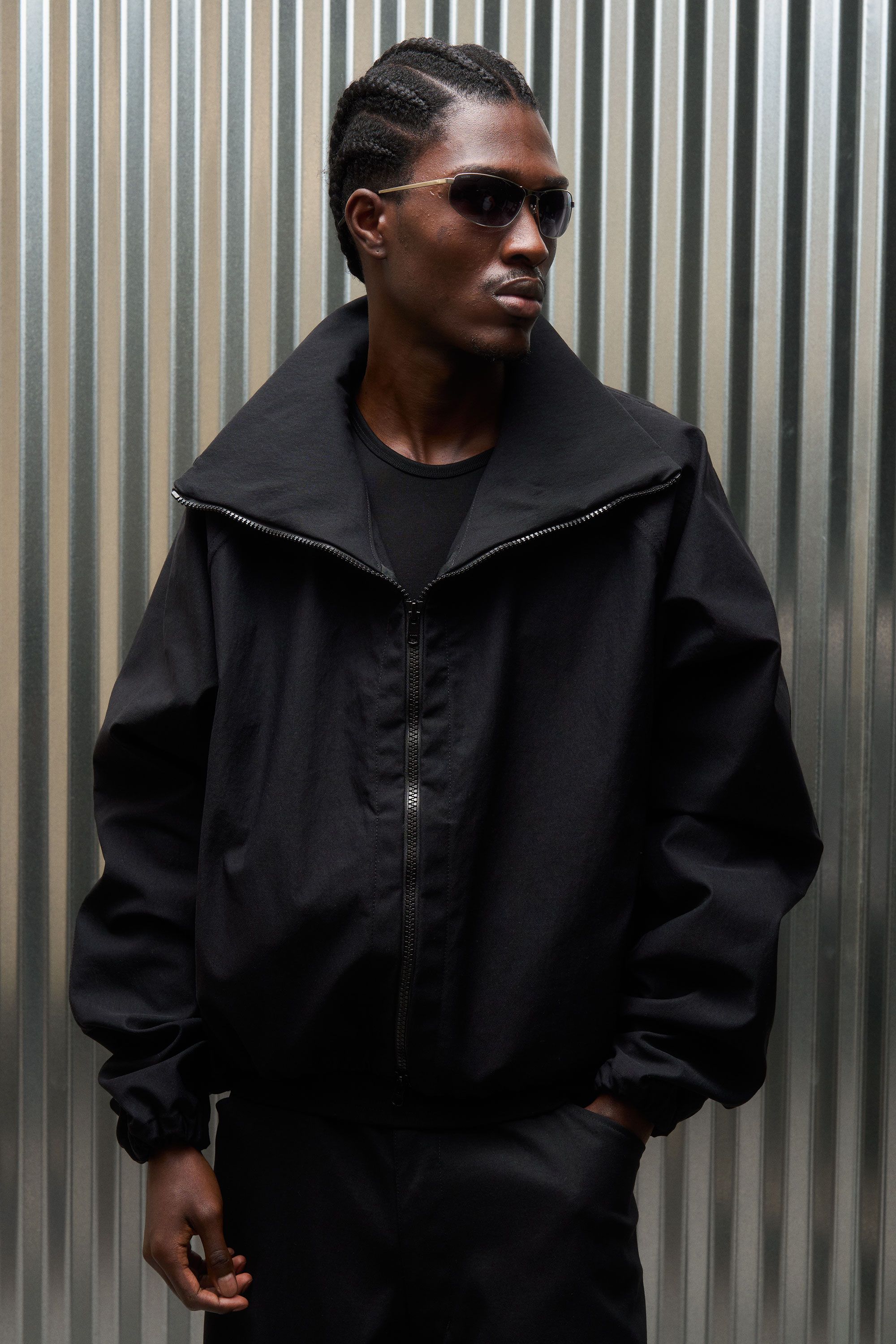 An unfadeable heavyweight shell jacket with an exaggerated collar experiment [#560]. The rugged and structured Postdenim Bombtwill forms a protective ou…
