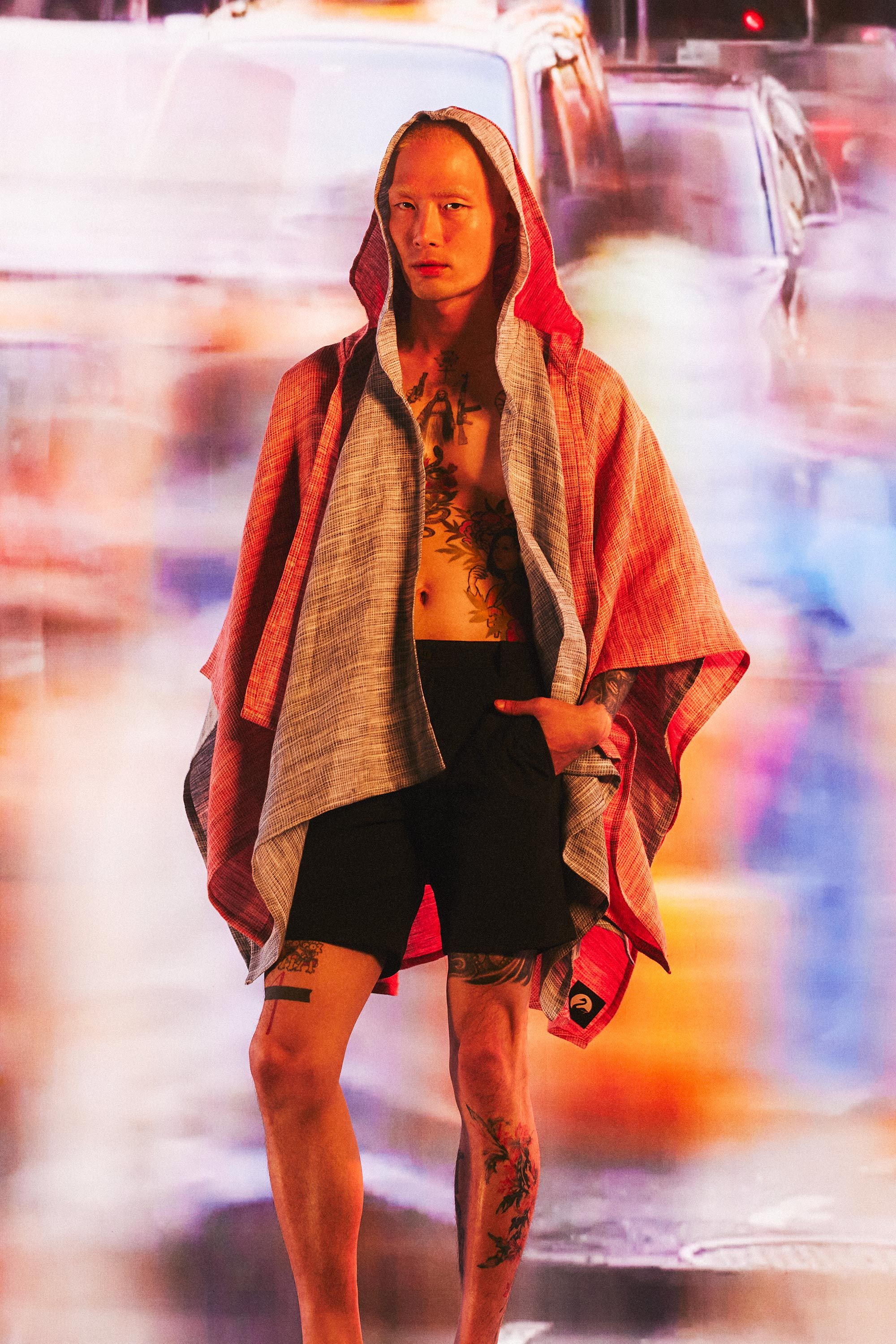 A towel that fits. A hooded and wearable towel that doubles as a beach blanket, lightweight (UPF 15) sun protection, an evening wrap, and who knows what…