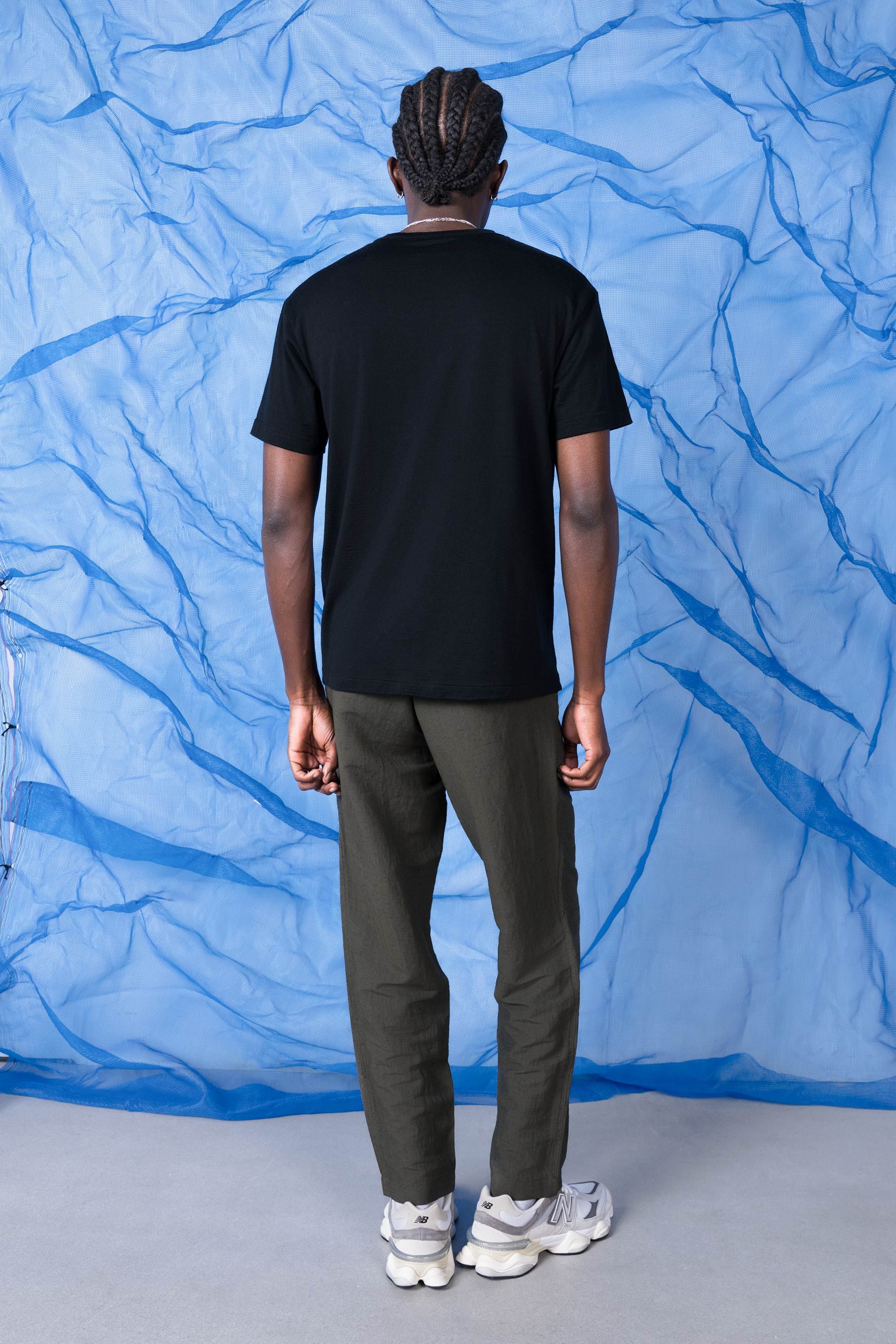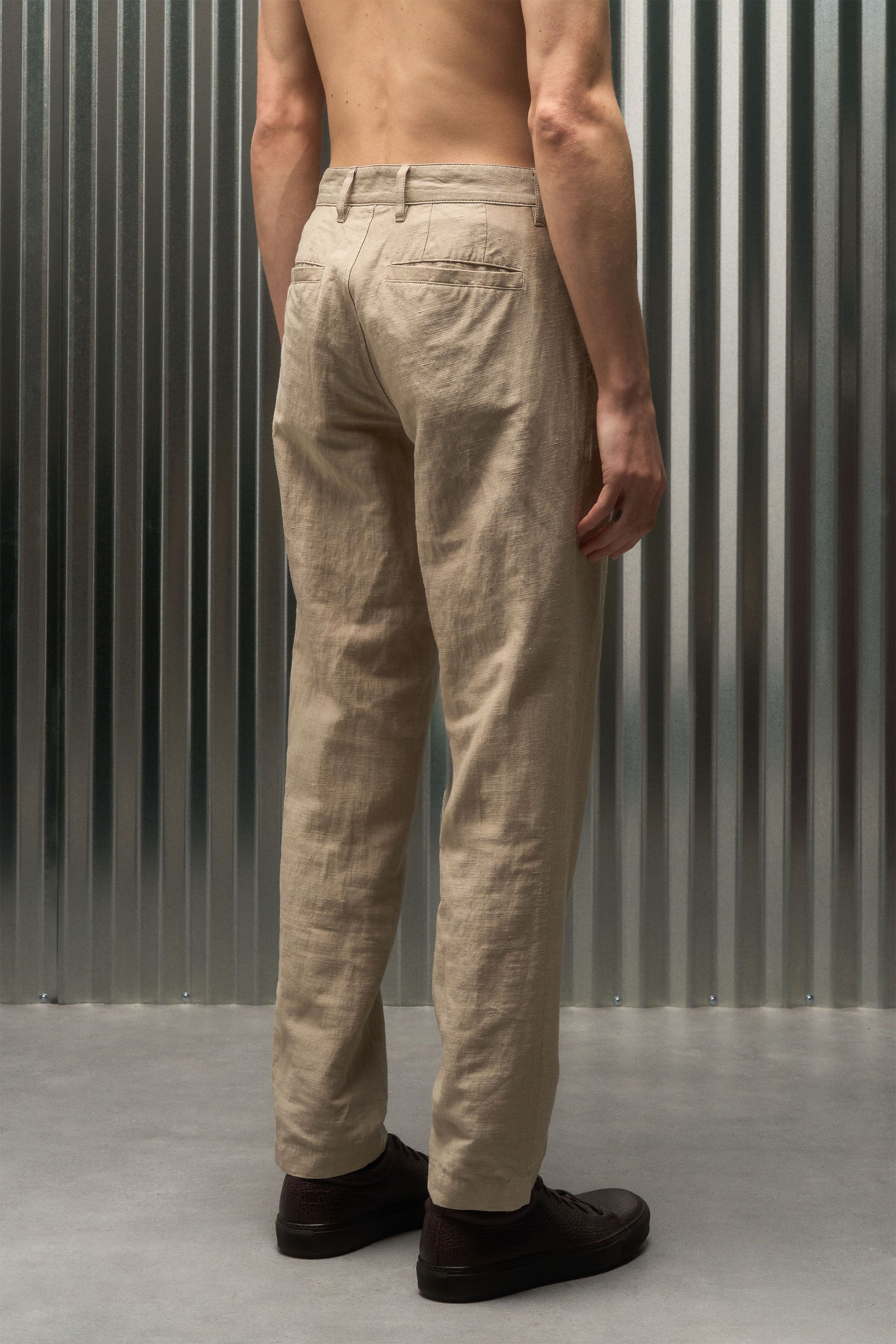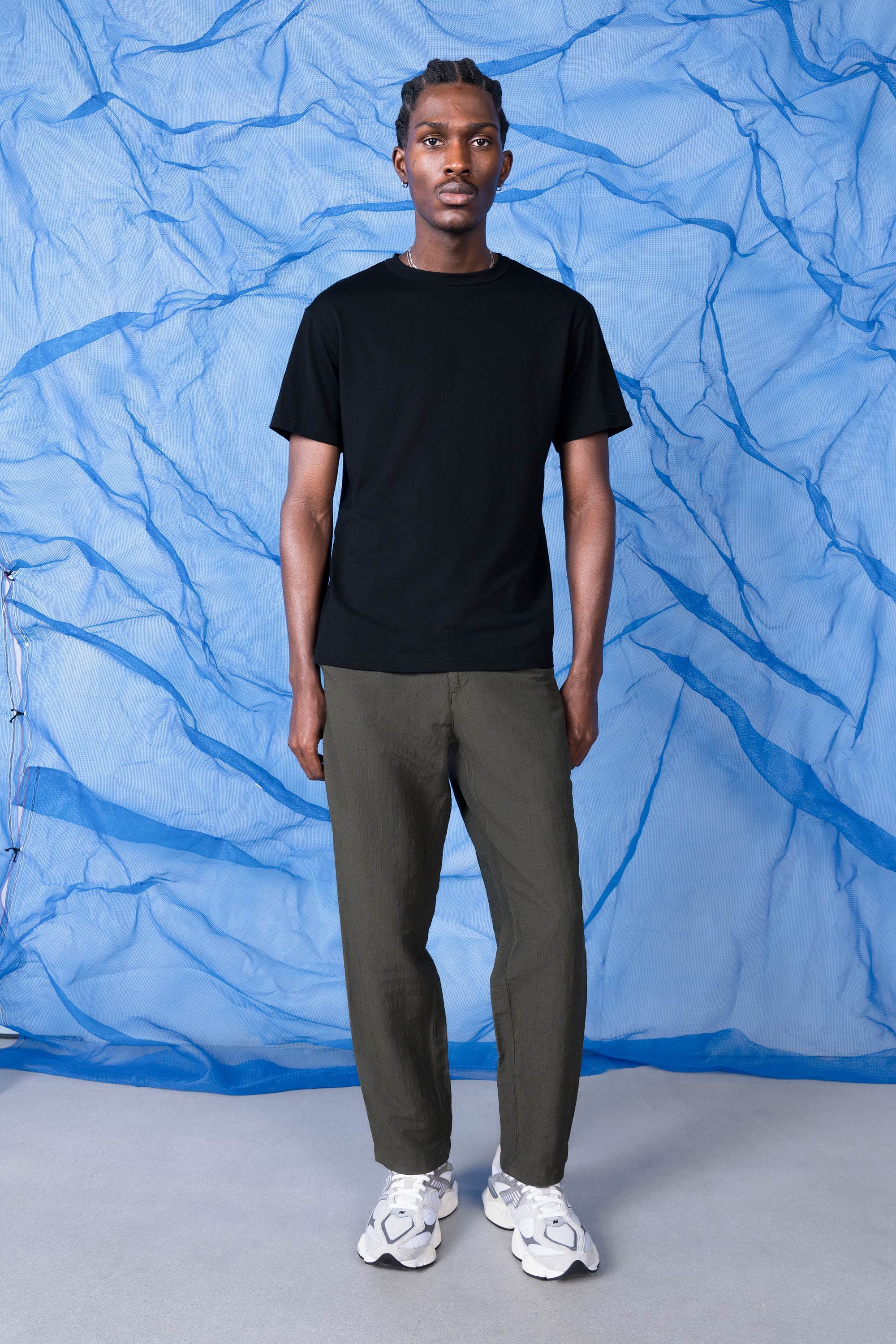 A pant that wears like a short, made from a fabric remarkably open to the air yet opaque to the eye. Linen’s dry touch and beautiful aging character mee…