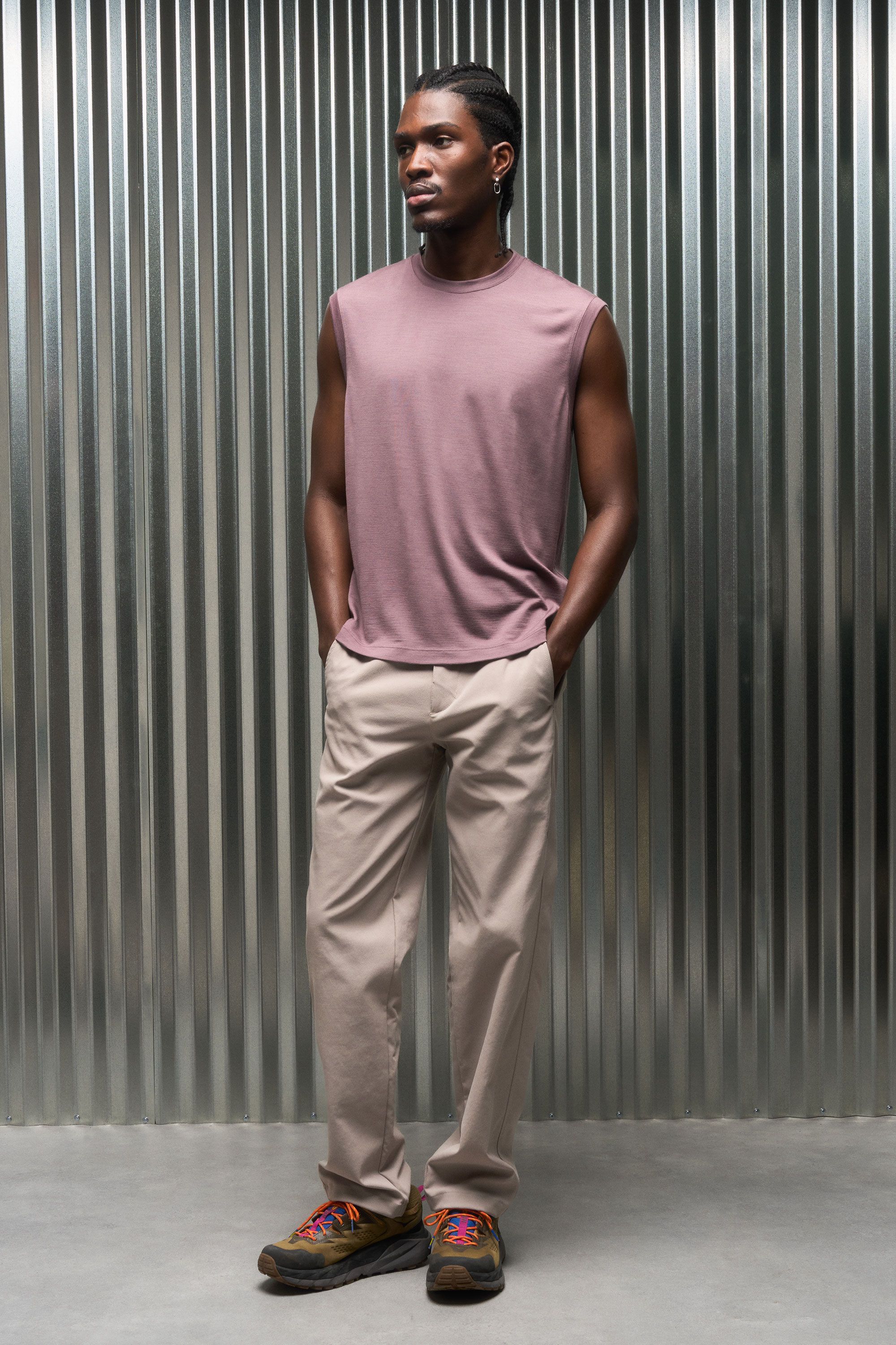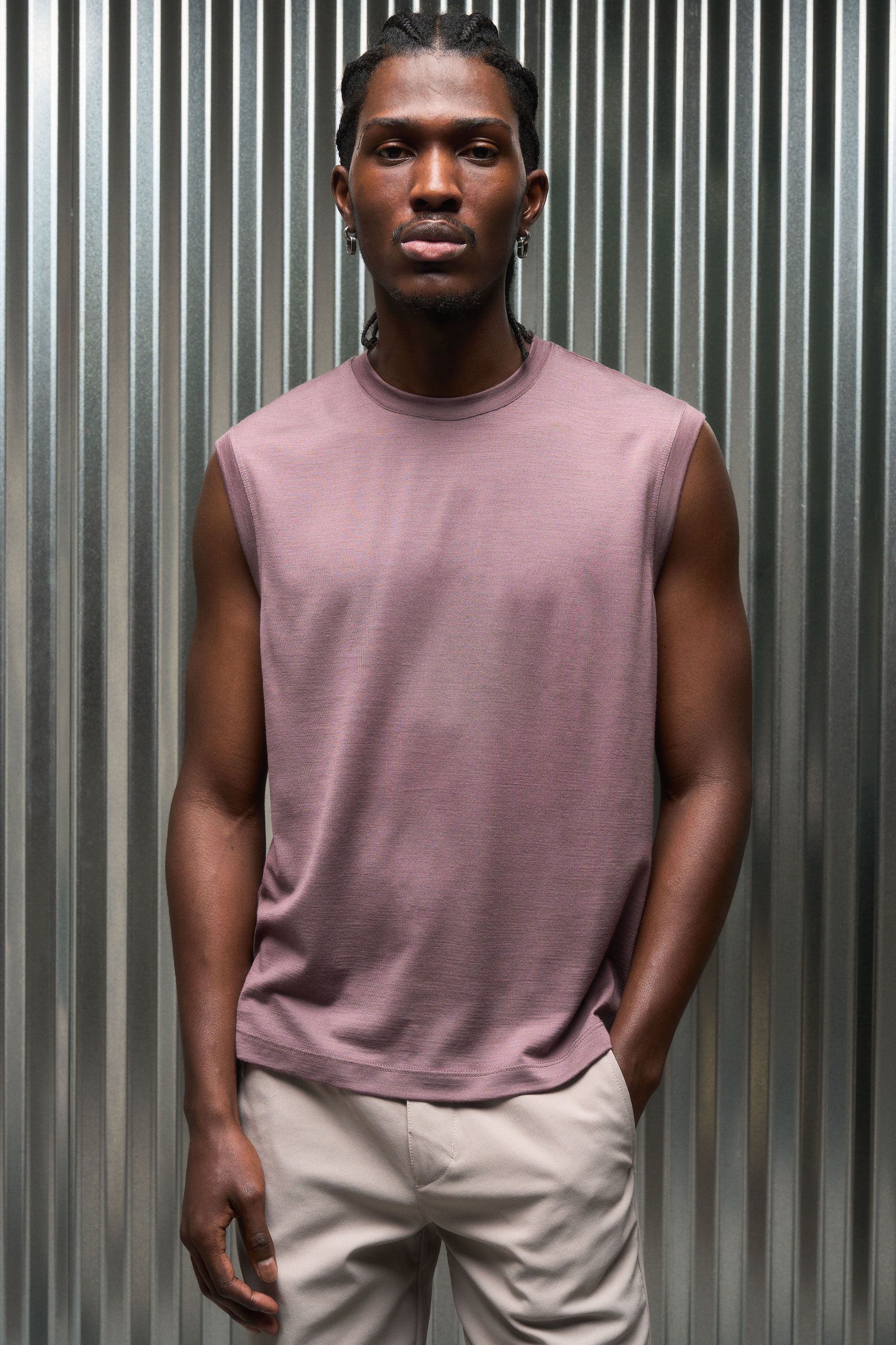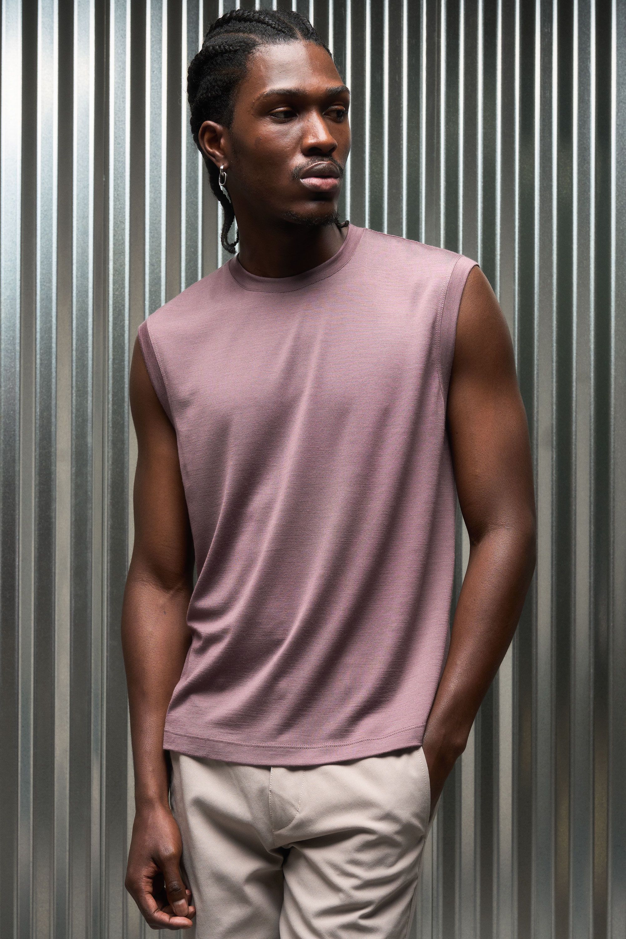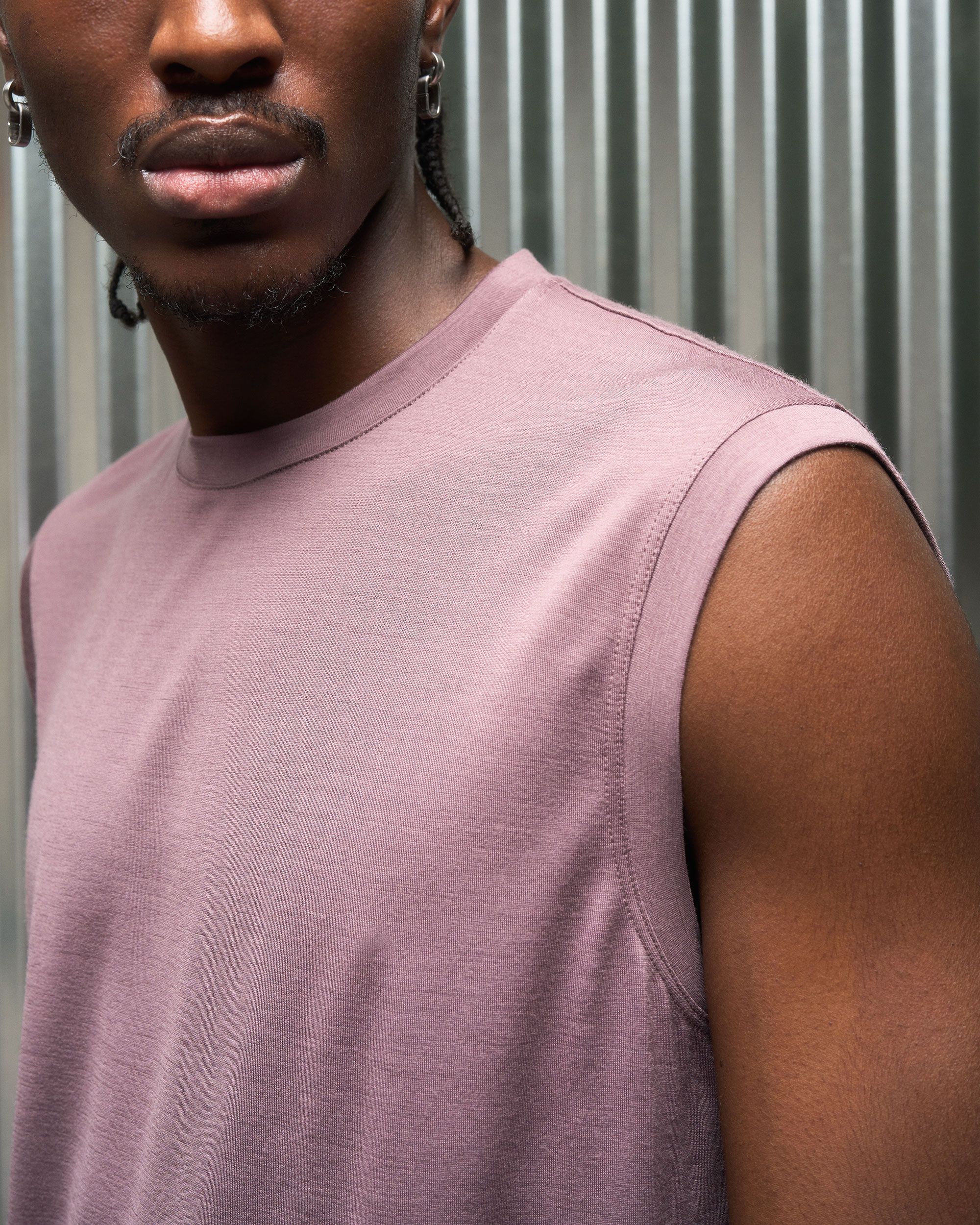A lightweight and versatile merino muscle tank experiment [#522]. The natural performance of 16.5 micron top-capped merino (75%) is intimately blended w…