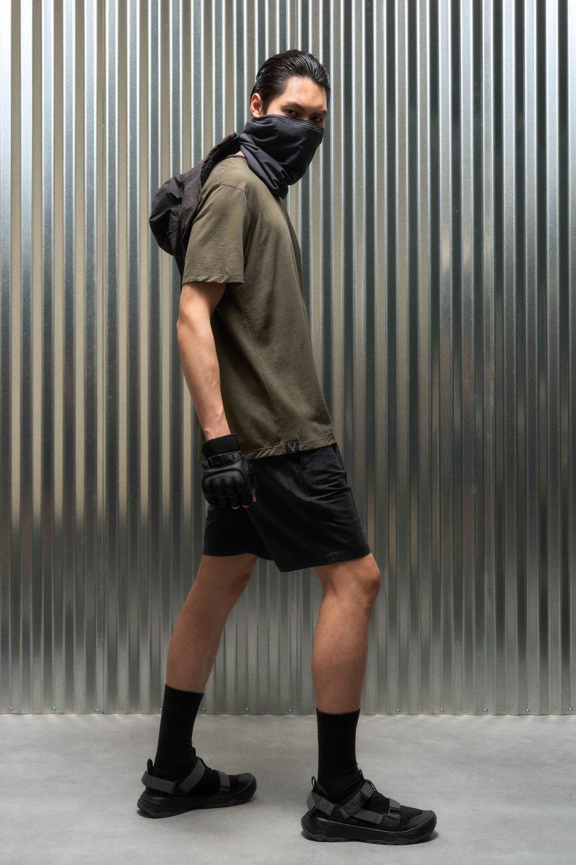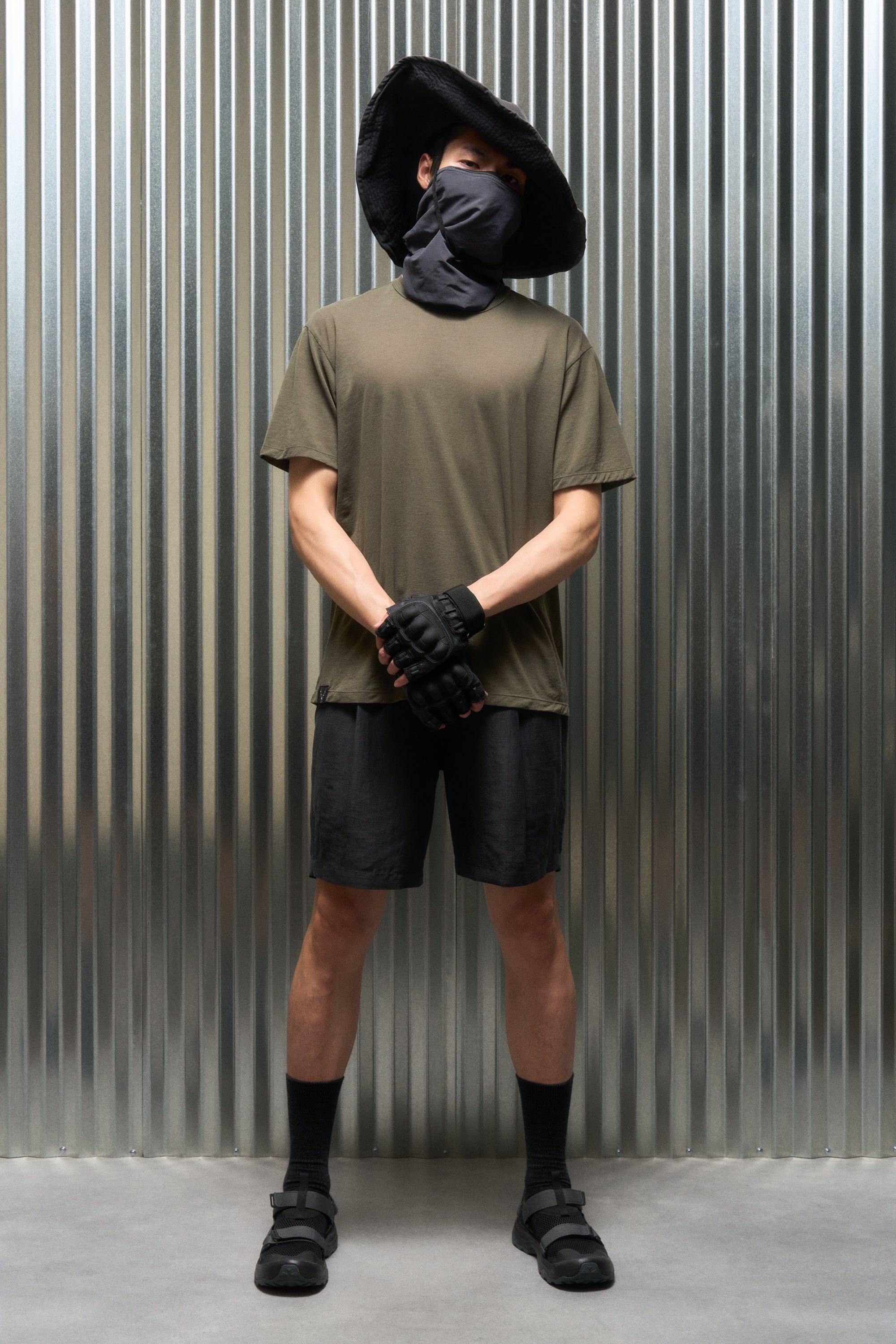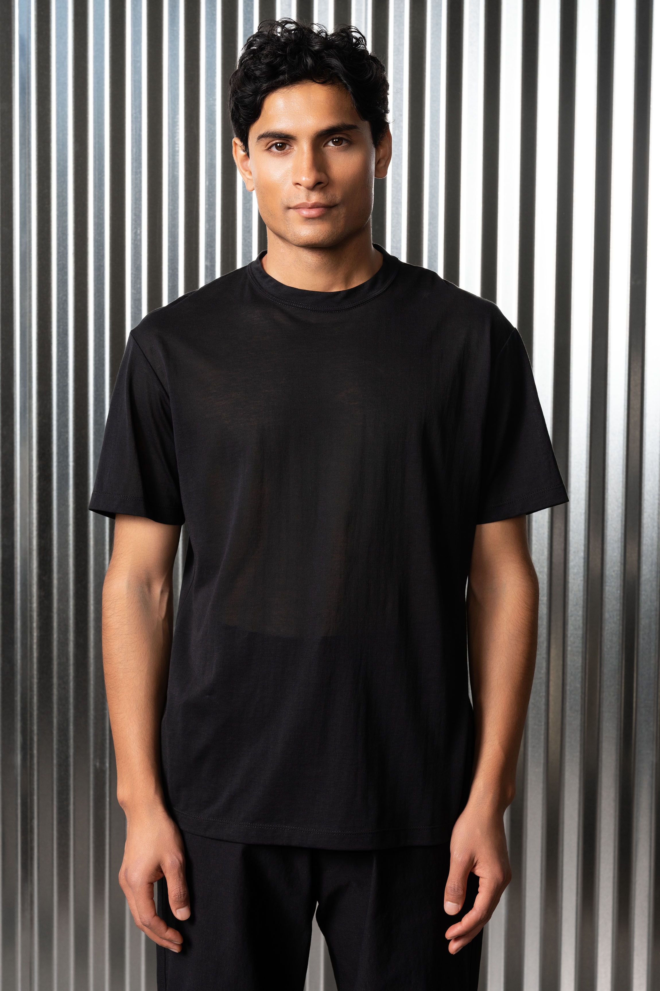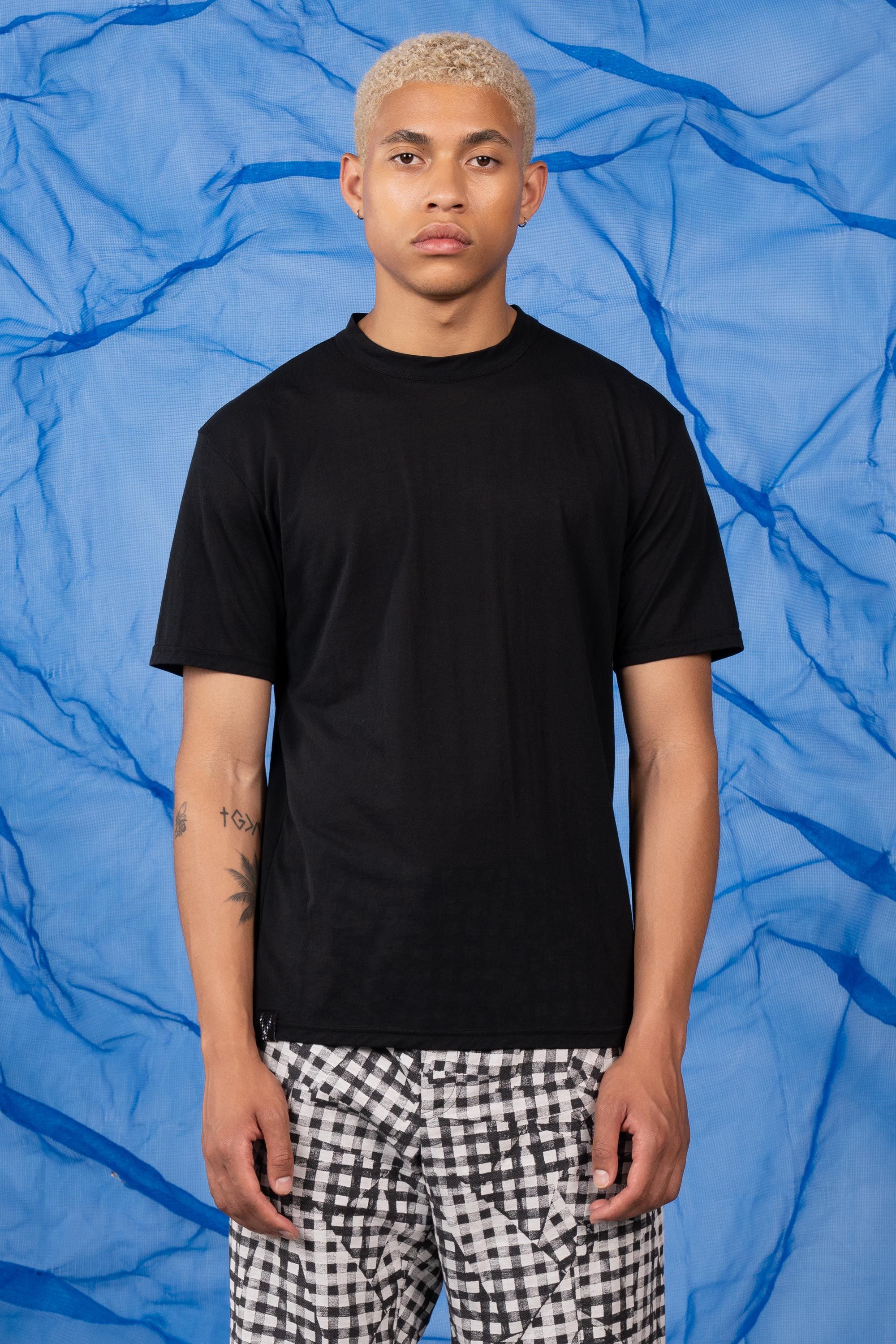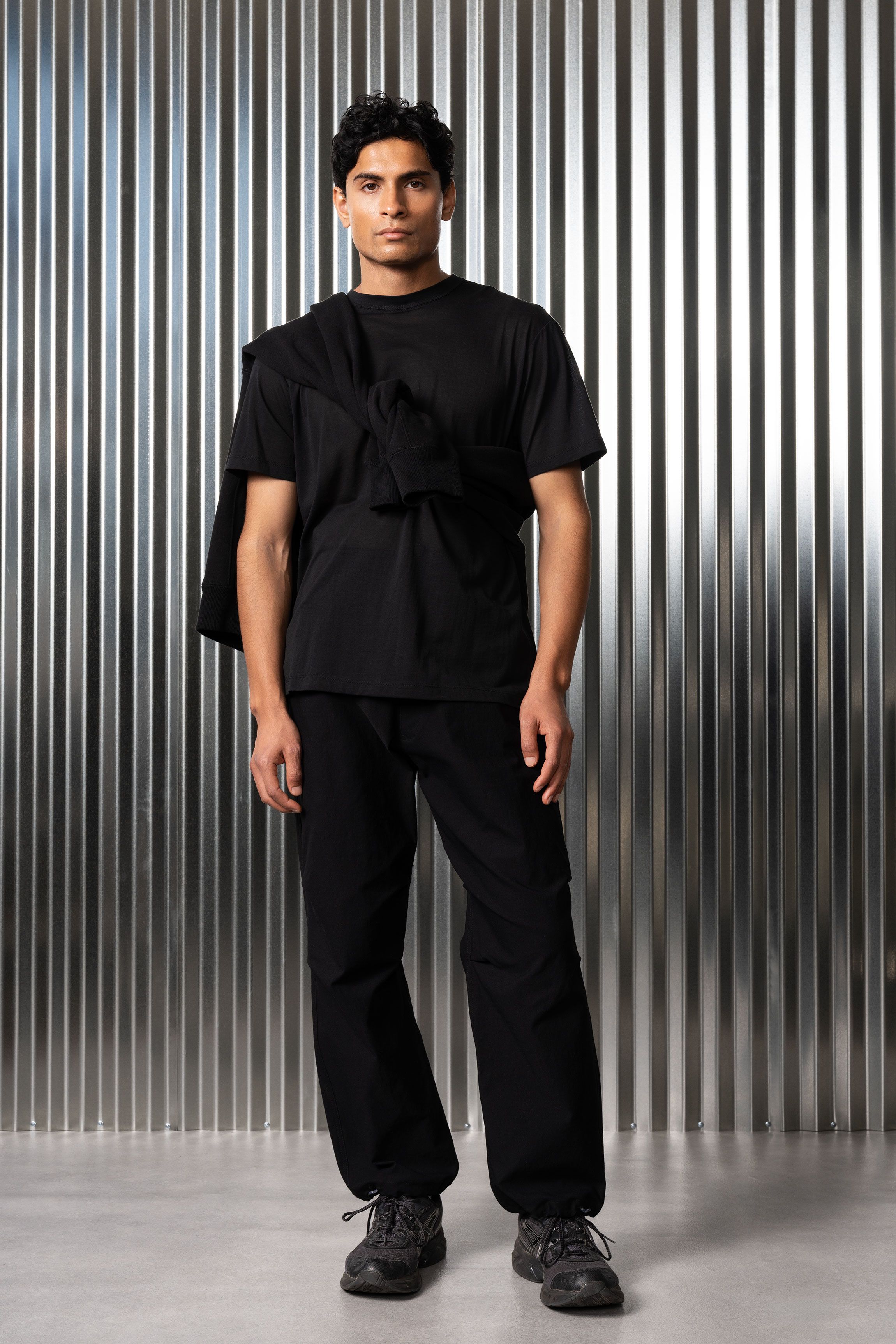 A t-shirt contemplating nothingness. Cotton is wrapped around a nylon filament core and enzyme cleaned to create a hyper-light cotton jersey that combin…